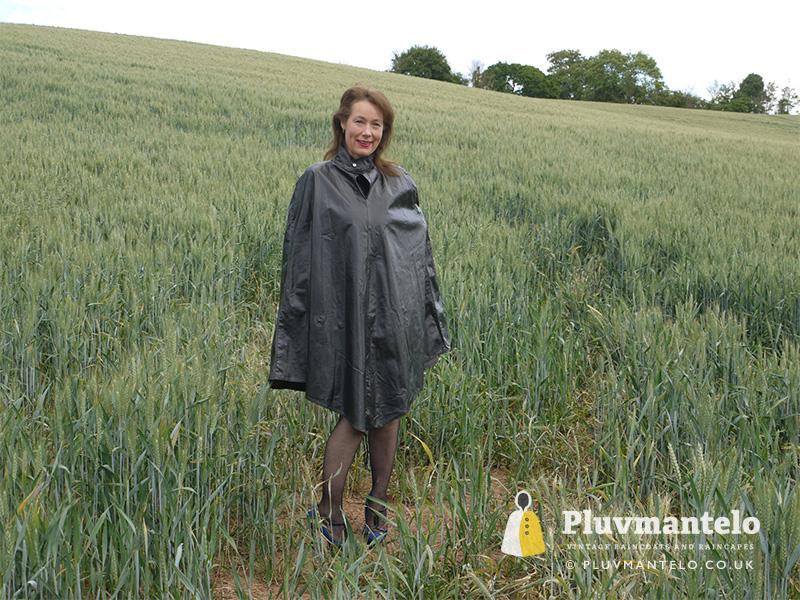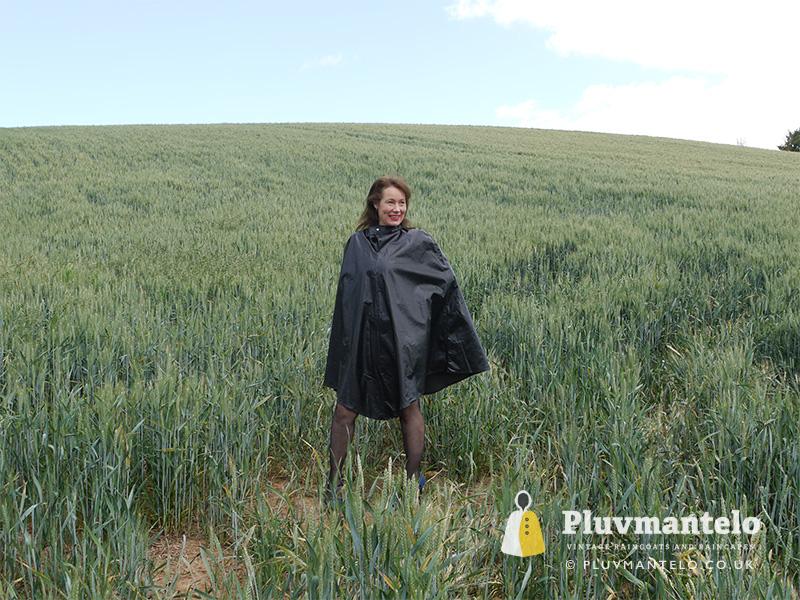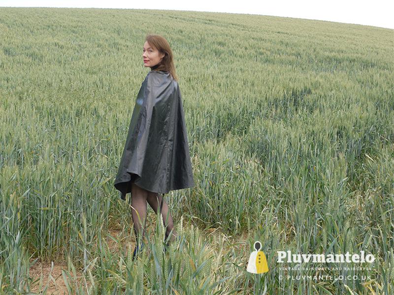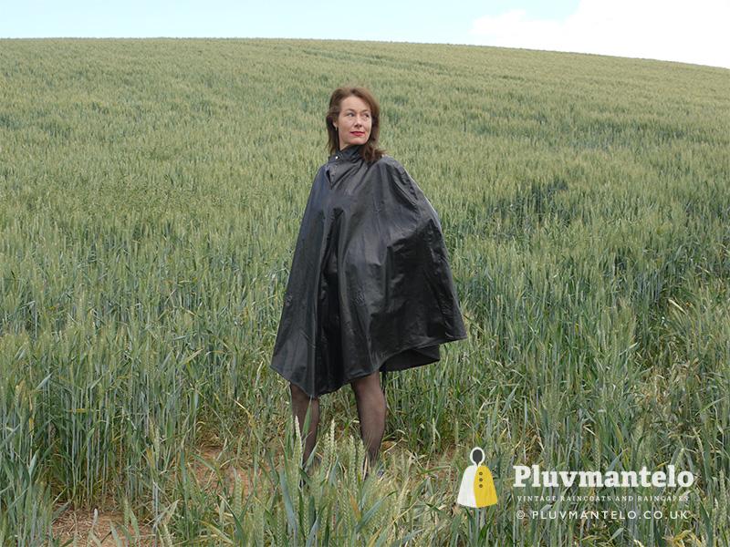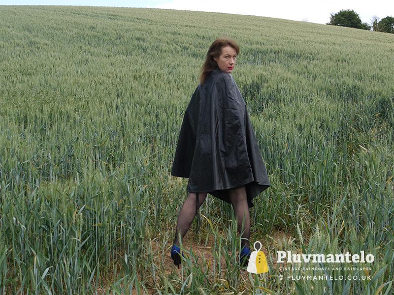 Yes, another old black rubber cape and this time it’s a 1950s Slickon we bought a few weeks ago. It’s certainly aged well and we think it looks simply great. It hangs well and still has a half-decent shine. Saph’s clearly made it her own.
