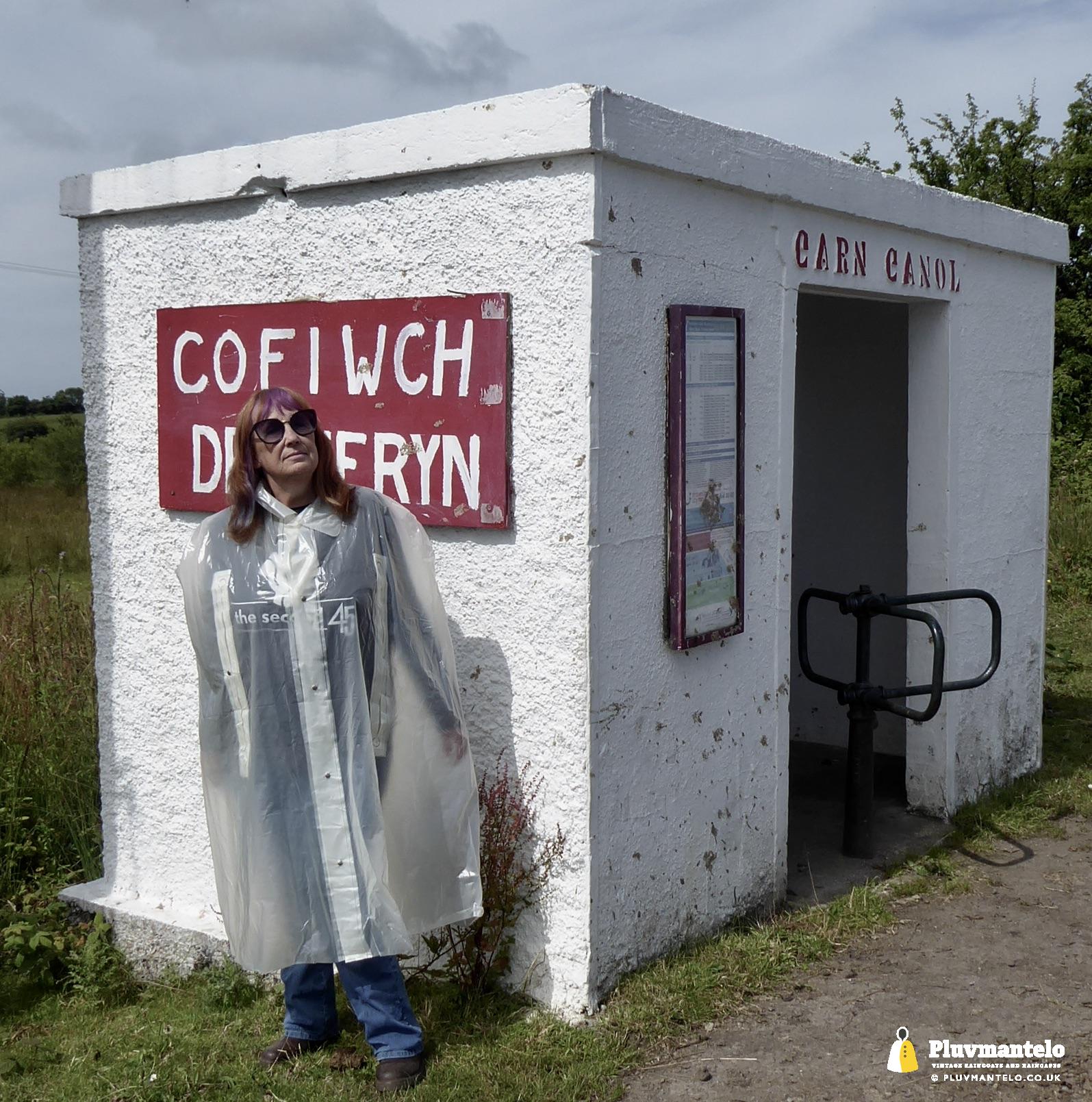 Do old-fashioned bus stops make good backdrops for a cape shoot? We think so, and so does Miss Pluv’, who was wearing her clear German Army cape on a sunny Sunday.