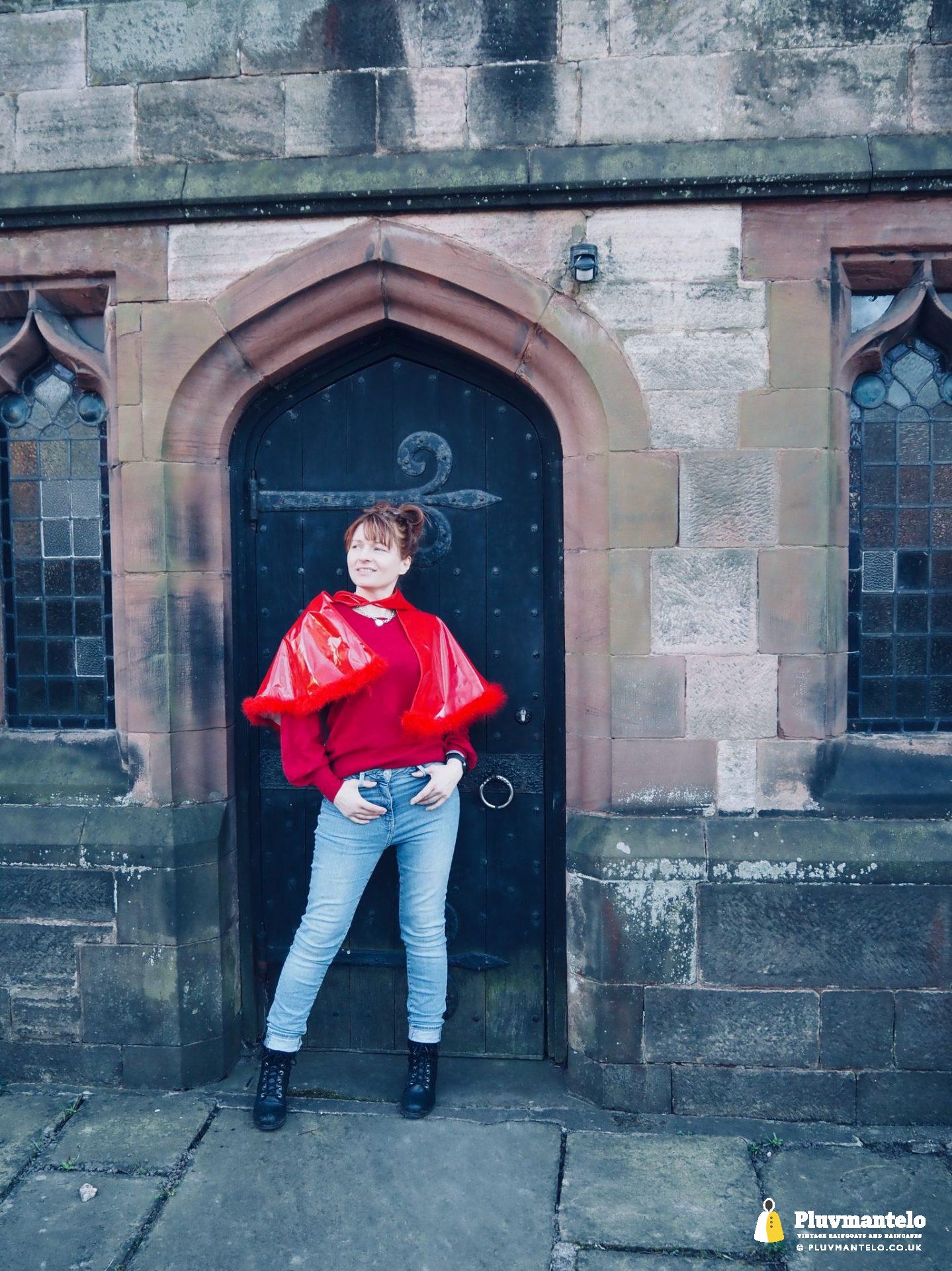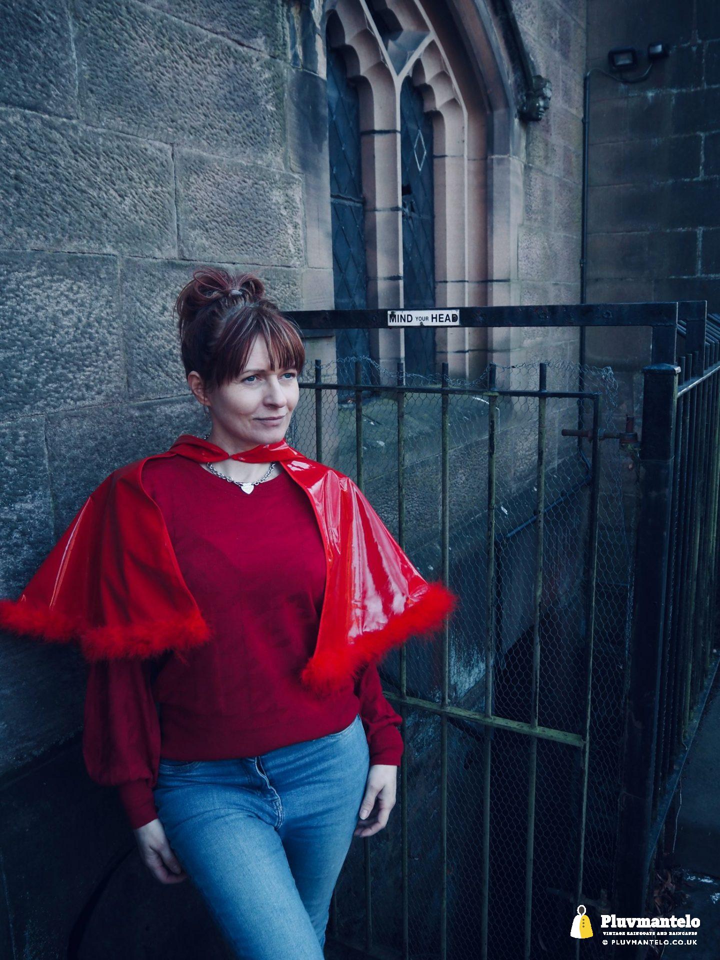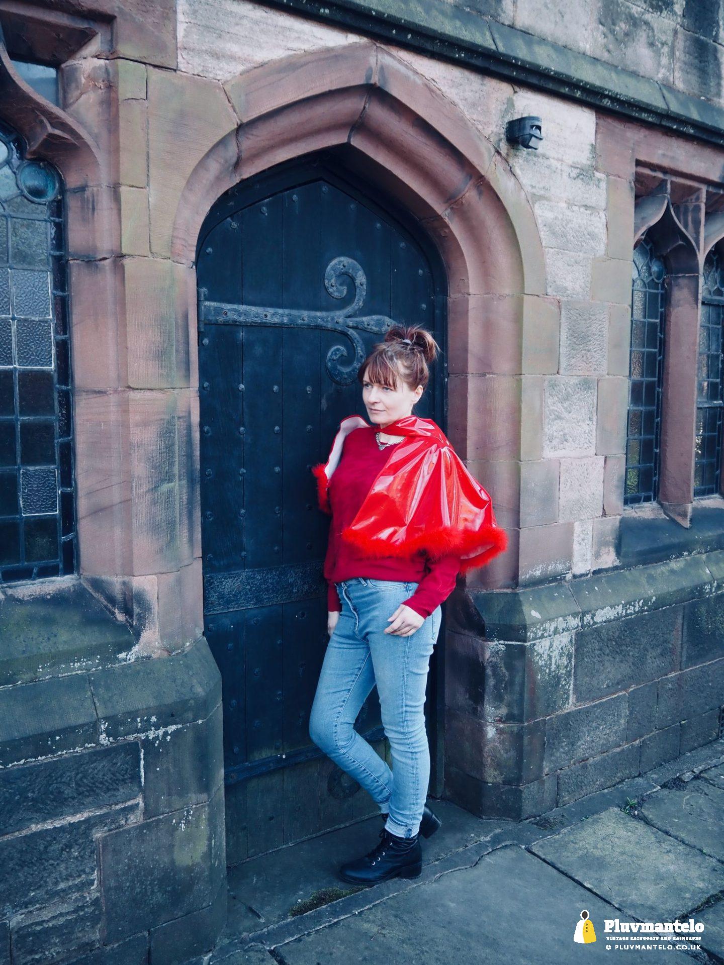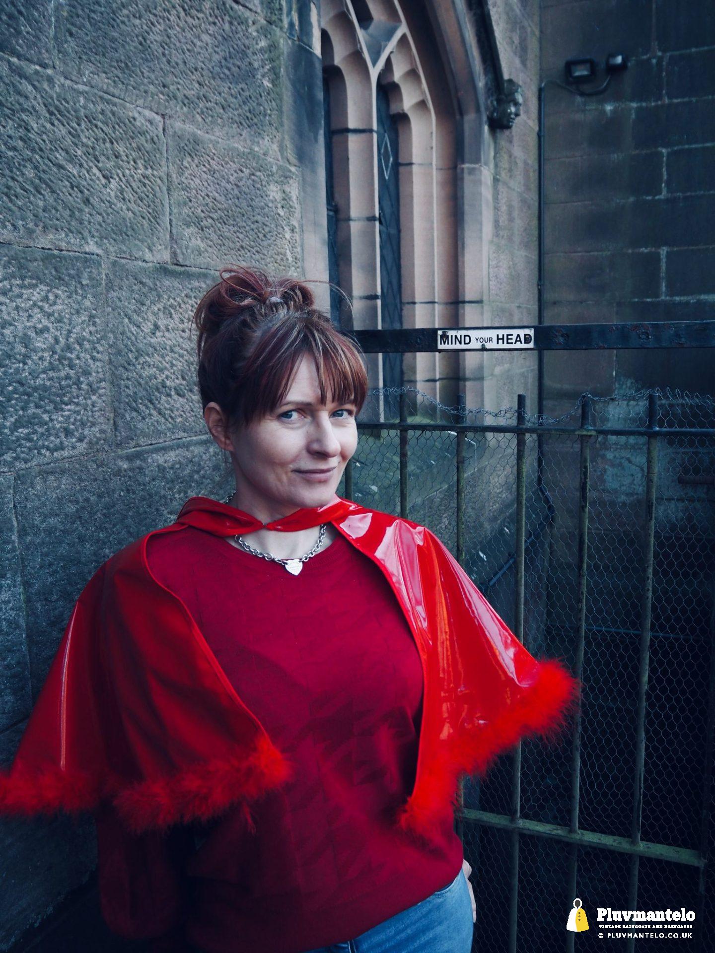 It shouldn’t come as any surprise that Clair The Cape Queen adores her red Miss Goodweather cape and who can blame her? Of course a cape’s good when it’s raining but this one looks good whatever the weather, as we saw on this sunny day.