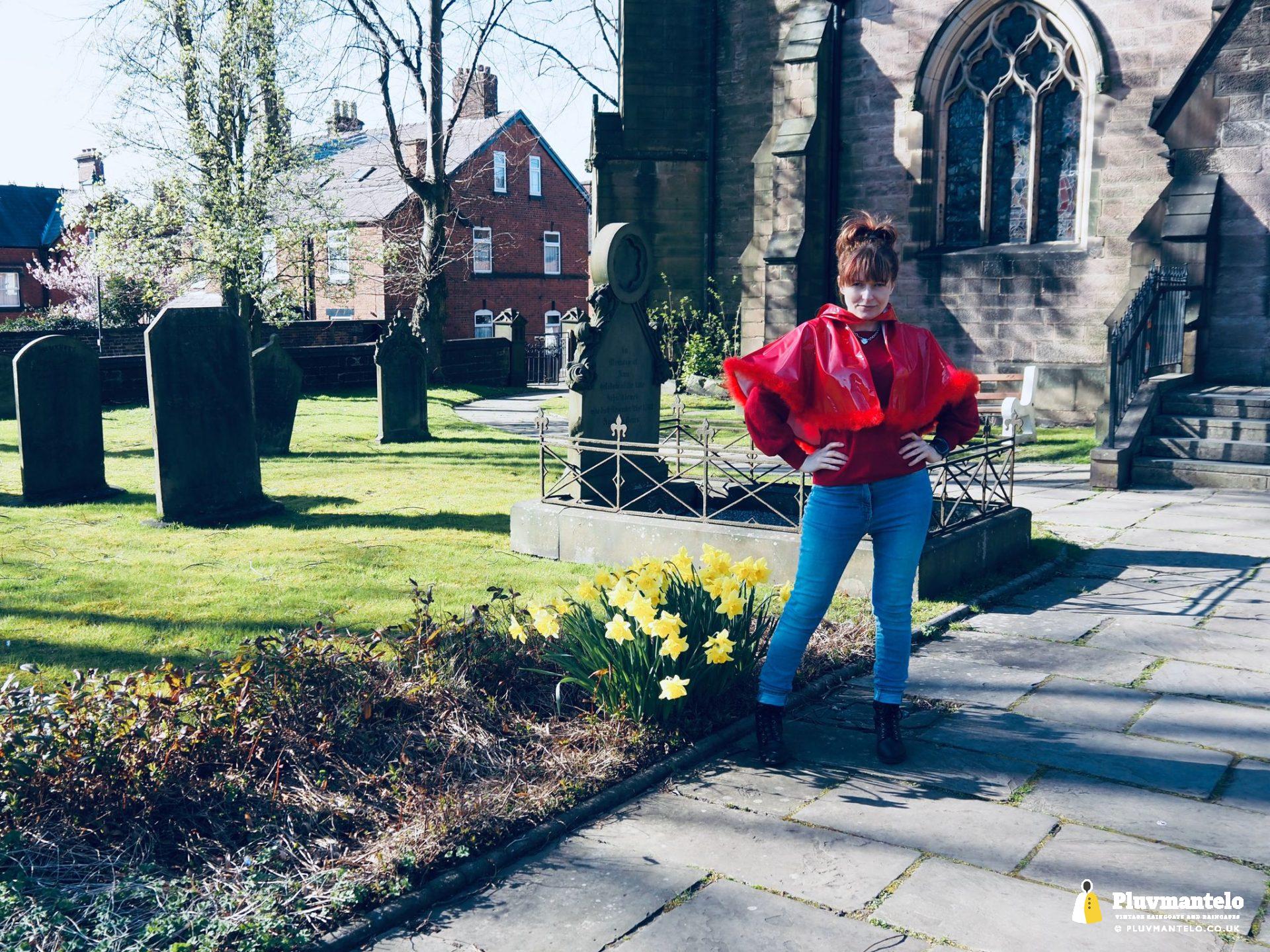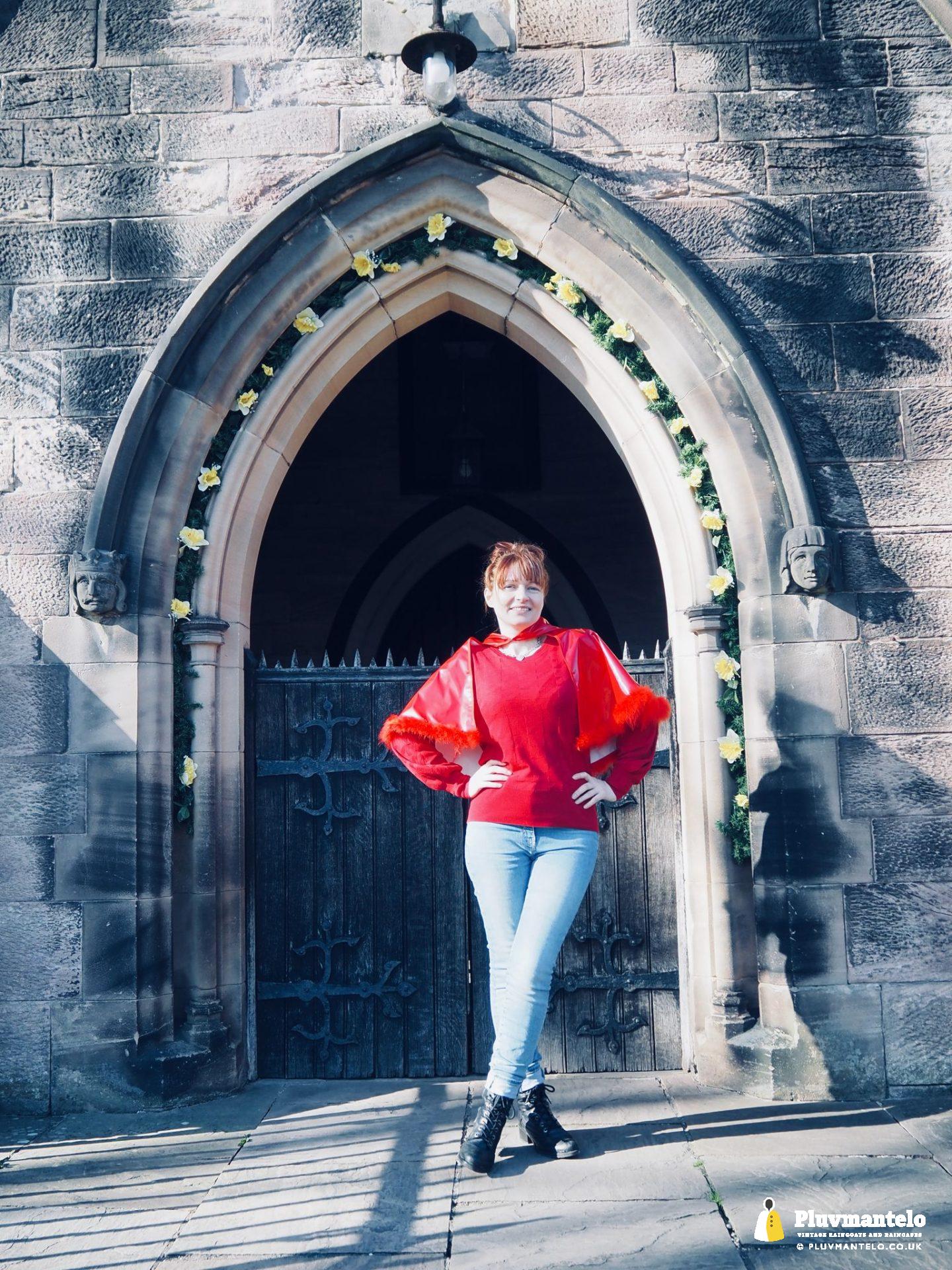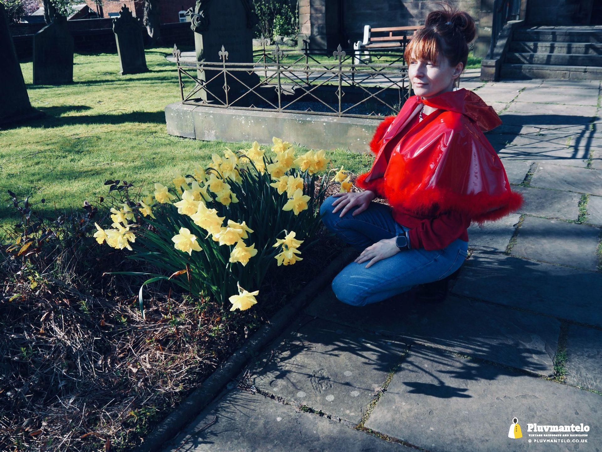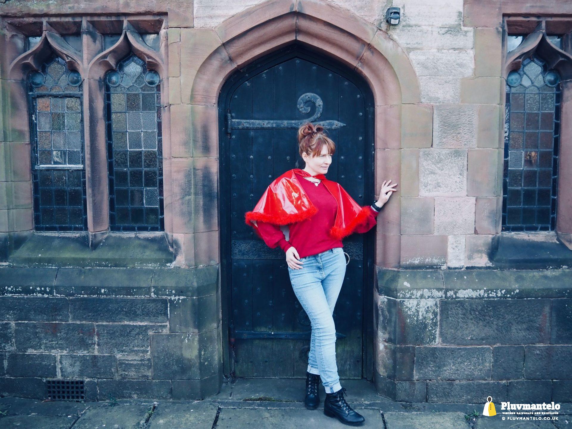 It shouldn’t come as any surprise that Clair The Cape Queen adores her red Miss Goodweather cape and who can blame her? Of course a cape’s good when it’s raining but this one looks good whatever the weather, as we saw on this sunny day.