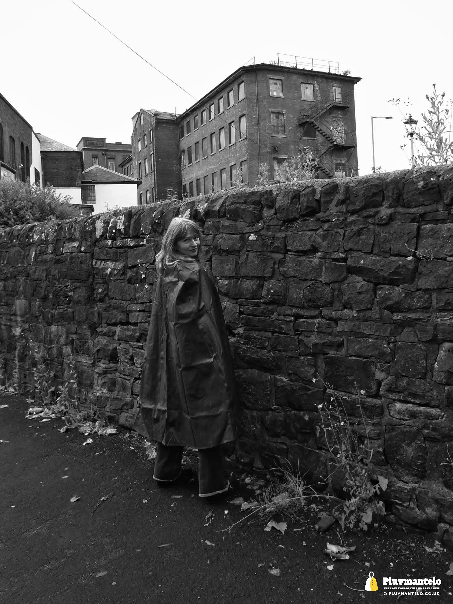 We present these images in black and white form, as a nod to the architecture magazines of the past. And, of course, the rainwear magazines too. Our period-toned colour images do, in our minds, work well, but black and white brings out more in terms of texture and light and shade. Black and white encourages more viewer curiosity too and we hope you’ll enjoy this run of images.