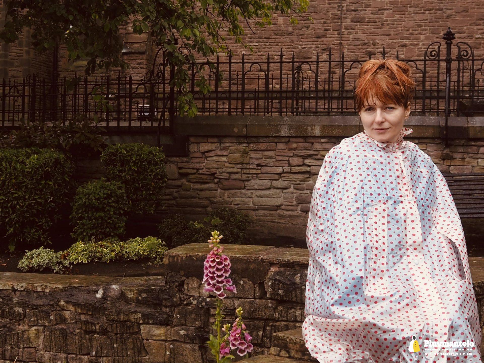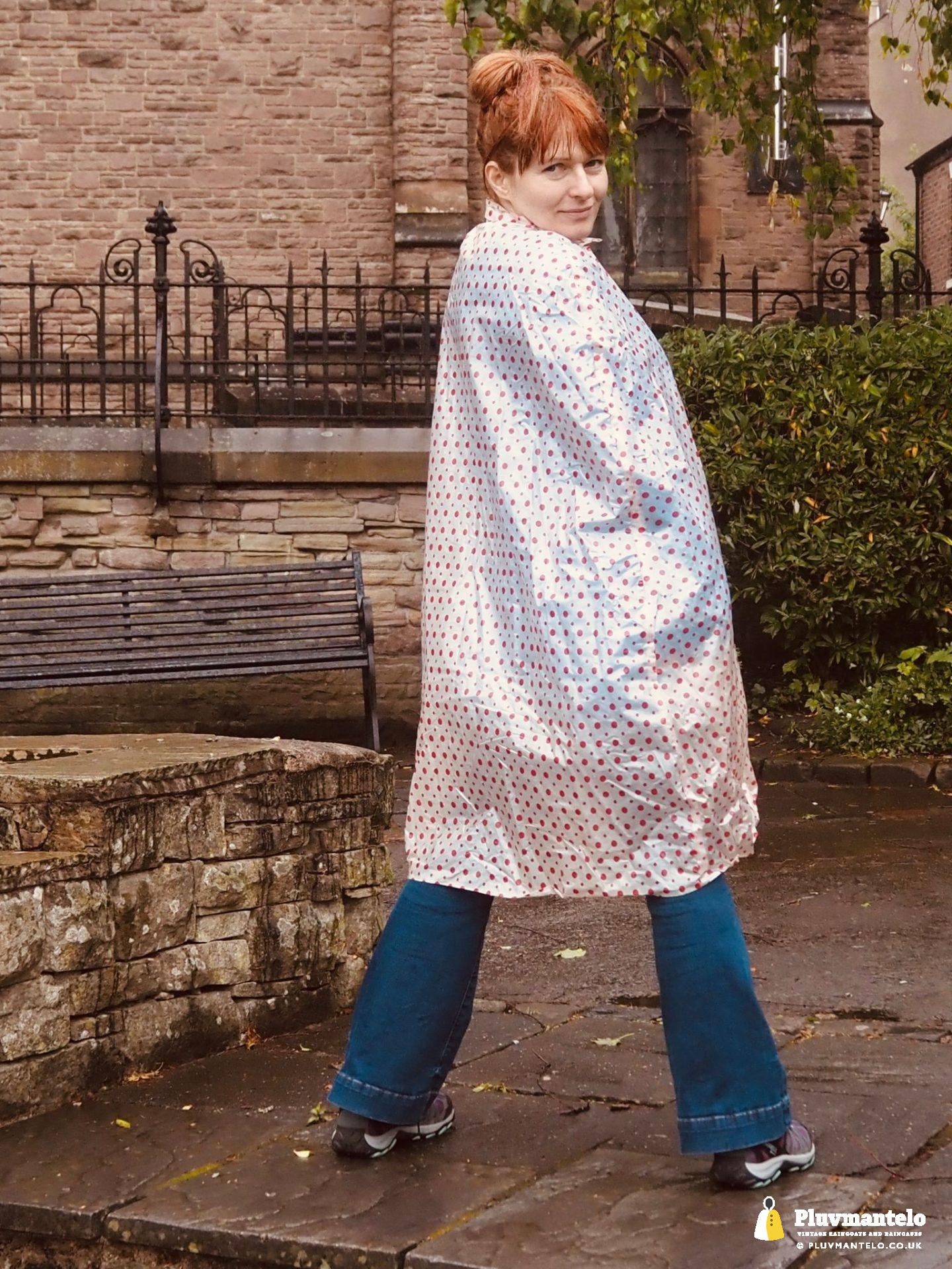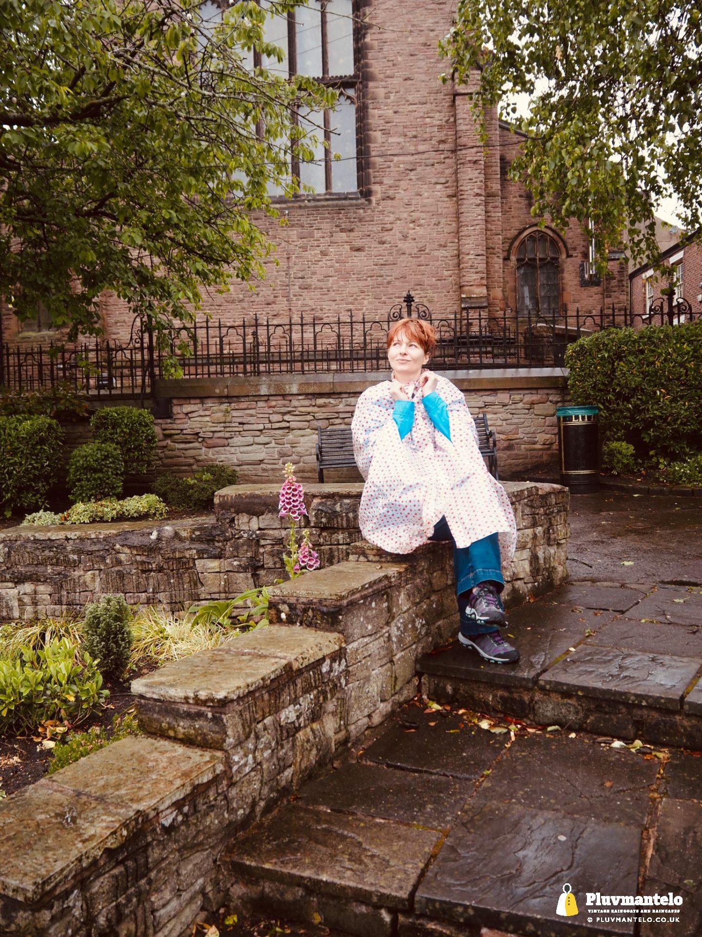 And in the homely surrounds of Macclesfield, Clair The Cape Queen’s cape laughed off the rain as it fell in stair rods. And so did Clair, who was warm and dry, neatly cocooned in that cape.