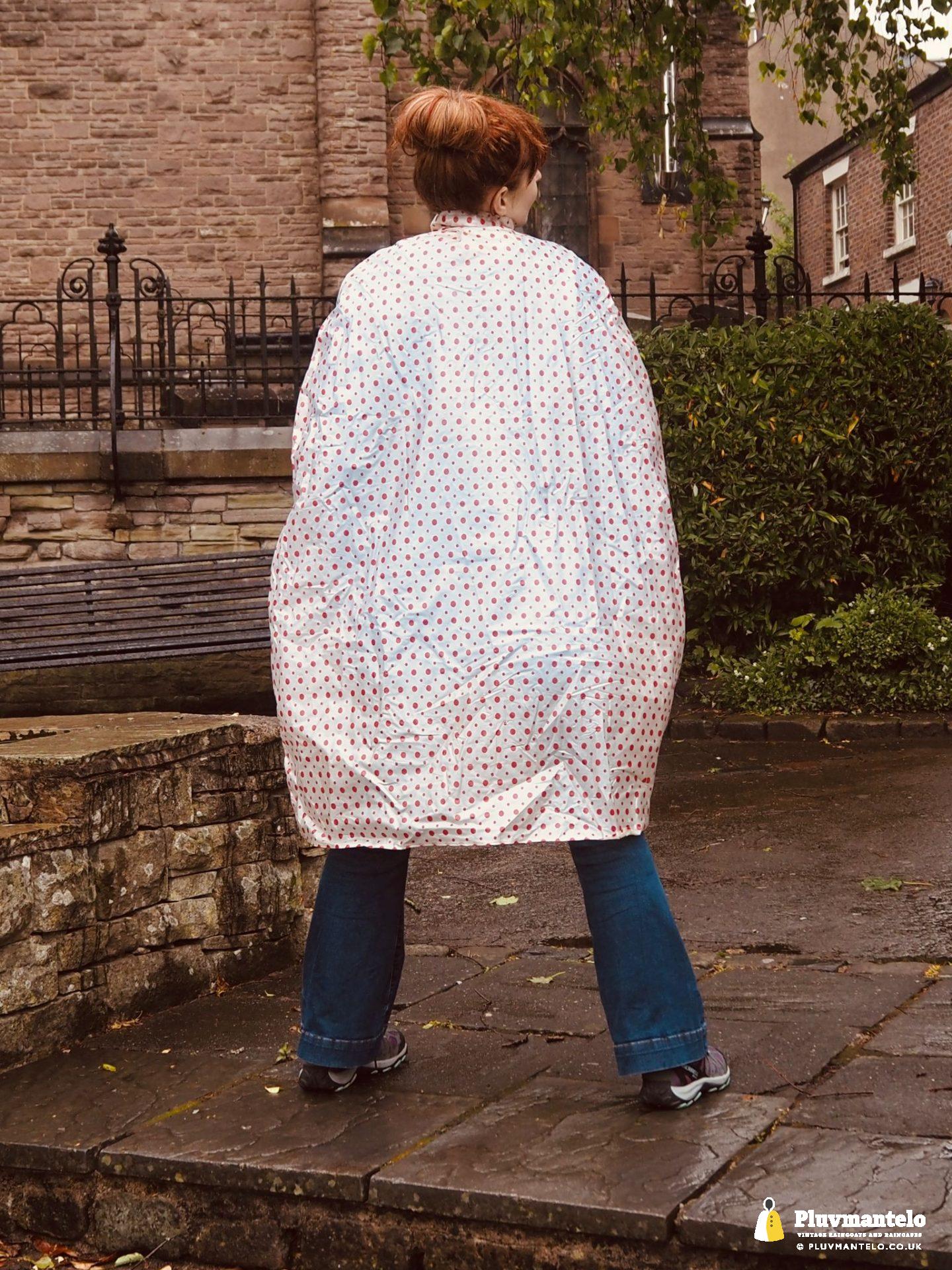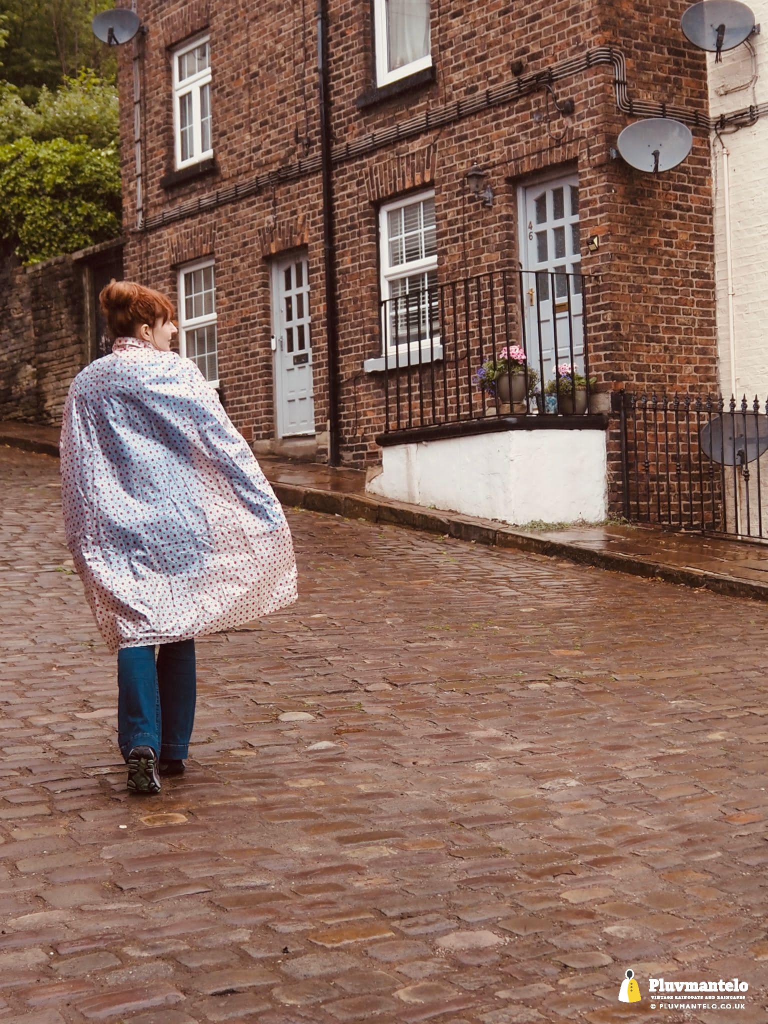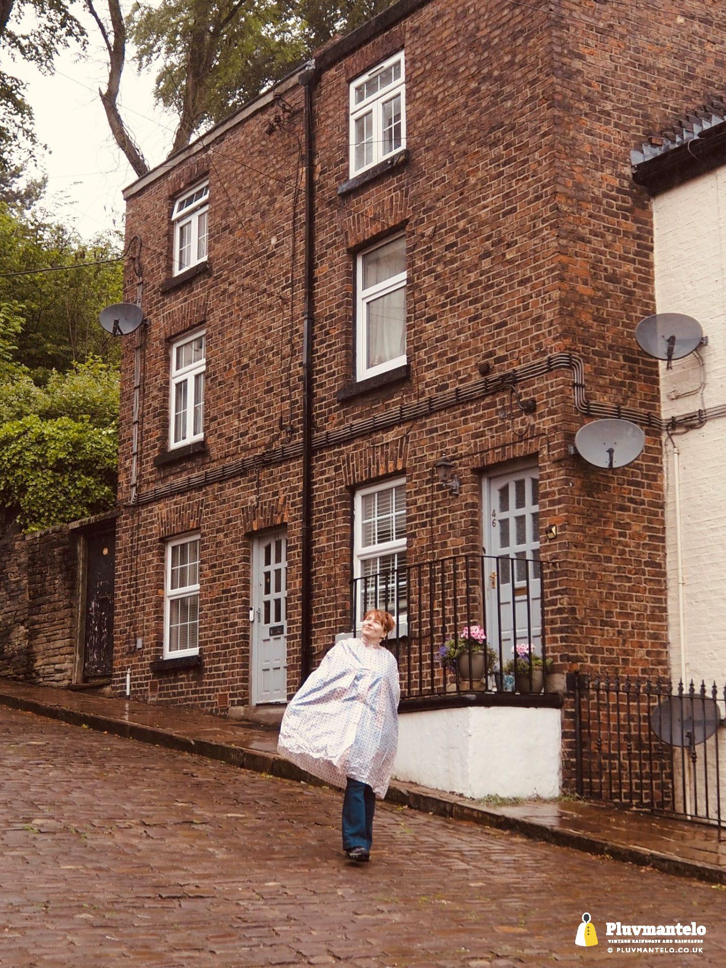 And in the homely surrounds of Macclesfield, Clair The Cape Queen’s cape laughed off the rain as it fell in stair rods. And so did Clair, who was warm and dry, neatly cocooned in that cape.