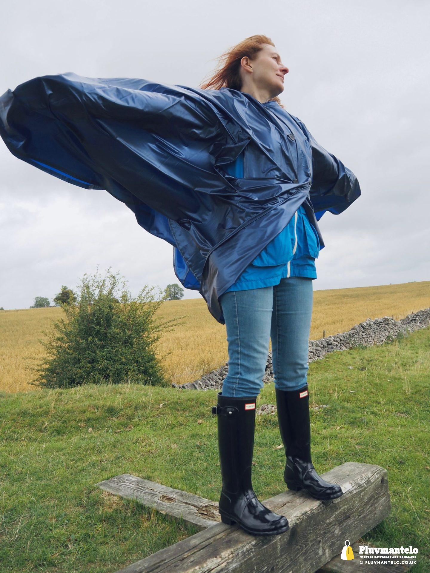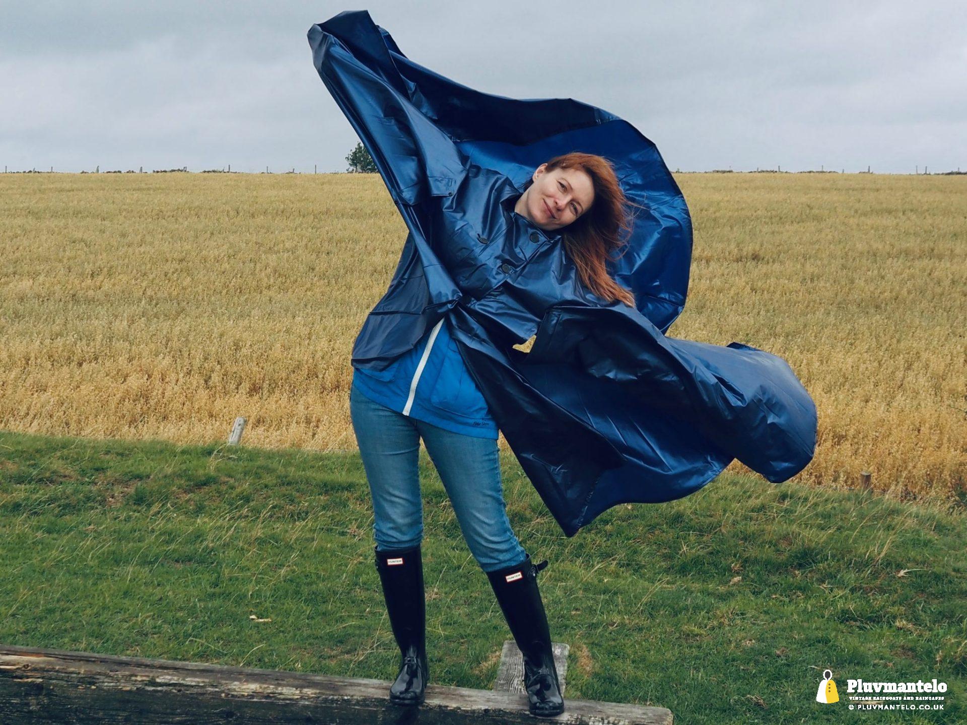 But while, according to the calendar, it was the height of summer grey skies and occasional showers were anything but. Clair The Cape Queen came suitably prepared with her purple/blue PVC cape and an immaculate set of shiny black Hunters. Ready for bad weather? Yes? Looking raincape cool? Definitely.
