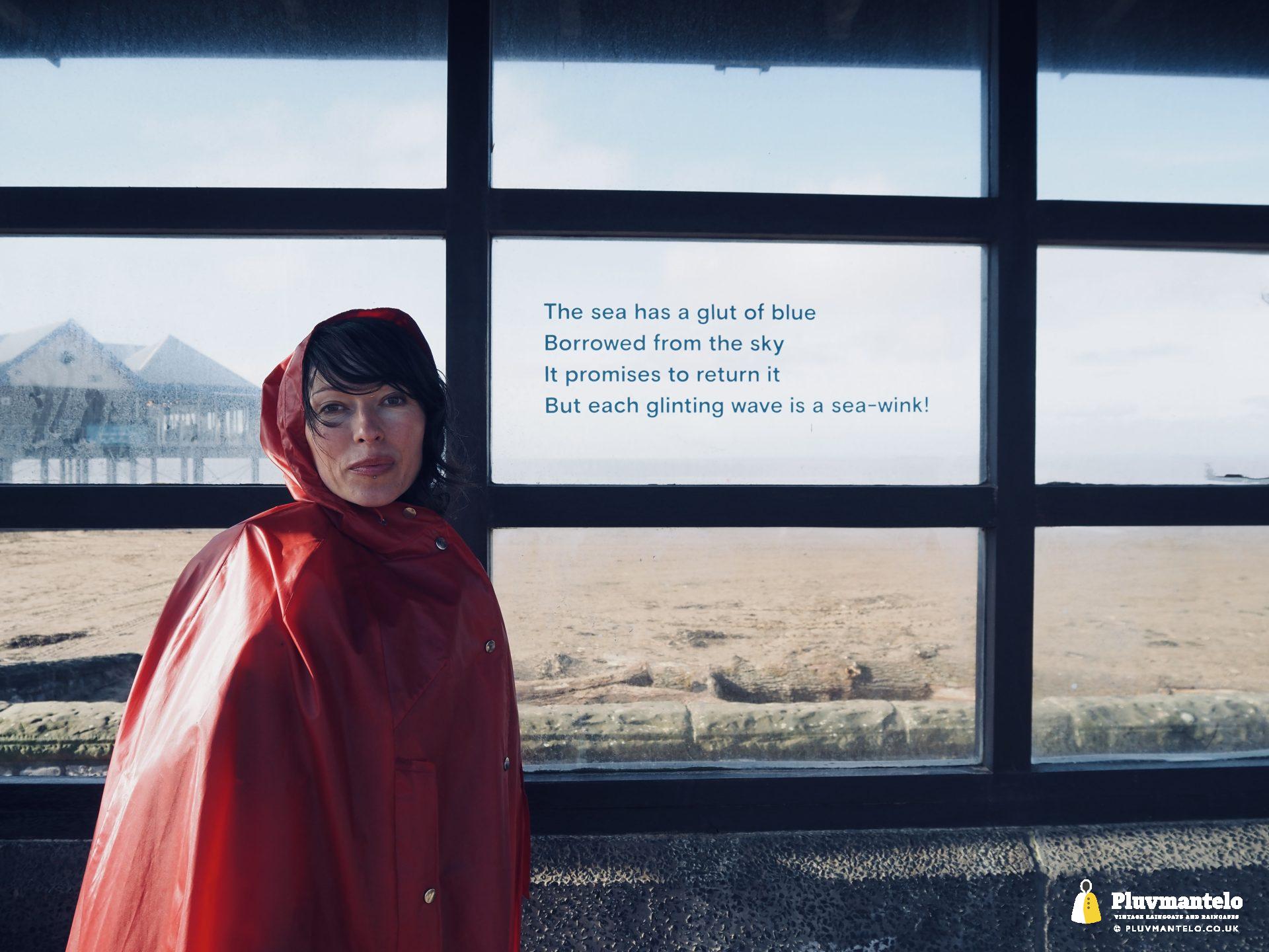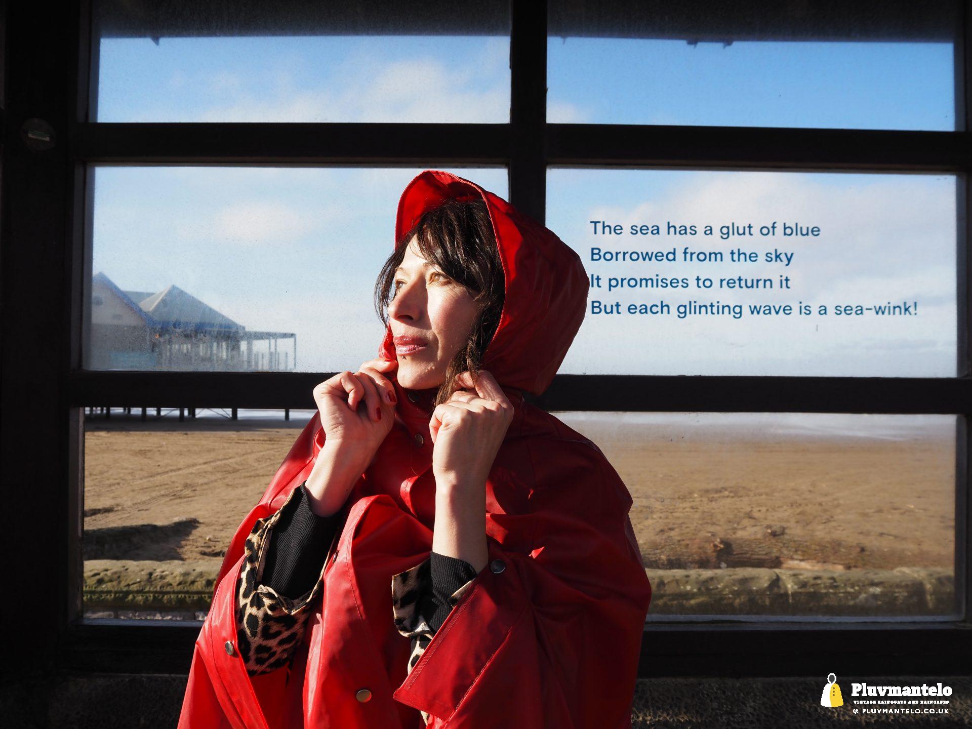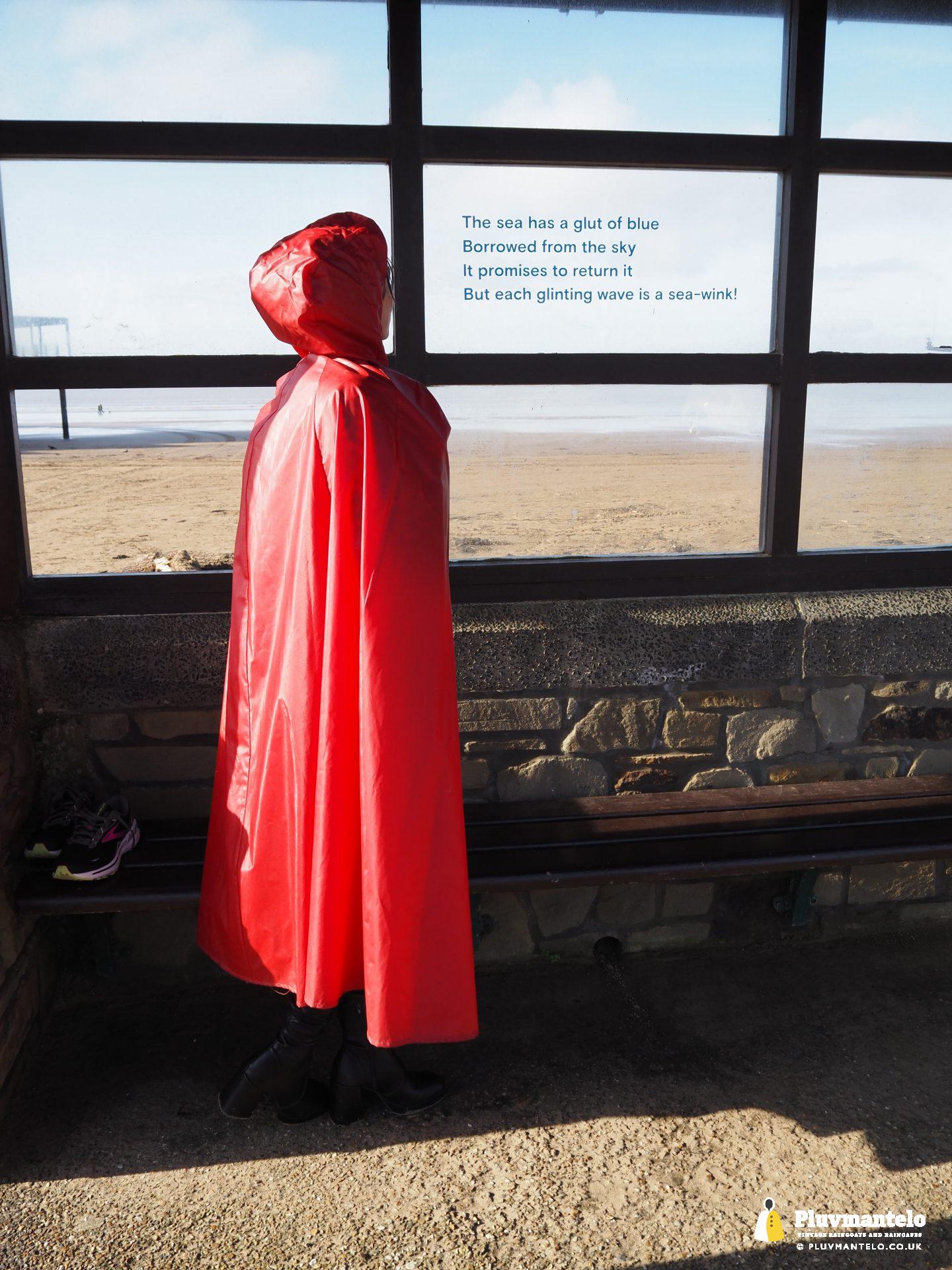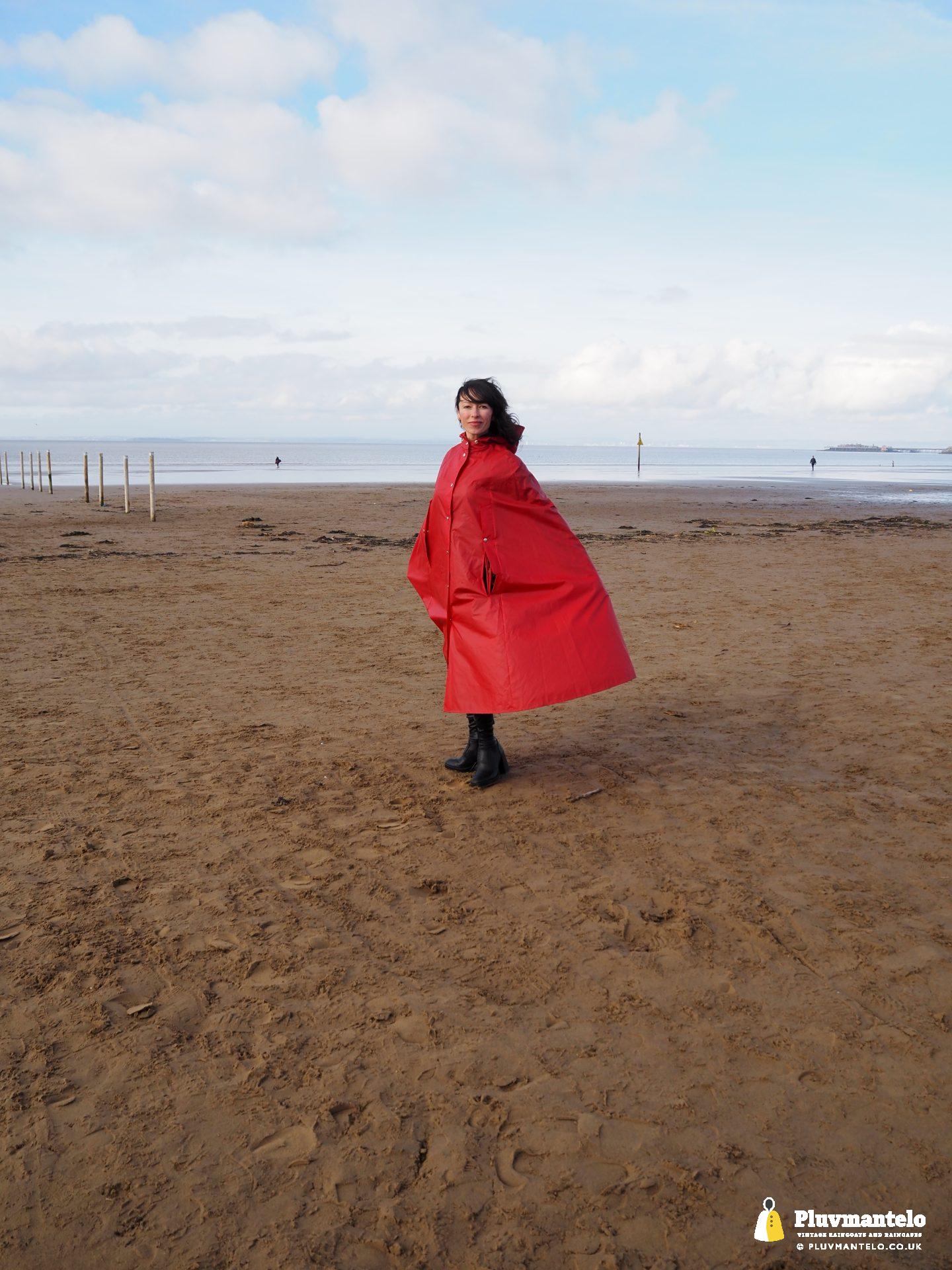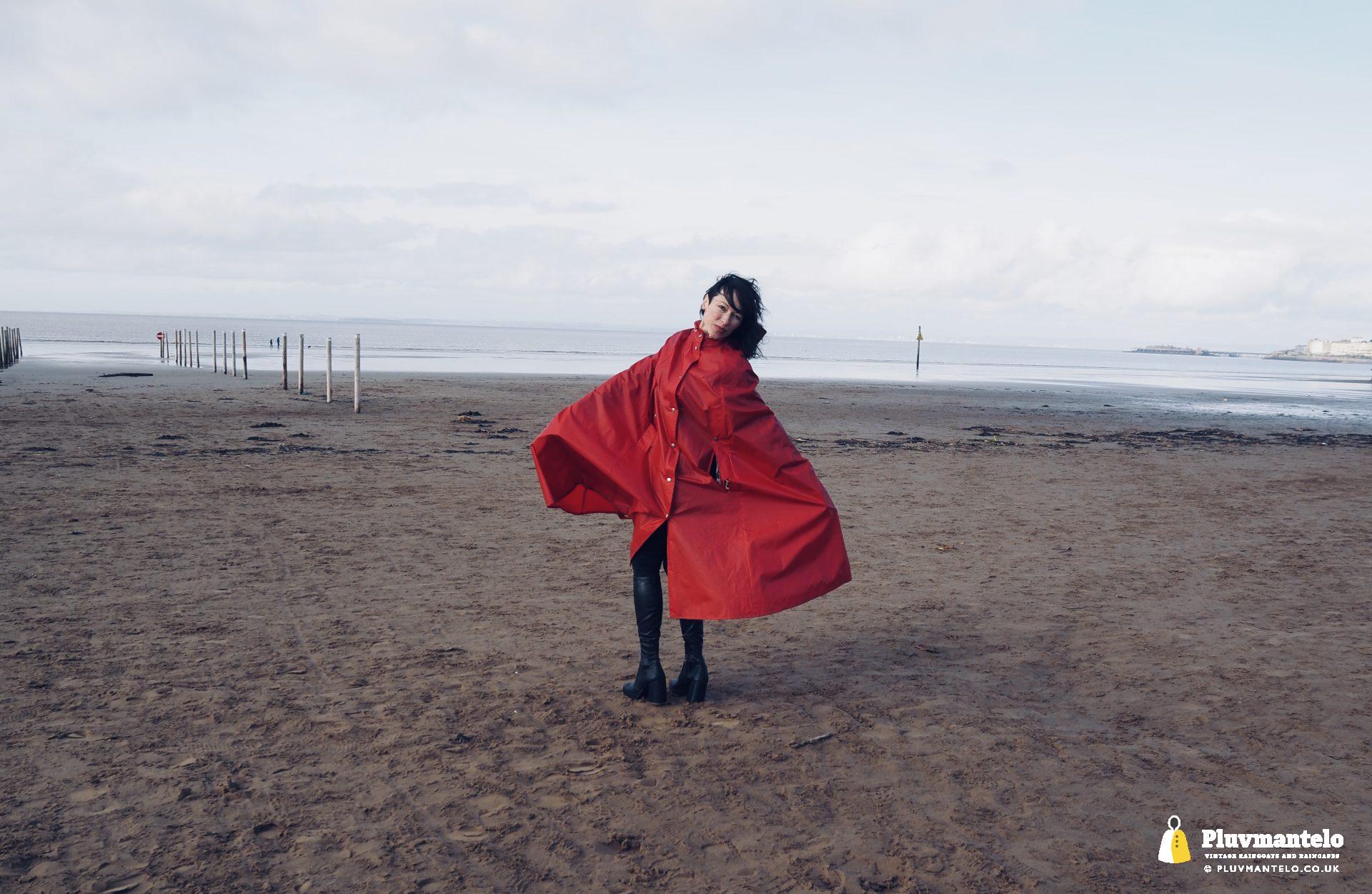 Sunshine and rain capes DO work, despite what the ‘experts’ might say. And if you want proof here’s Lilitth in a red Rukka number enjoying the beach, the sunshine and the beach shelter’s poetry. Long may beach cape-wearing continue!