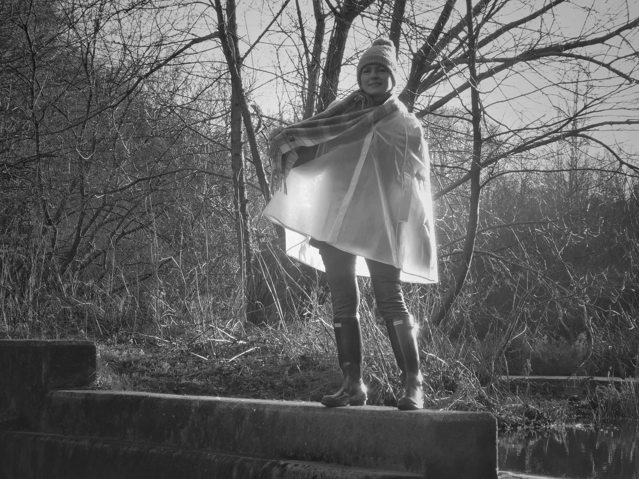 Clair The Cape Queen clearly has a thing for clear capes but she’s also got a late-‘60s/early-’70 black and white vibe going. It certainly recreates images from old-school rainwear magazines and it’s just what we like. We don’t sway one way or the other when it comes to colour or black and white: we like them both. But Pluvmantelo fans, what do you think? The Cape Queen would love to hear your thoughts…