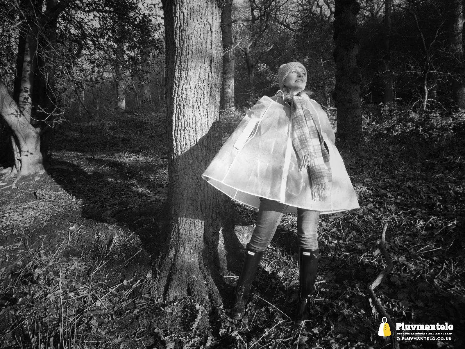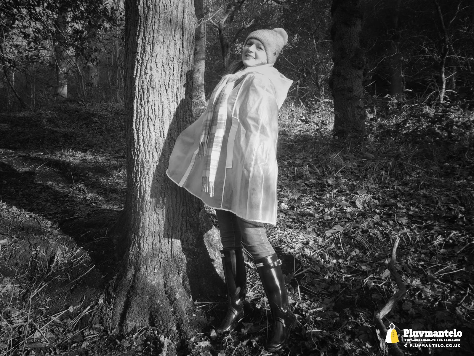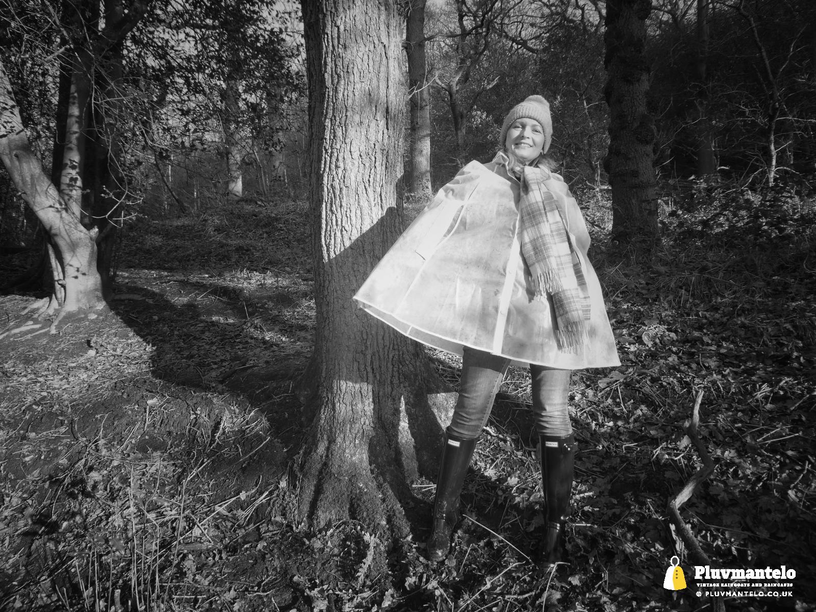 Clair The Cape Queen clearly has a thing for clear capes but she’s also got a late-‘60s/early-’70 black and white vibe going. It certainly recreates images from old-school rainwear magazines and it’s just what we like. We don’t sway one way or the other when it comes to colour or black and white: we like them both. But Pluvmantelo fans, what do you think? The Cape Queen would love to hear your thoughts…