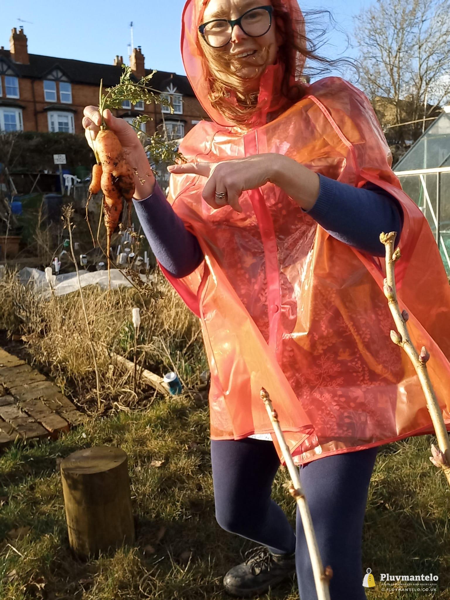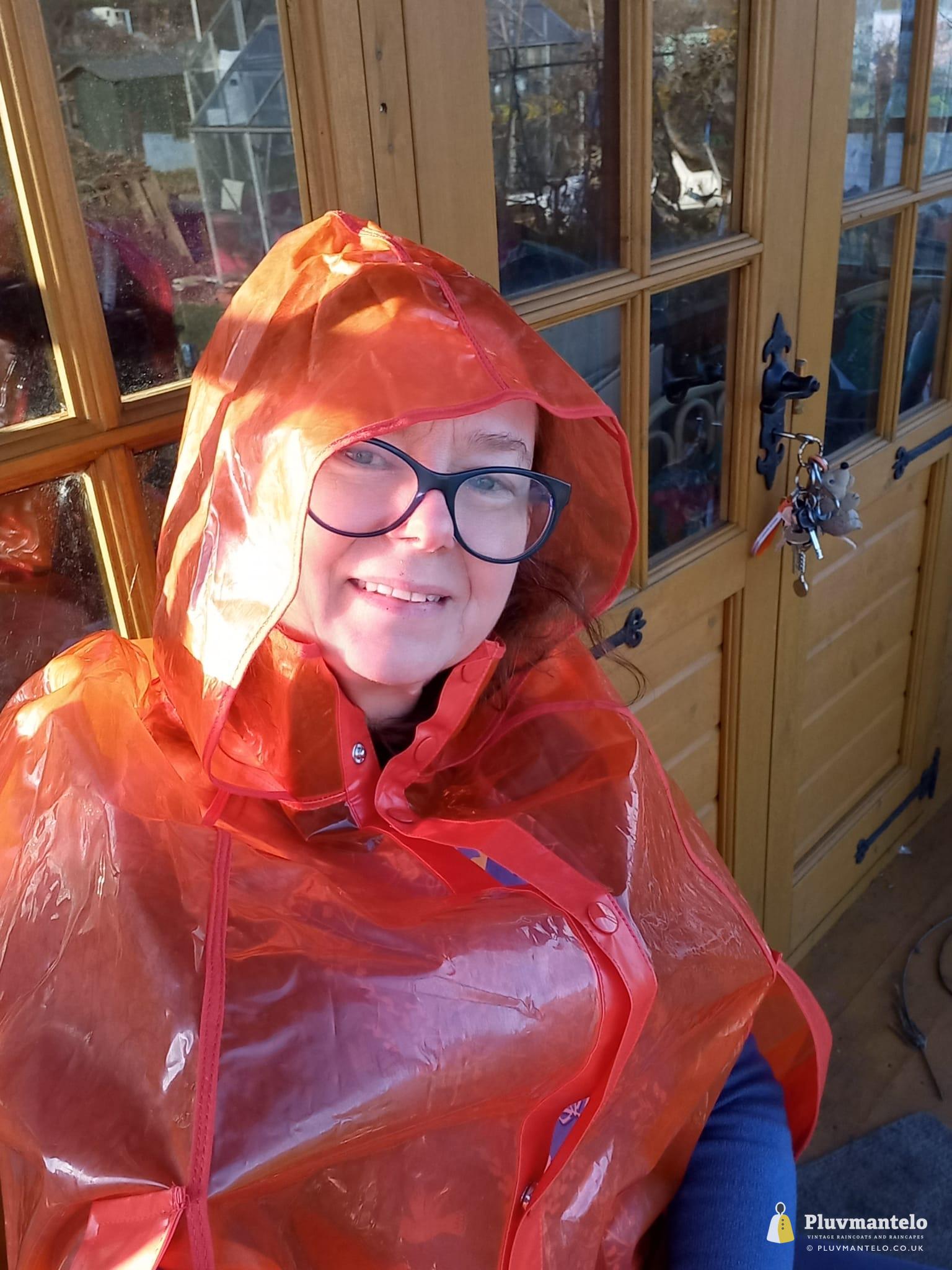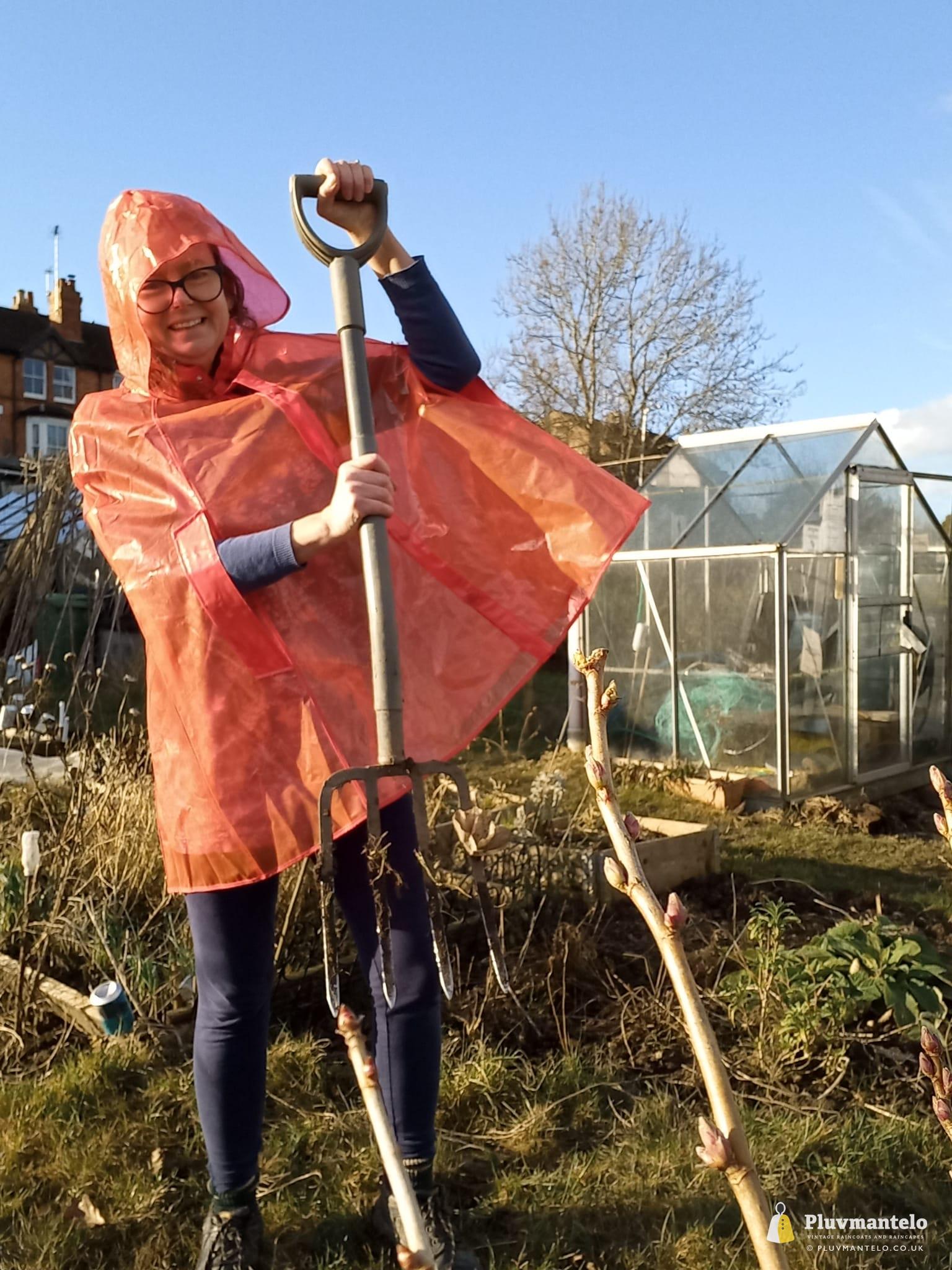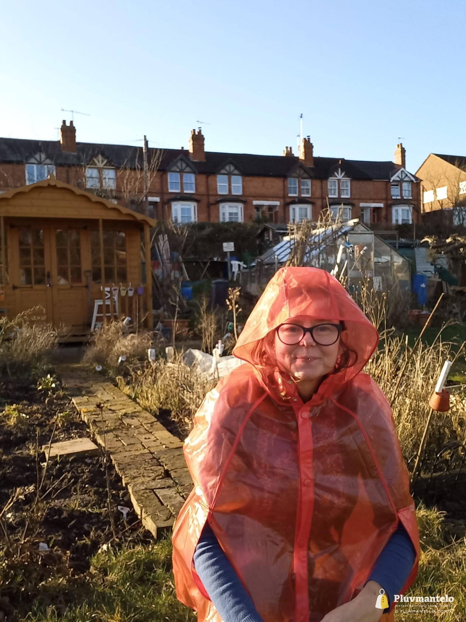 Anyway as Spring gets closer we’ll soon be seeing plenty of tips regarding what you should be doing in your garden or at your allotment. We say wear a cape. And Pluvmantelo’s friend Veronica recently made the most of the good weather and got stuck in with some cape gardening, wearing her orange pvc cape. The results look good…