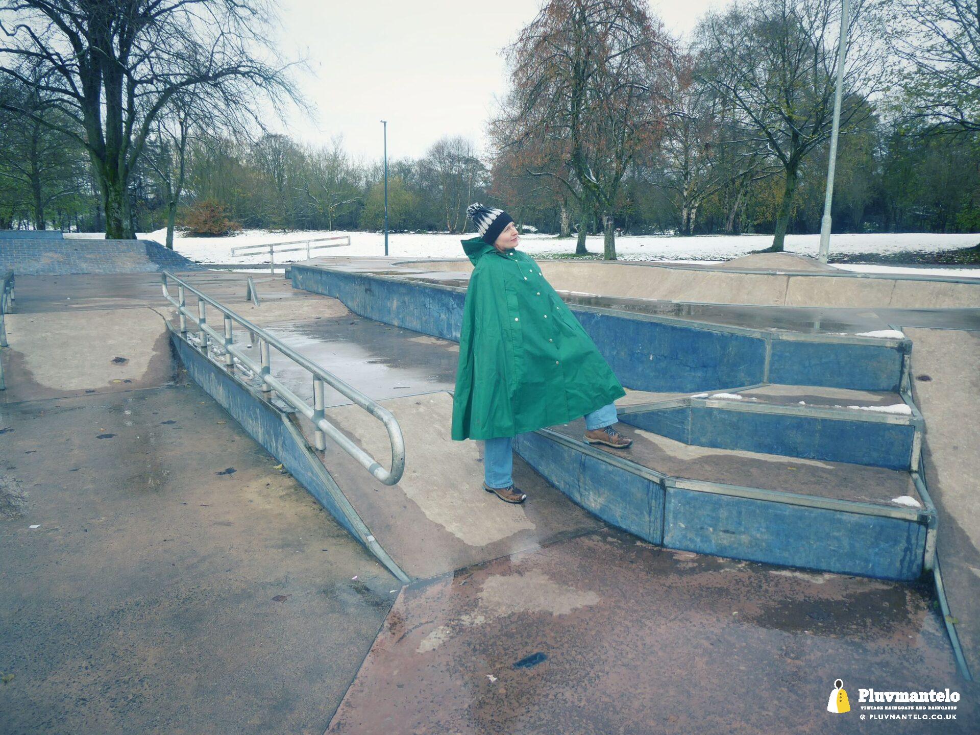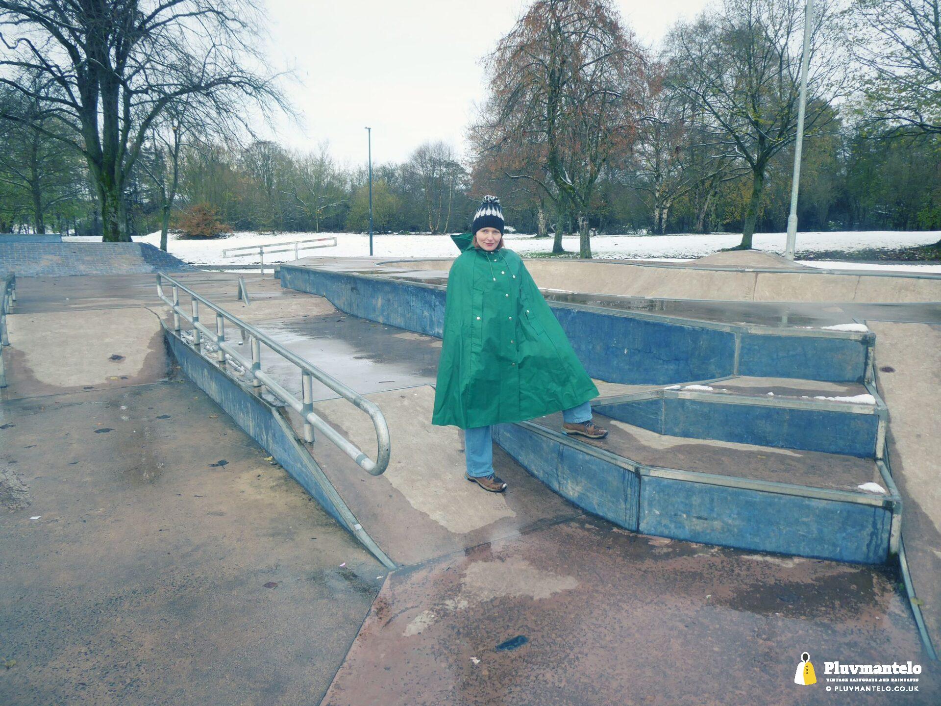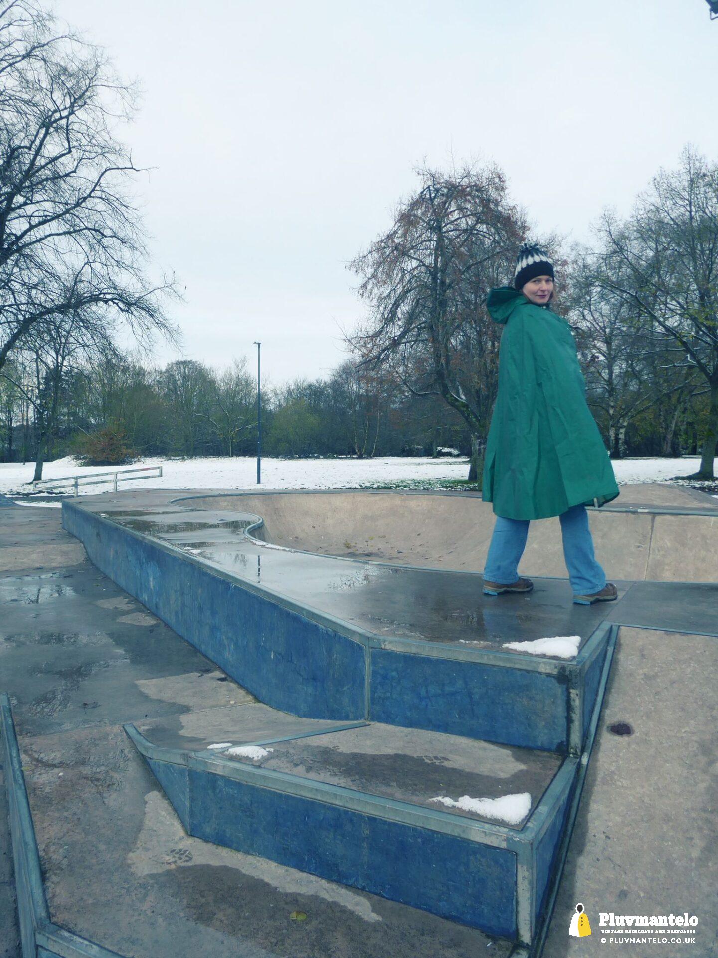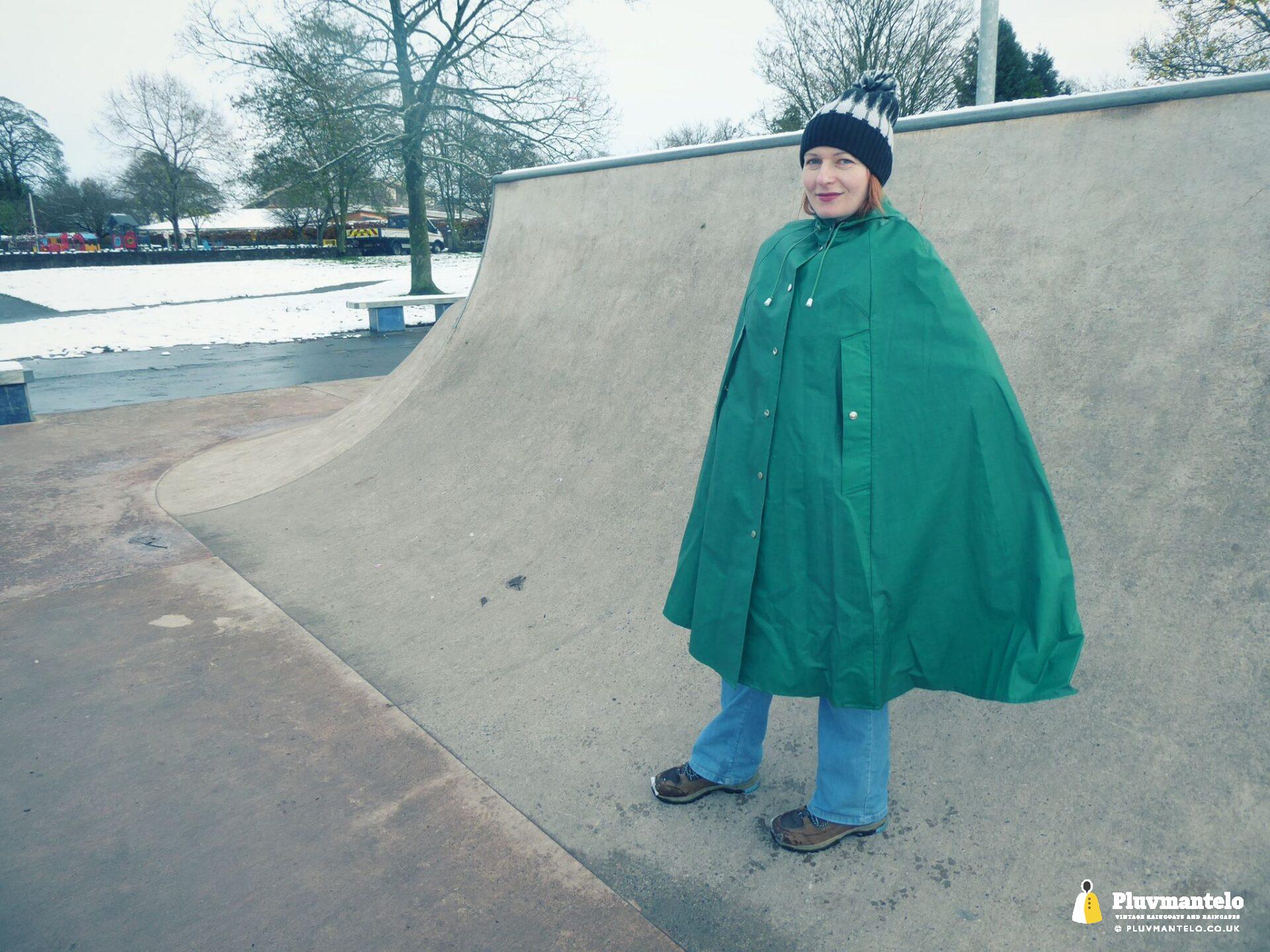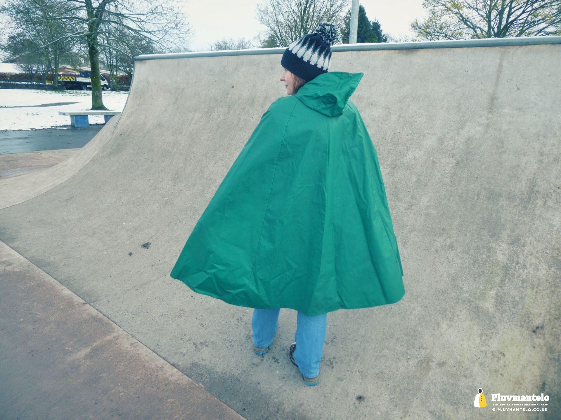 It certainly was on a cold, slightly snowy day in Clair The Cape Queen’s part of the world. This was the first outing for her Rukka cape in quite some time and she appreciates both its rain and wind resistance, courtesy of its waxed cotton construction. And yes, it hangs well too – and sounds good too!