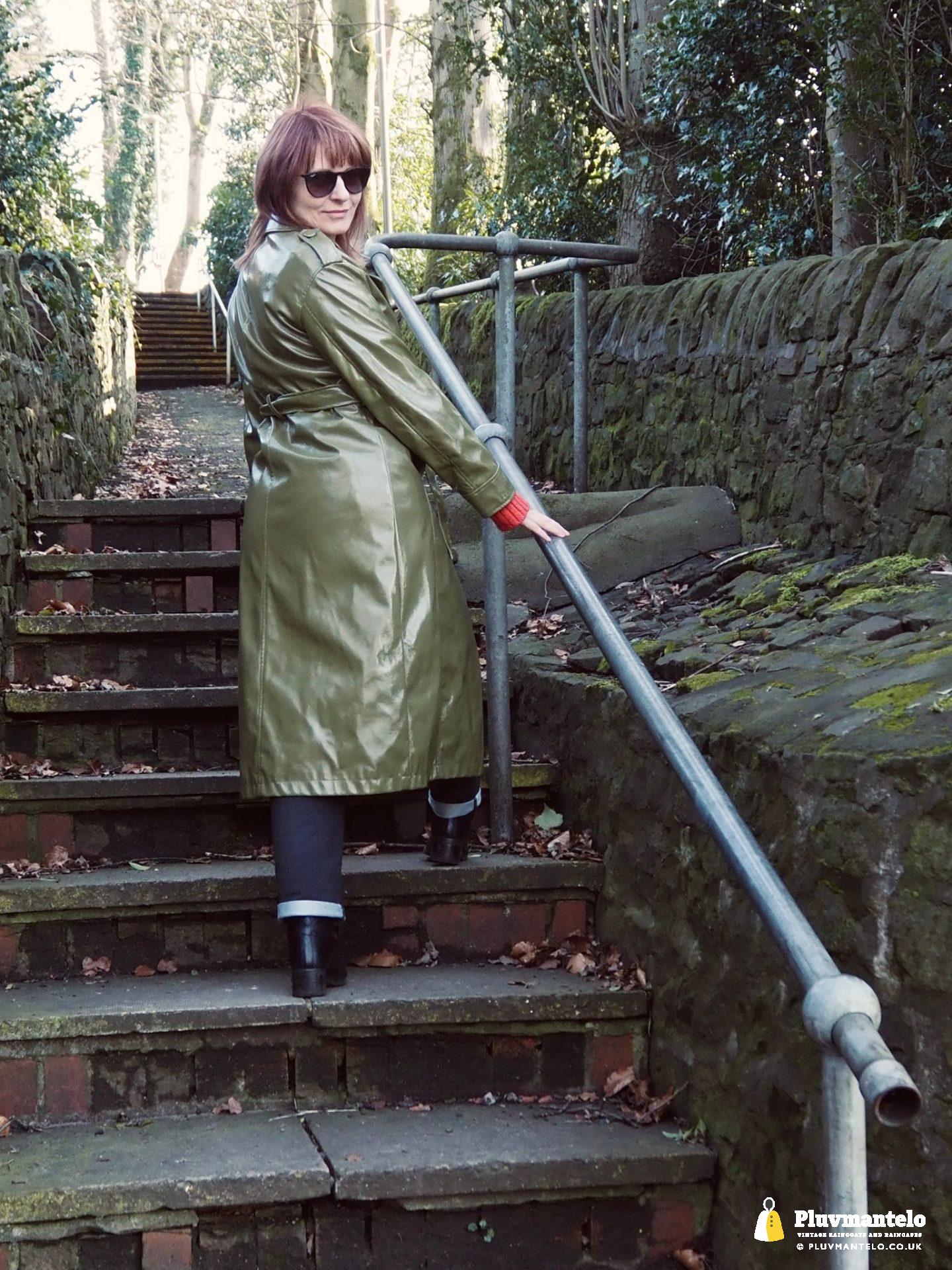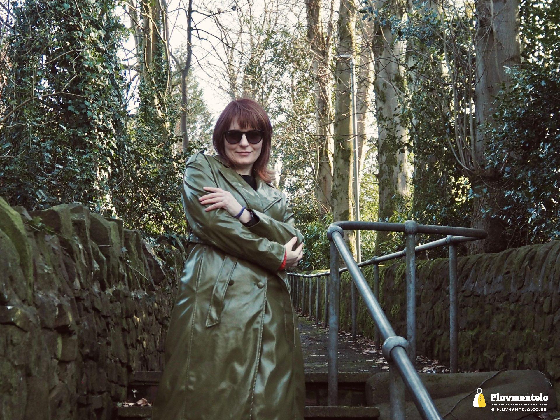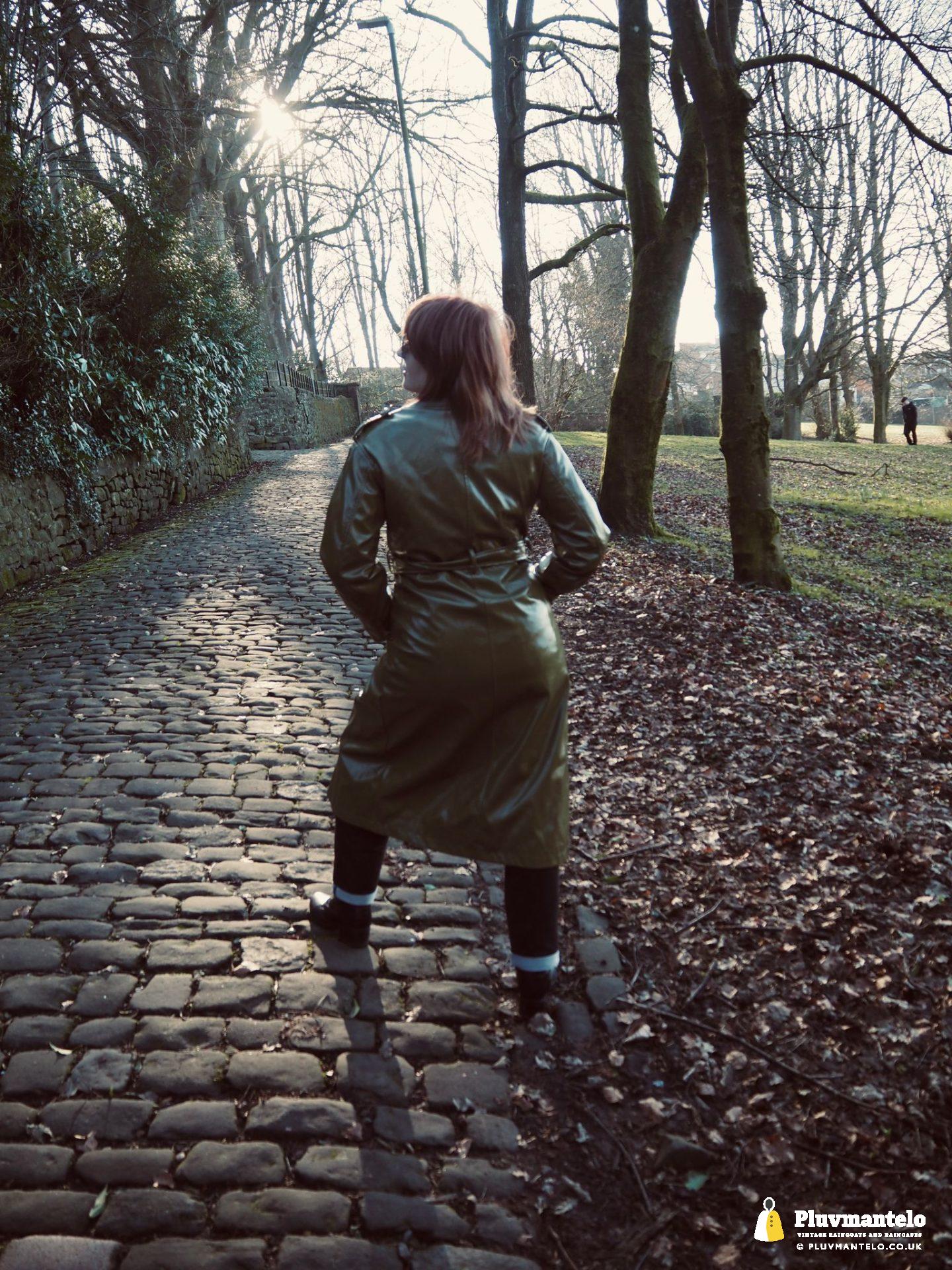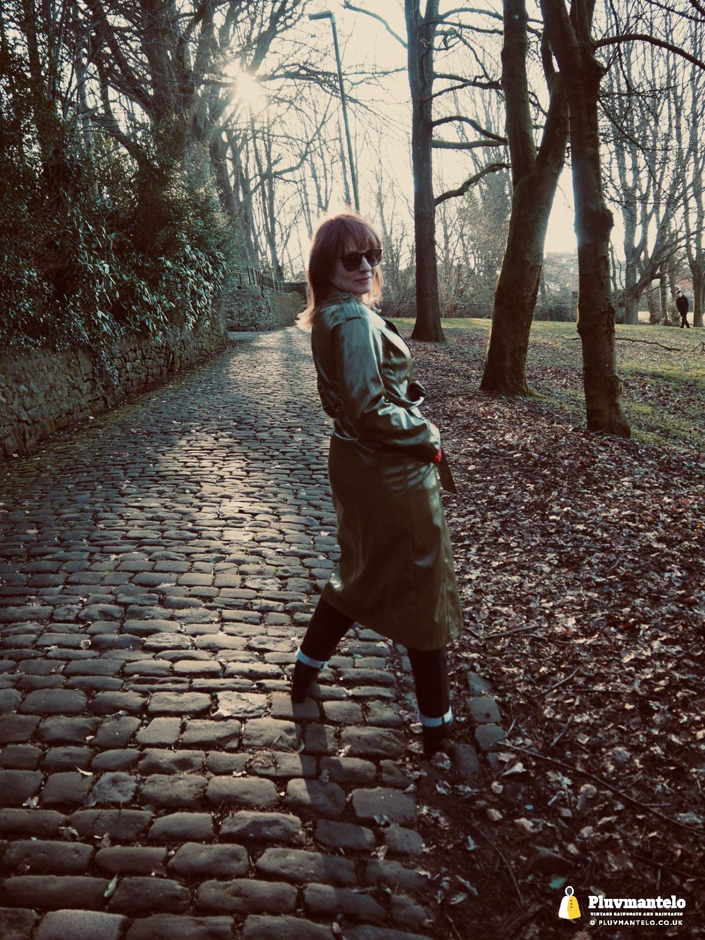 It’s an utter revelation – this time we’ve put the capes aside as The Cape Queen wore a lovely pea green PVC trench coat for her early spring walk in a local park. The coat clearly has an ‘I’m in charge’ air to it and gained some admiring looks as The Cape Queen swished through the town en route to the park.