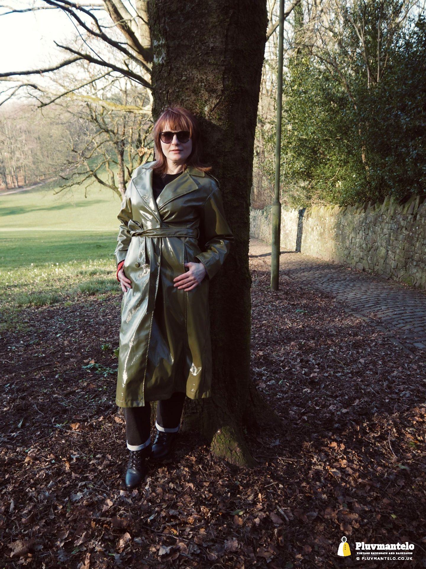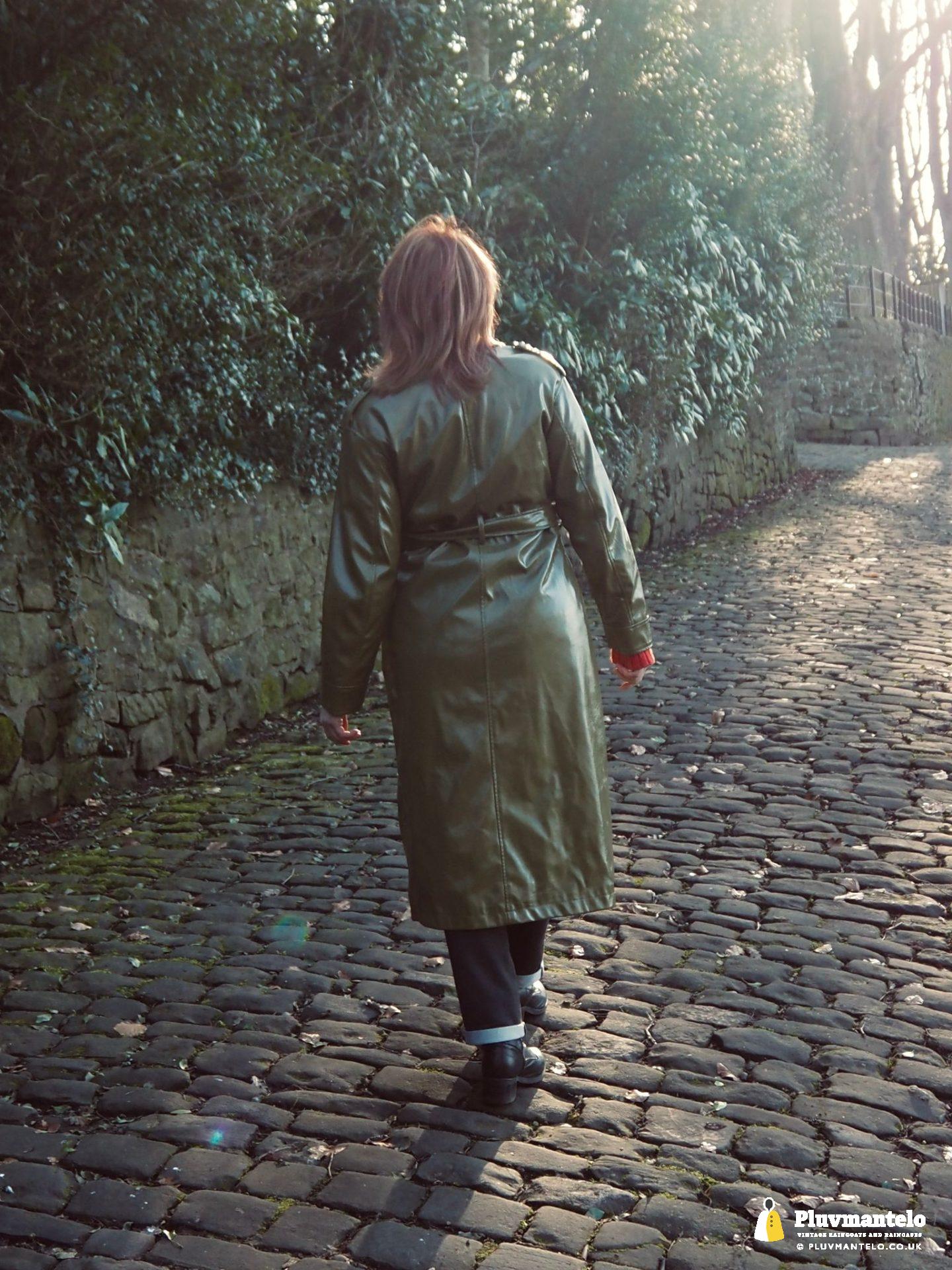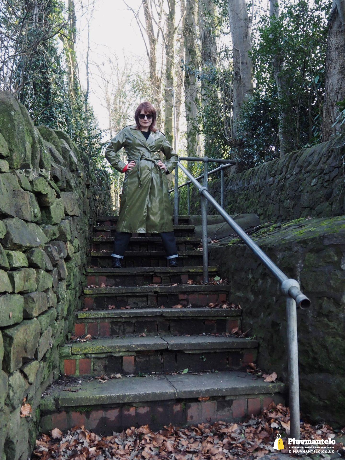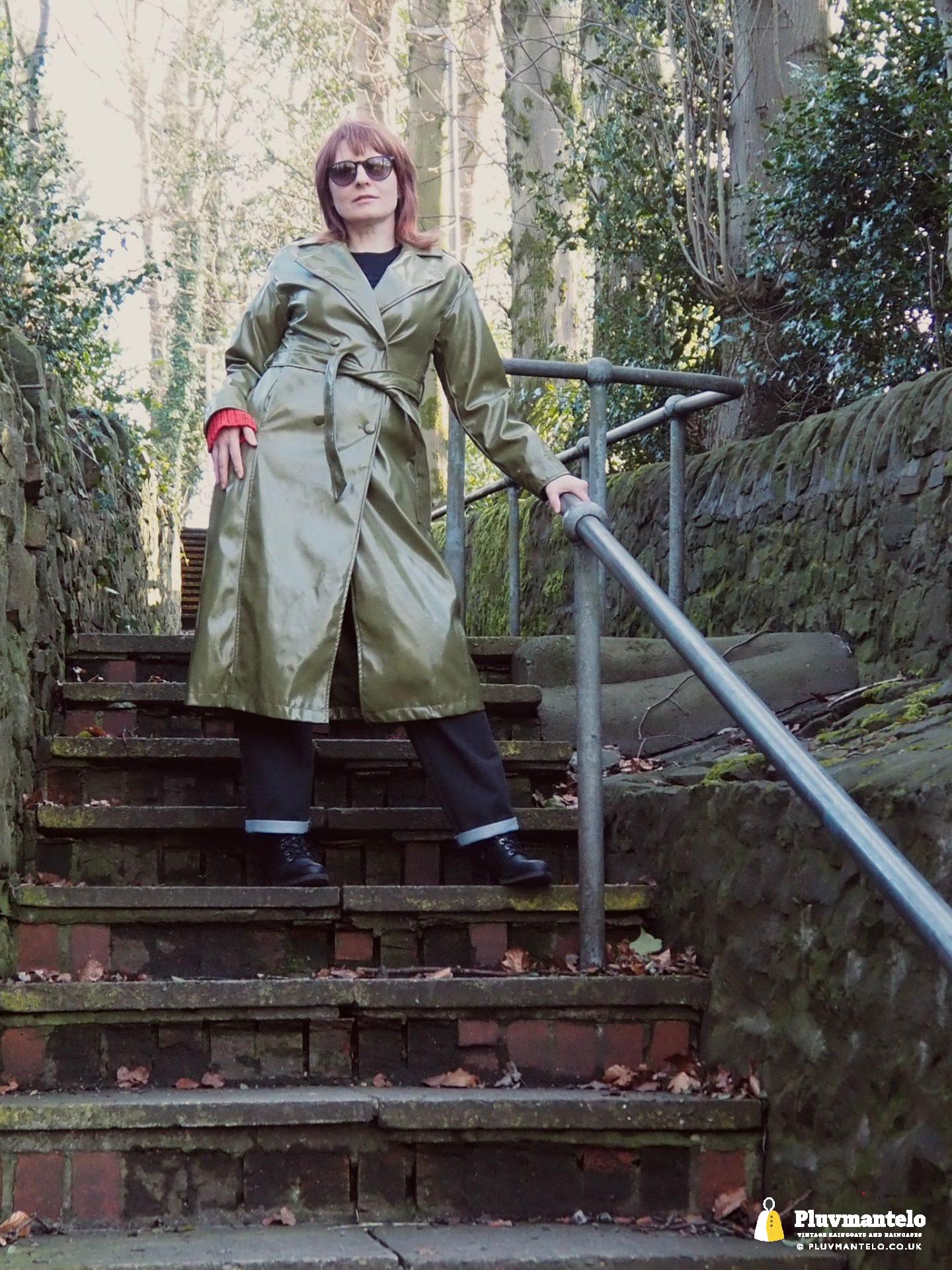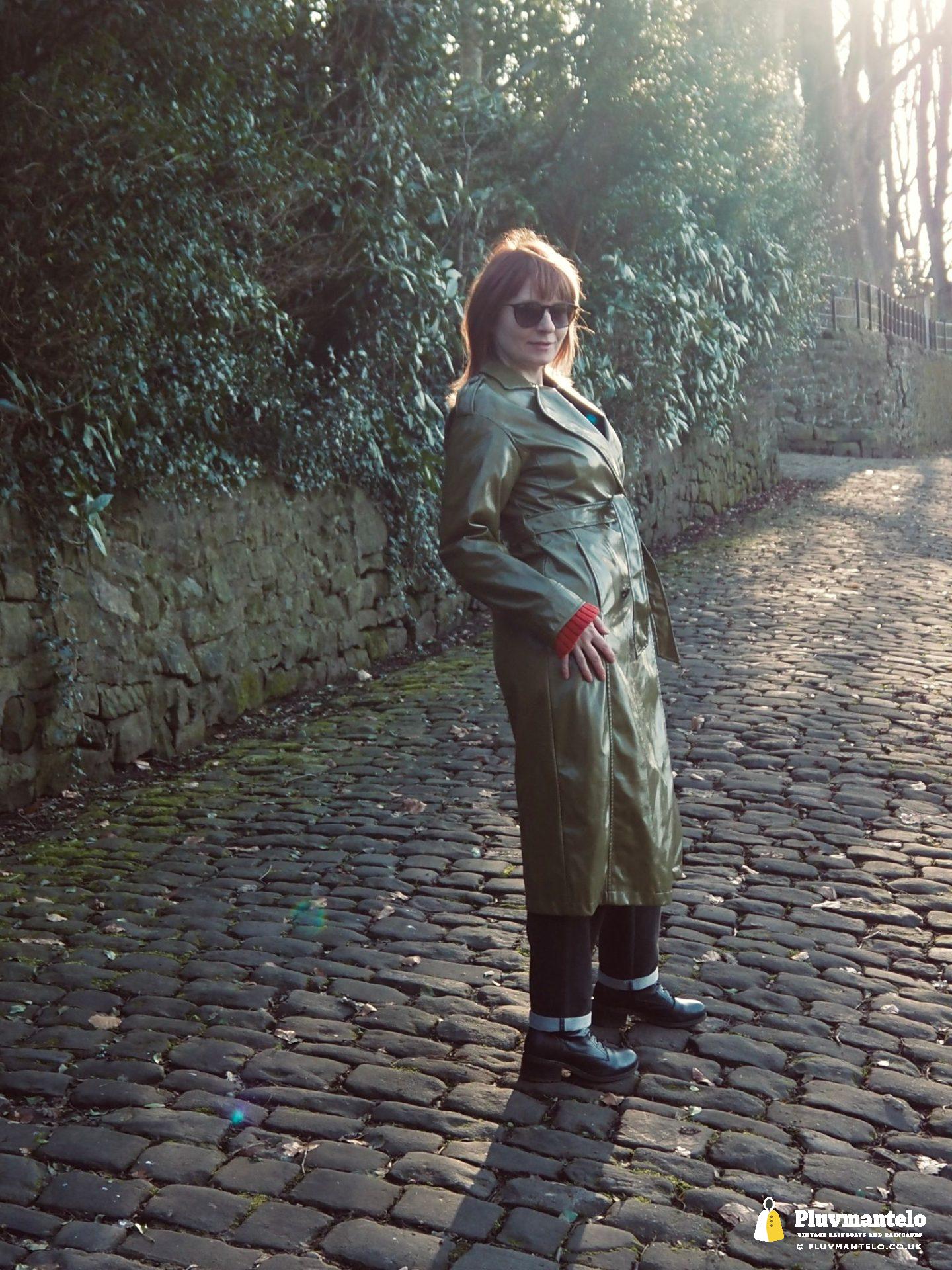 It’s an utter revelation – this time we’ve put the capes aside as The Cape Queen wore a lovely pea green PVC trench coat for her early spring walk in a local park. The coat clearly has an ‘I’m in charge’ air to it and gained some admiring looks as The Cape Queen swished through the town en route to the park.