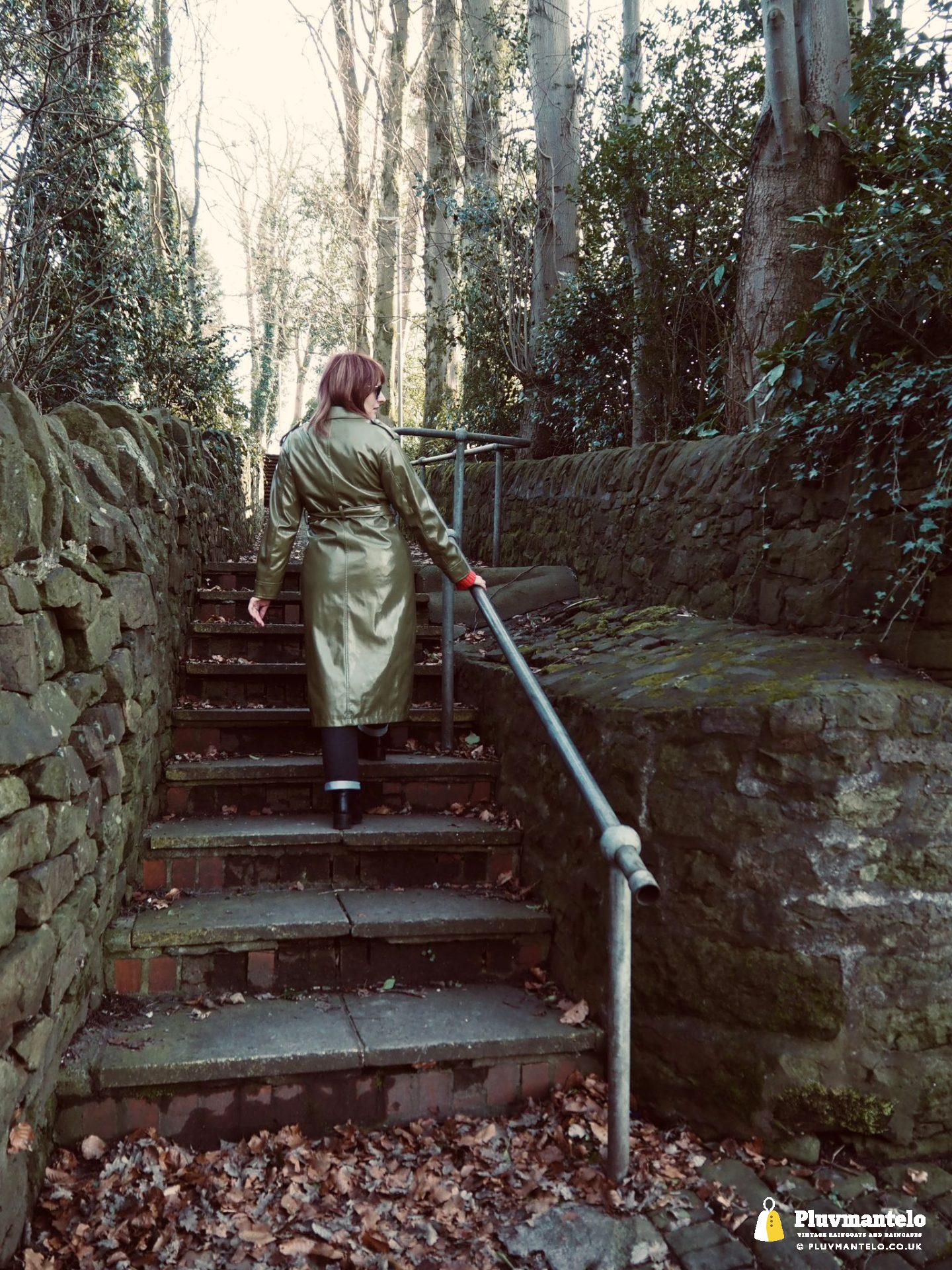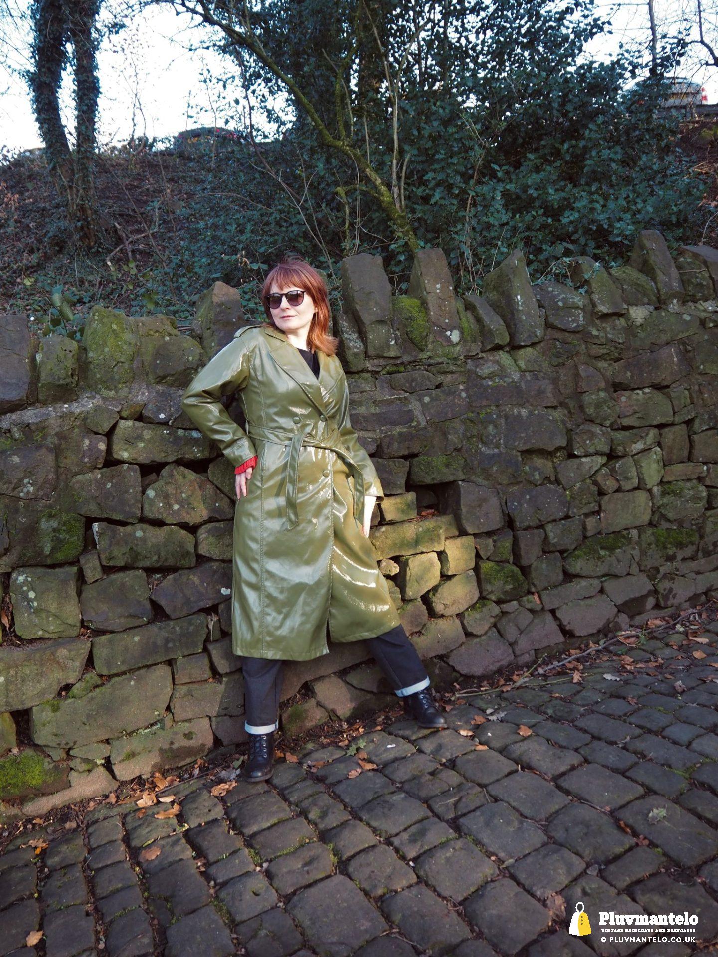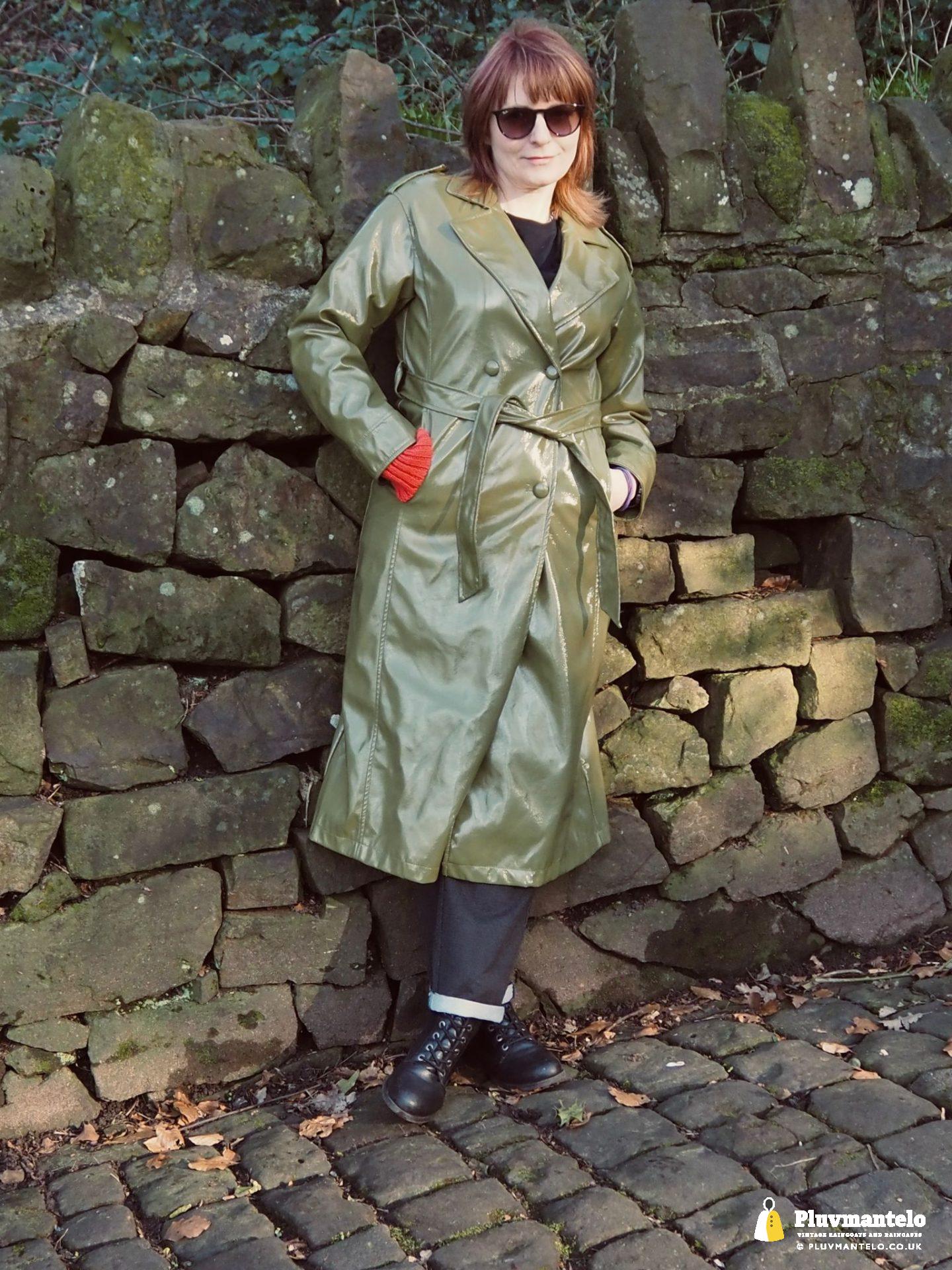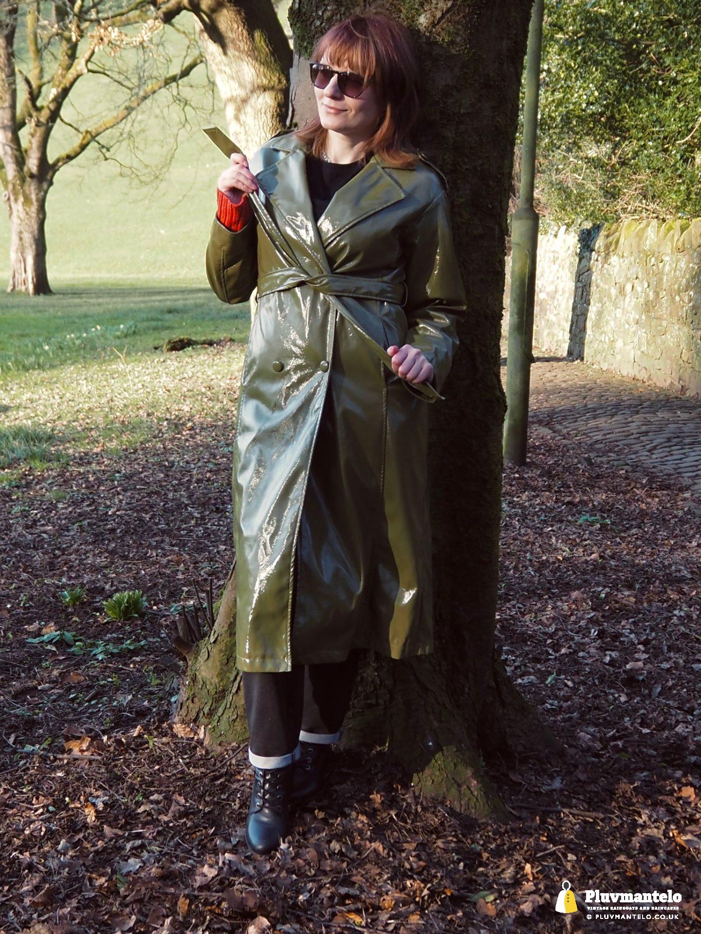 It’s an utter revelation – this time we’ve put the capes aside as The Cape Queen wore a lovely pea green PVC trench coat for her early spring walk in a local park. The coat clearly has an ‘I’m in charge’ air to it and gained some admiring looks as The Cape Queen swished through the town en route to the park.