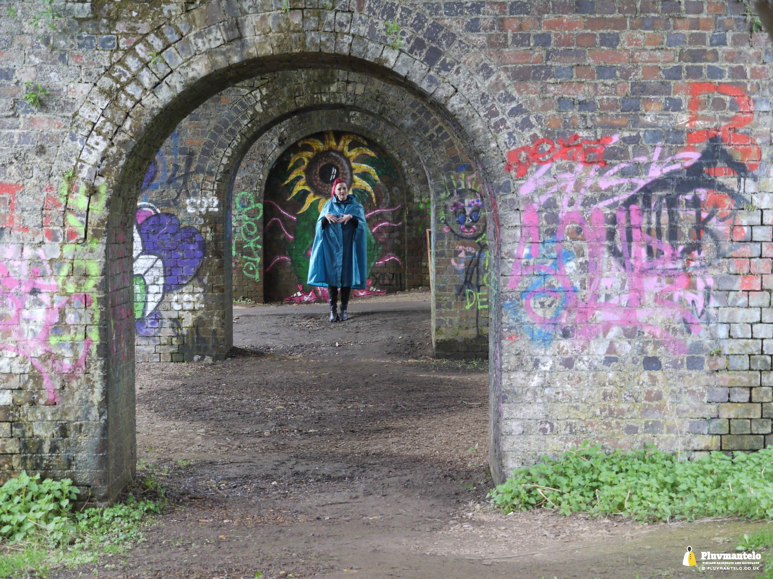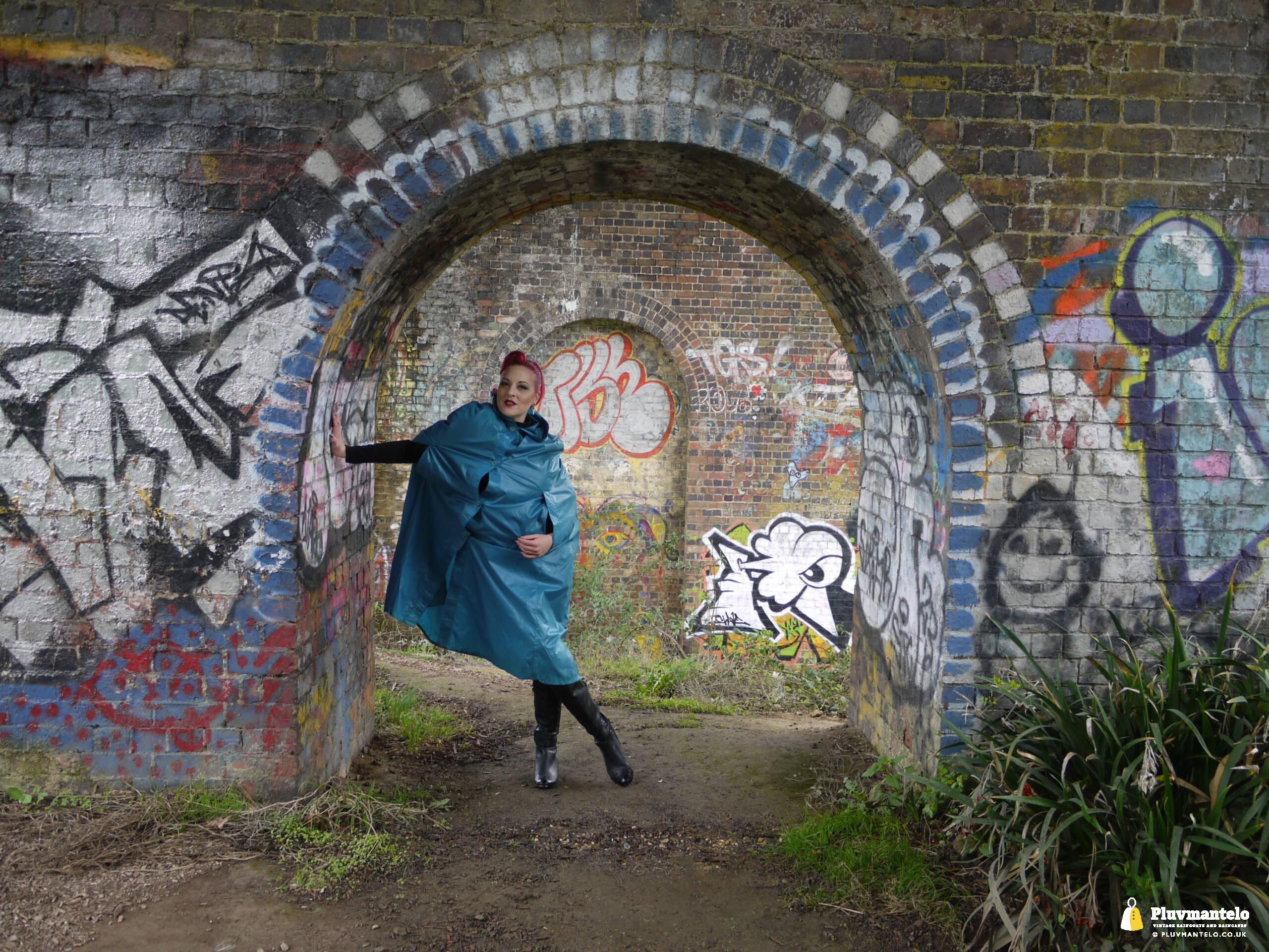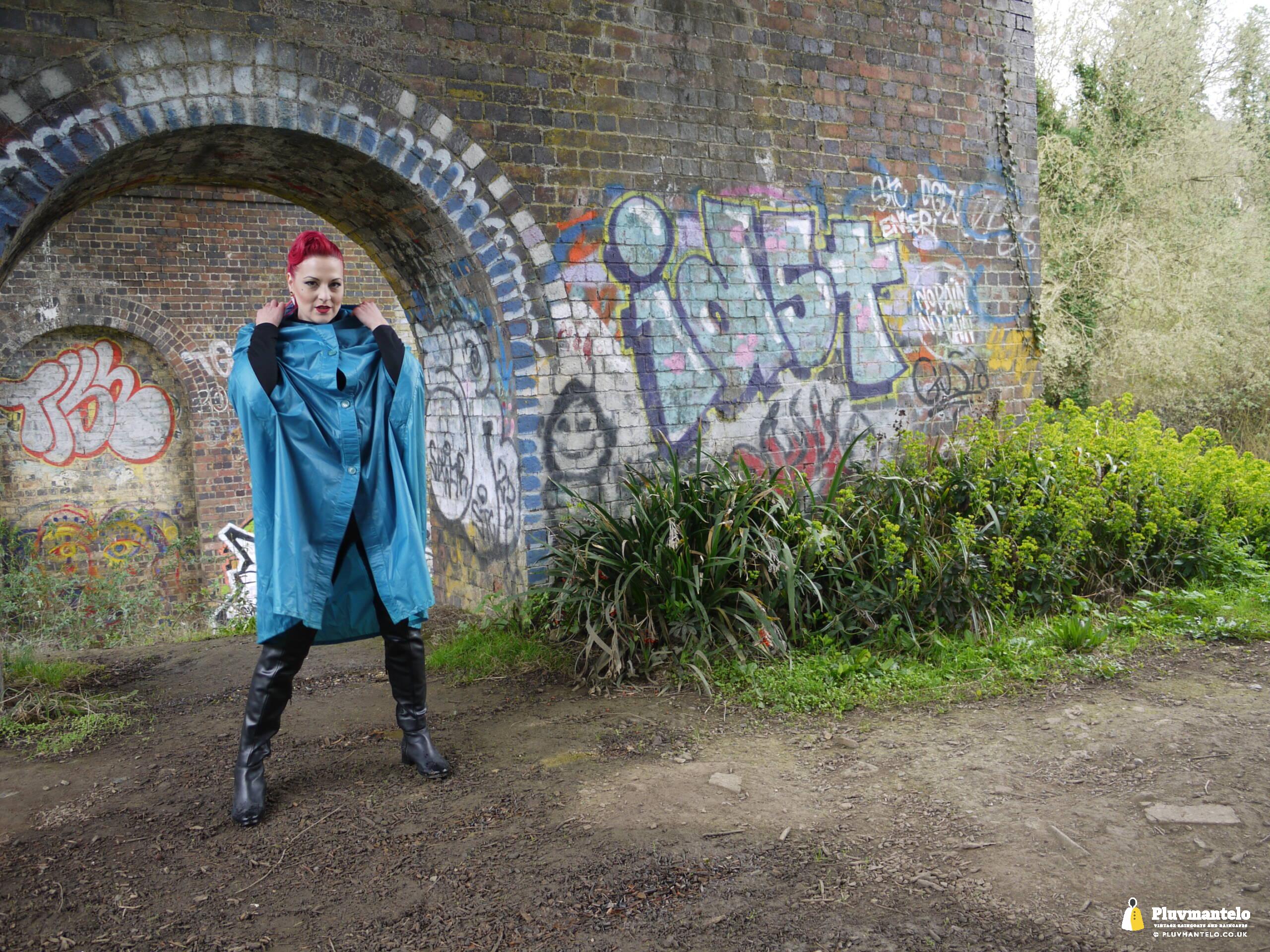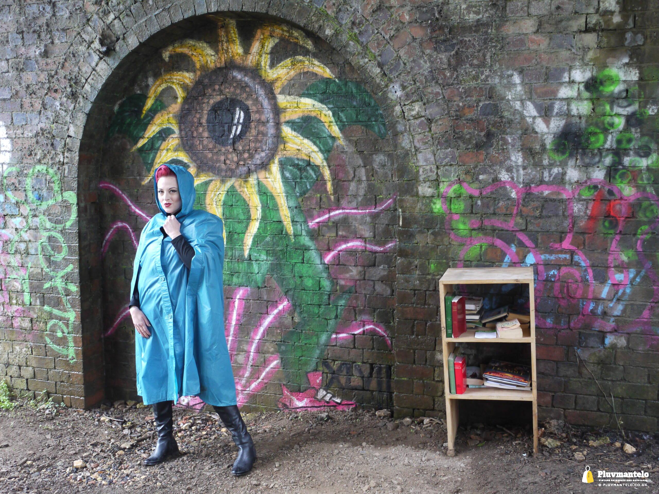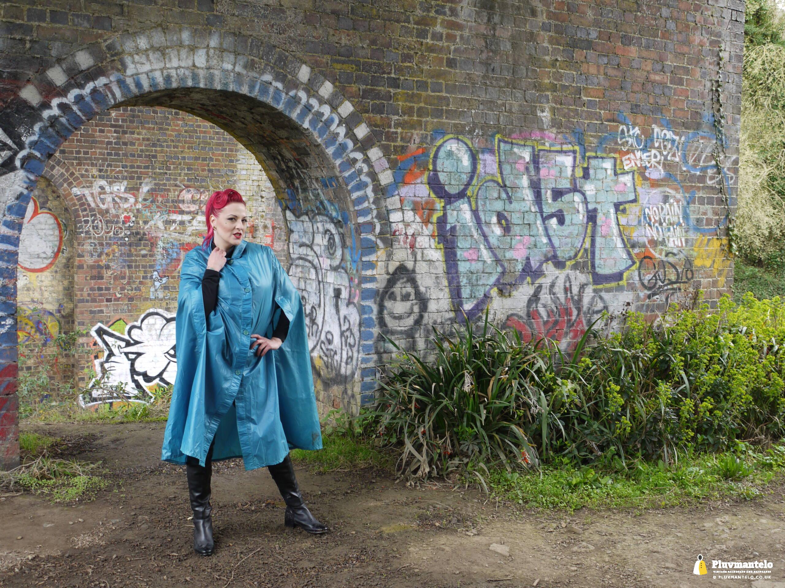 So, Pluvmantelo followers, we’d like to introduce you to The Capeatrix, a true connoisseur of the cape. We were invited to her domain while she wore a selection of 1960s and 1970s capes, beginning with this nylon early 1970s number.
