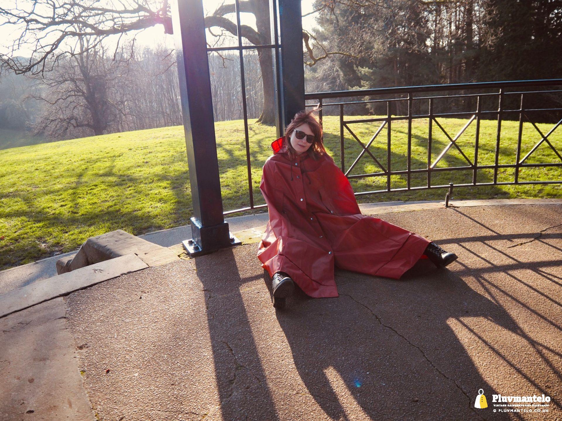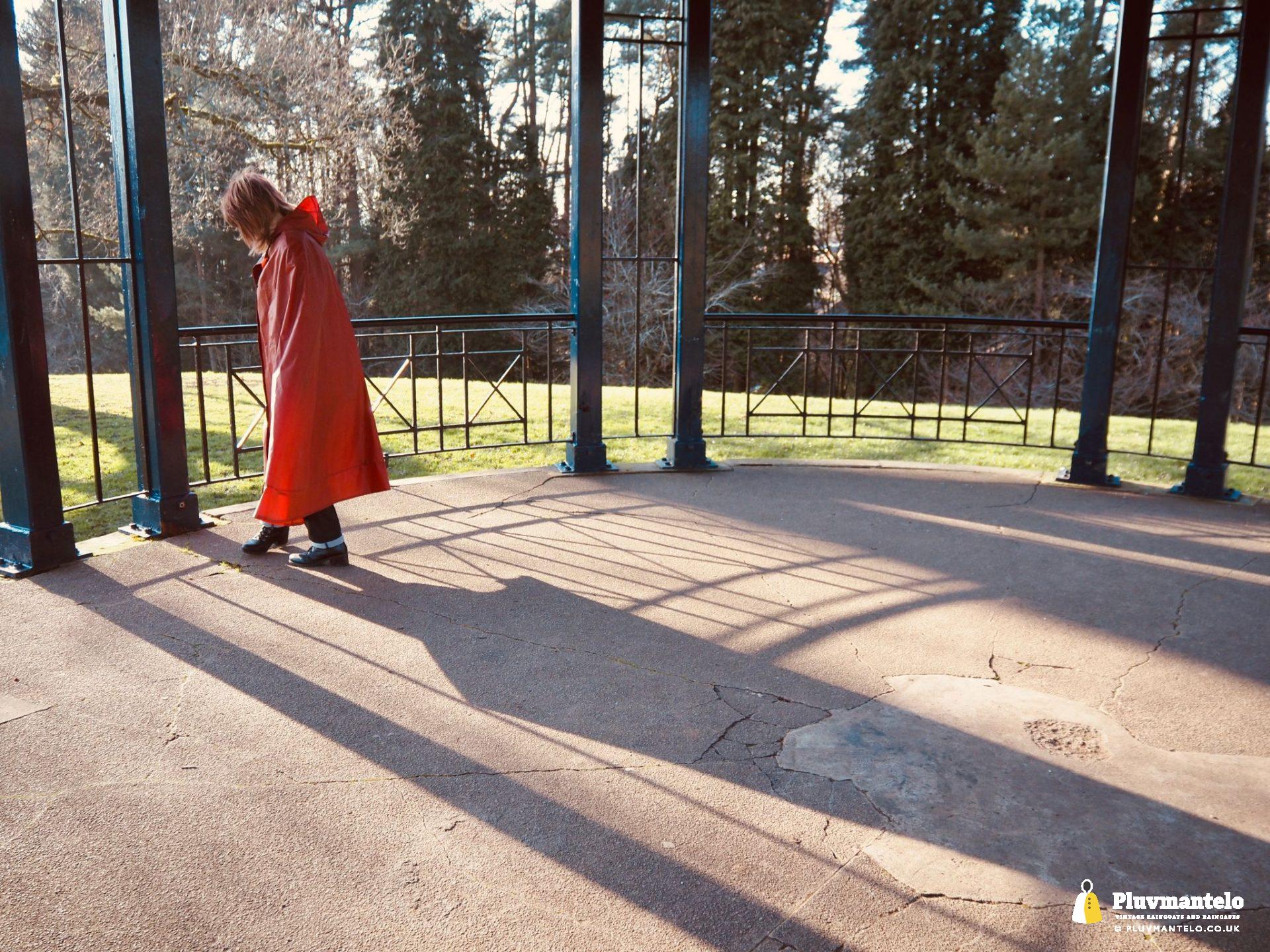 …whatever you call it, it IS The Cape Queen, in a bandstand, in a Rukka cape, enjoying the early Spring sunshine.