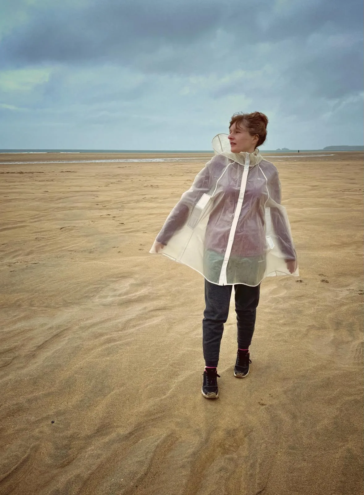 The weather out West wasn’t, well, truly beach friendly, so Clair The Cape Queen had to cape up against those stiff breezes and the hard rain. But as we see, The Cape Queen maintained an entirely kool air while staying warm and dry.