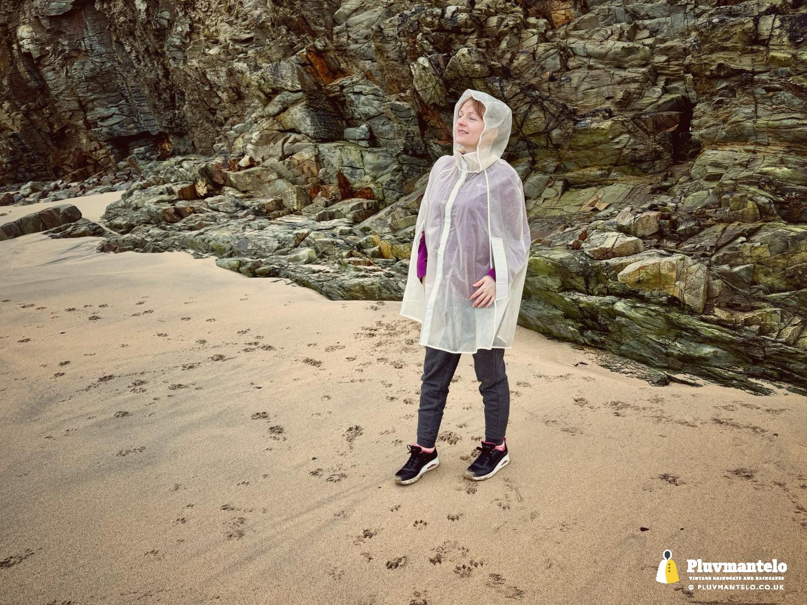 she was caped in her shiny blue enclosed raincape and she looked splendid. We made a short walk and i wore my green raincape – it was fun and exciting walking with her in her enclosed raincape with head on.