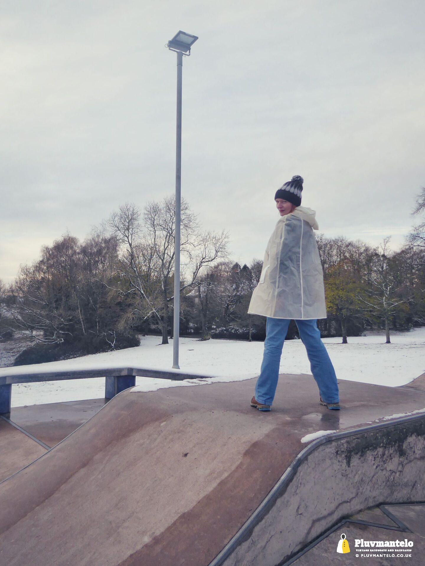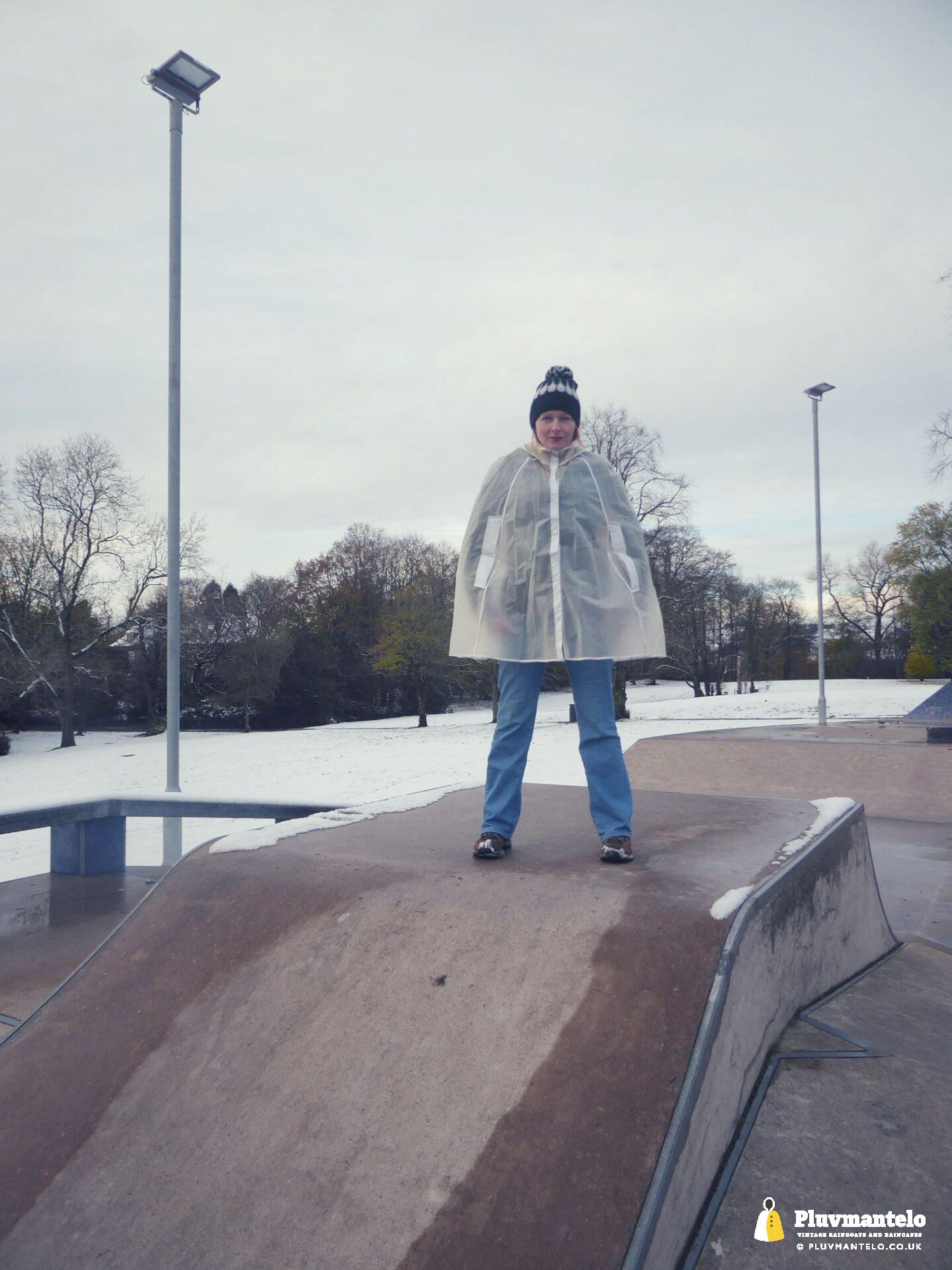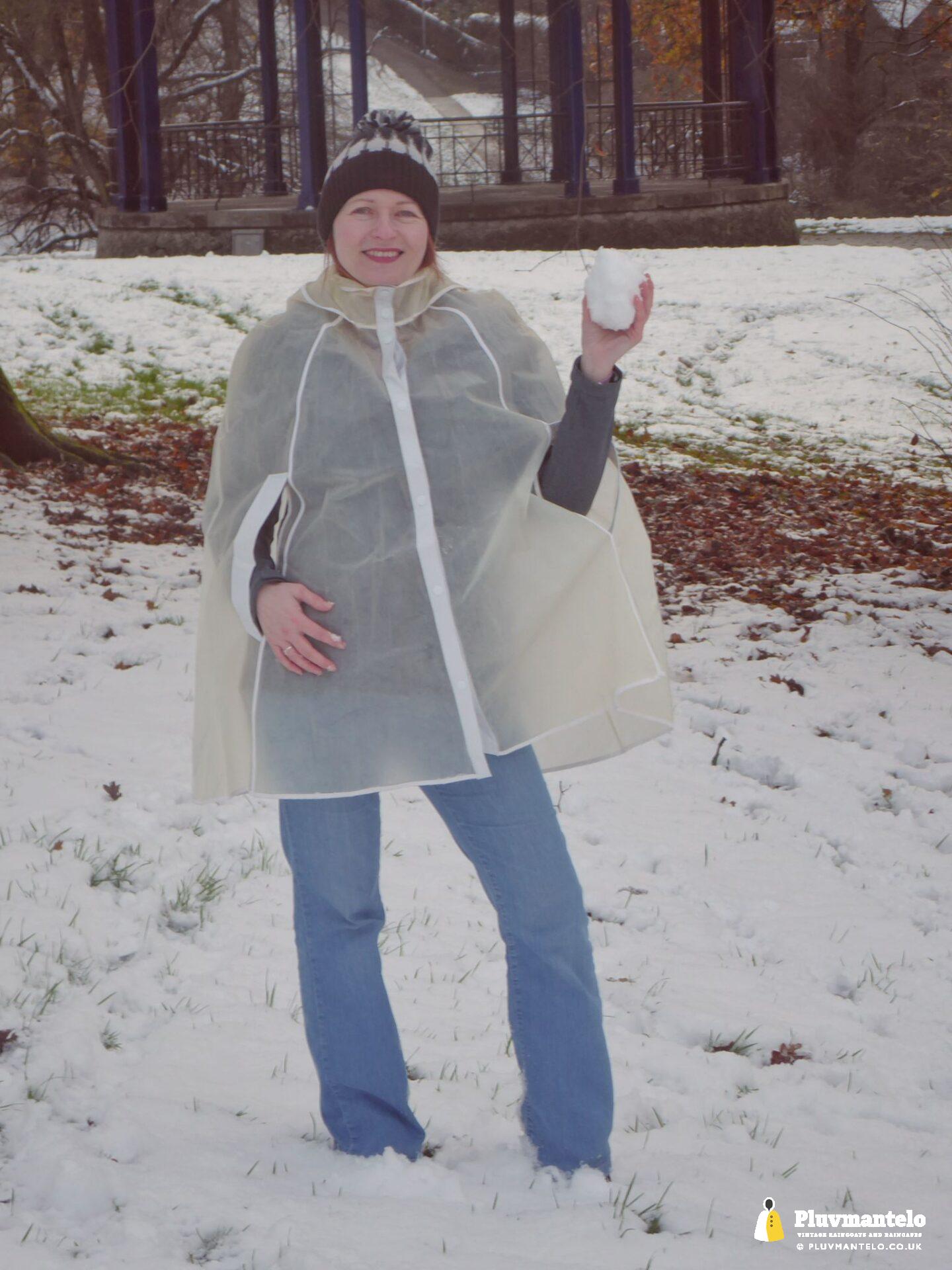 What’s a splendid short raincape ! I love you when you are wearing a seach delicious cape. It’s good for rain, snow … or sun !