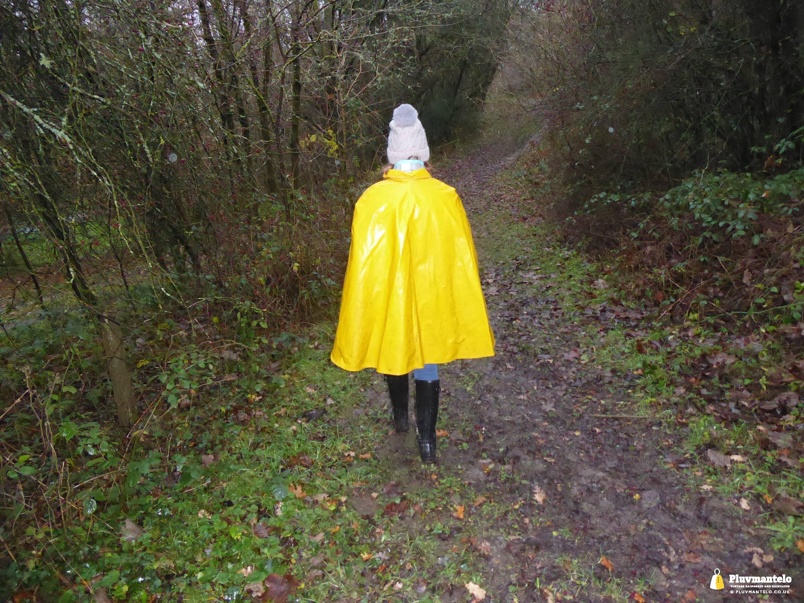 As a watery sun went down on deepest Mercia Clair The Cape Queen brought some much-needed colourful cape cheer to the late afternoon. This time it was with her old – we think 1960s – oilskin cycle cape. The cape has aged well and way better than other oilskin ones in the Pluvmantelo collection and Clair really enjoyed wearing it, especially with a pair of glossy black Hunters and a typically Cape Queen bobble hat. The look’s unsurpassed in our eyes: what do you think?