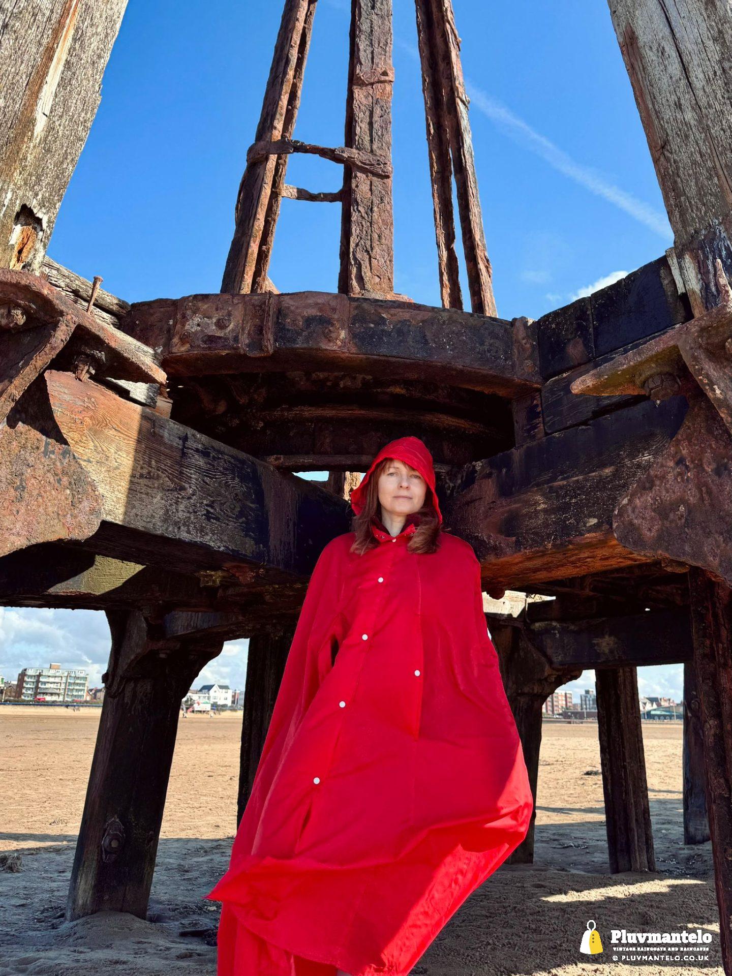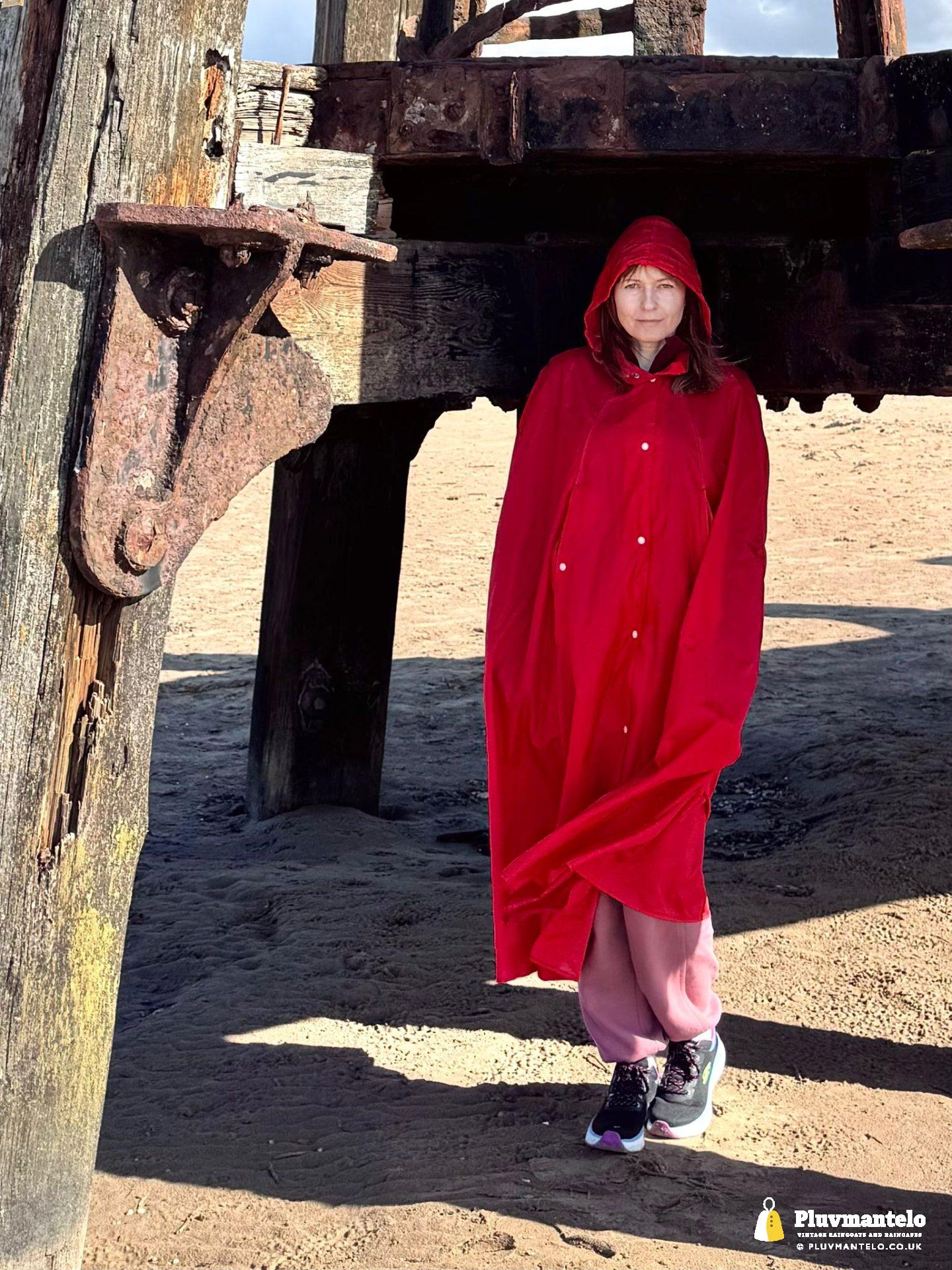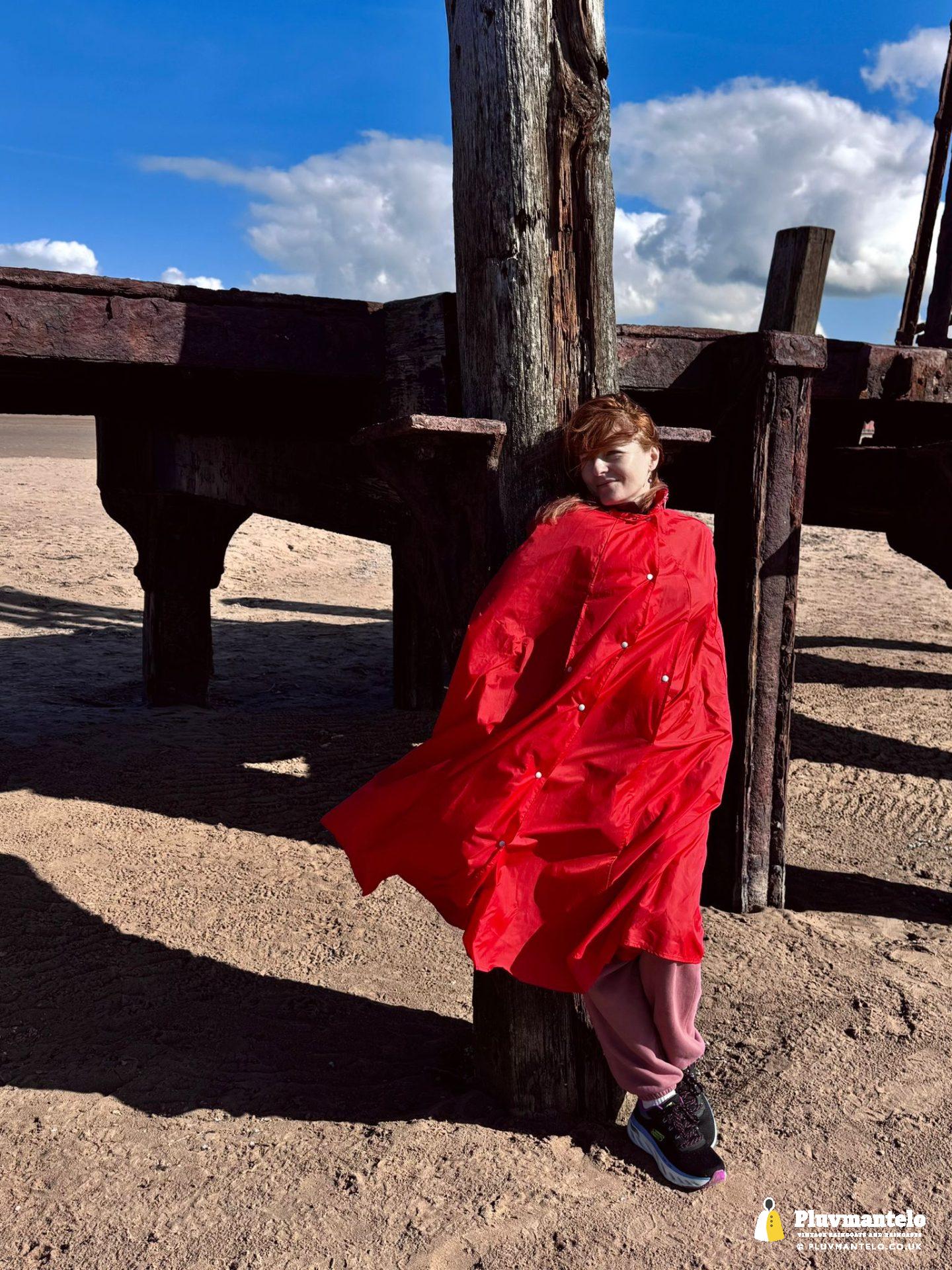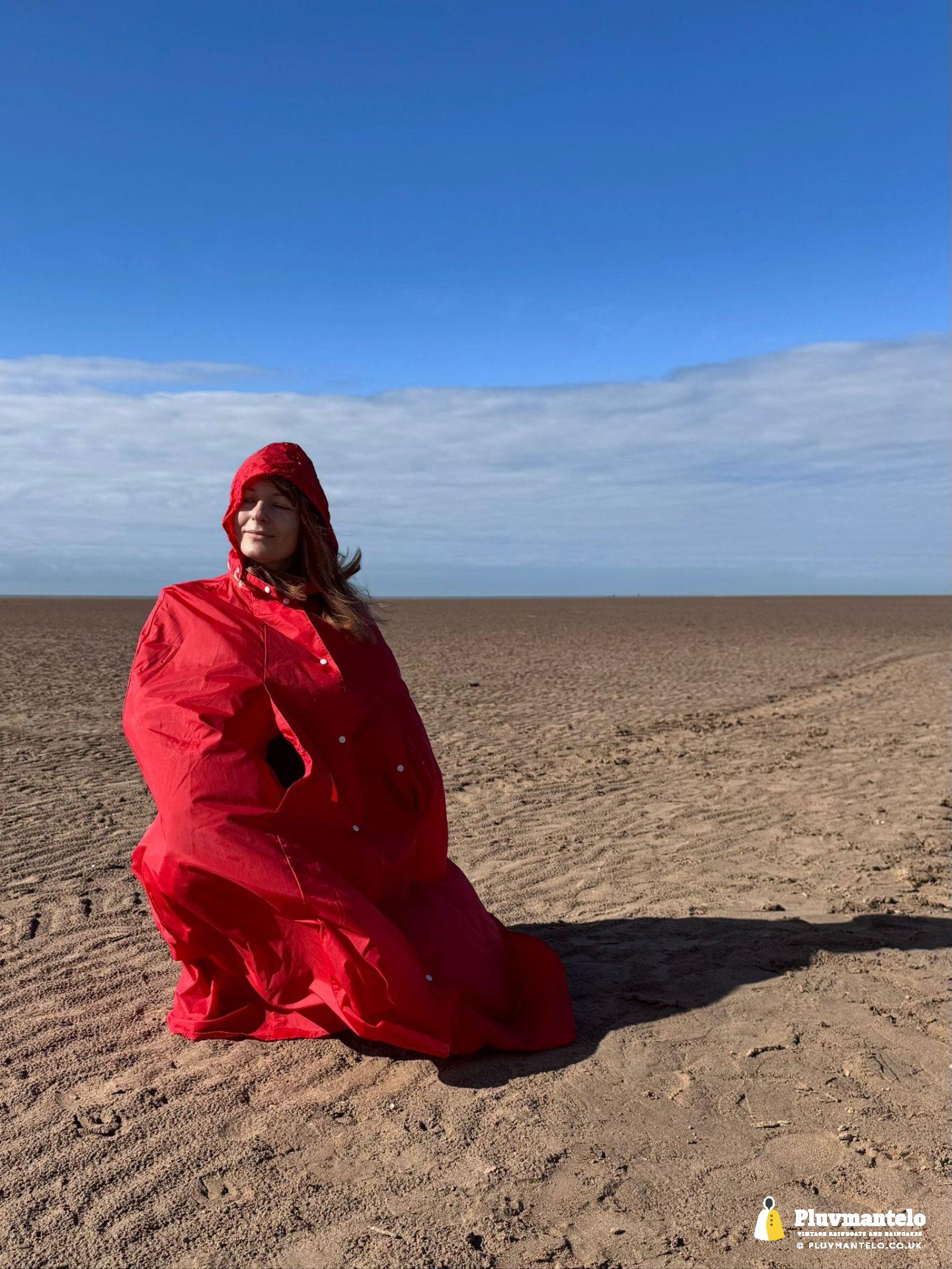 Big blue skies, a stiff breeze – and a raincape. Yes, some people looked but The Cape Queen, cocooned from the breeze was warm and comfortable as she strode out on firm, crisp sand.