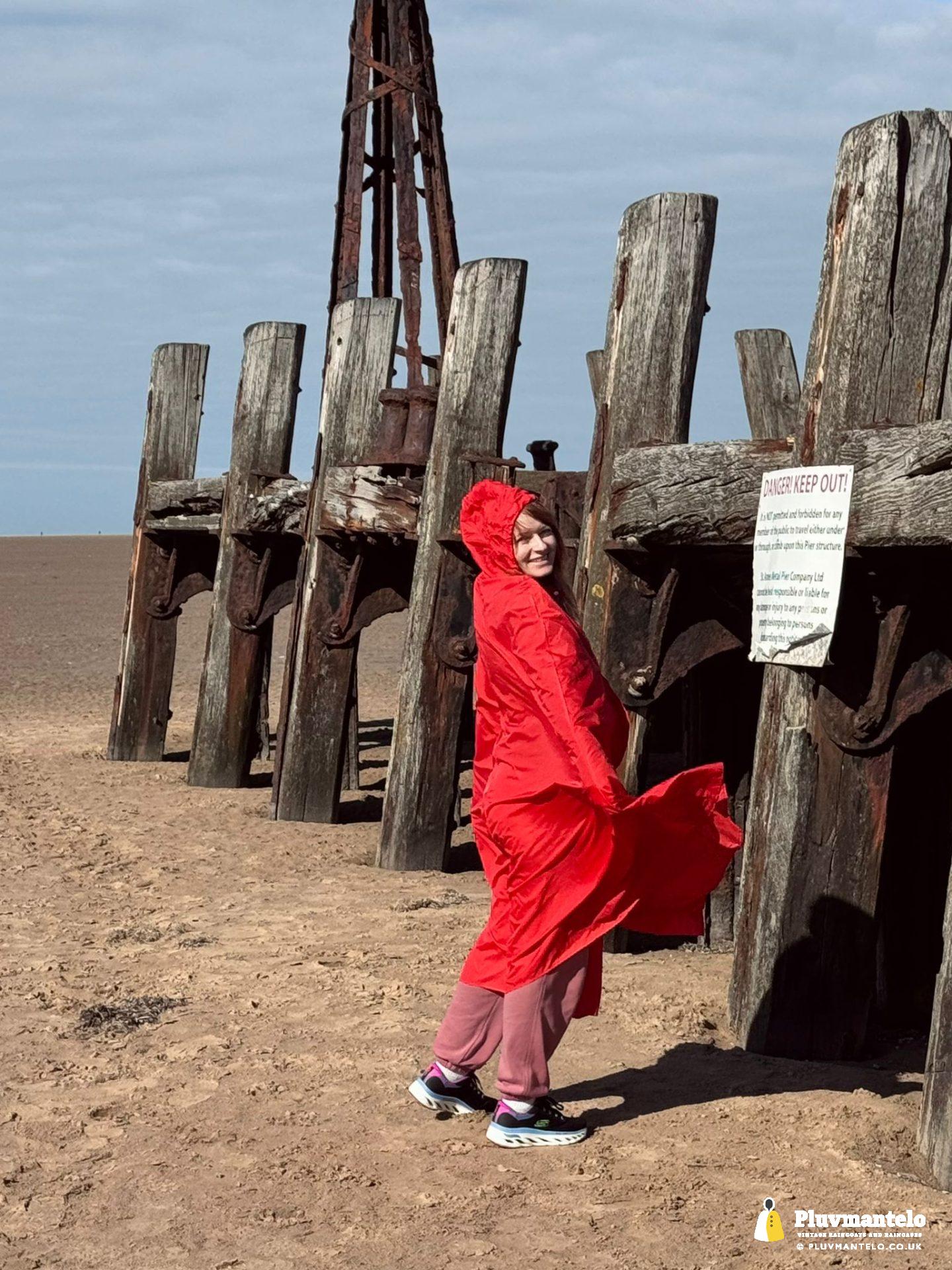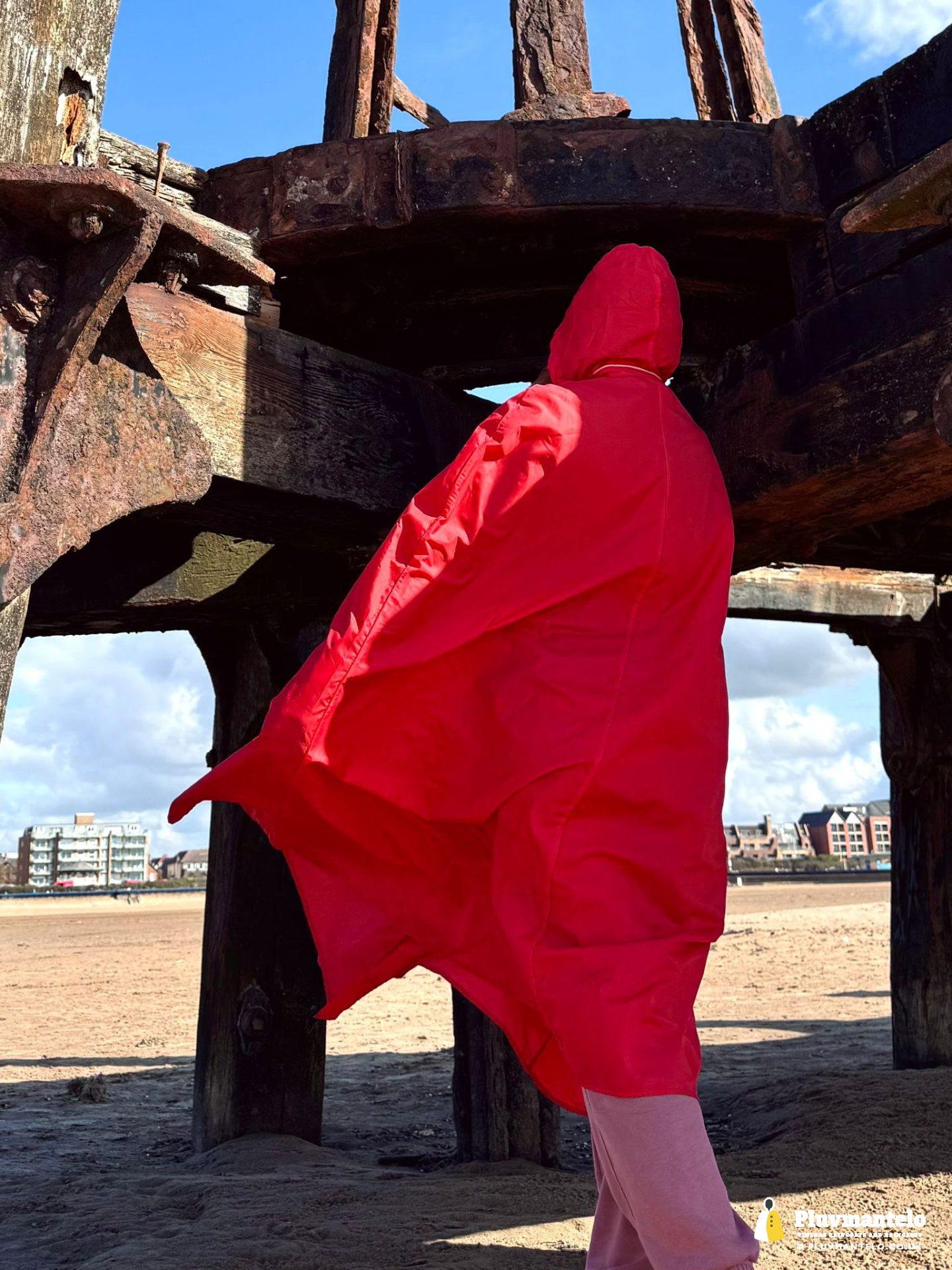 Big blue skies, a stiff breeze – and a raincape. Yes, some people looked but The Cape Queen, cocooned from the breeze was warm and comfortable as she strode out on firm, crisp sand.