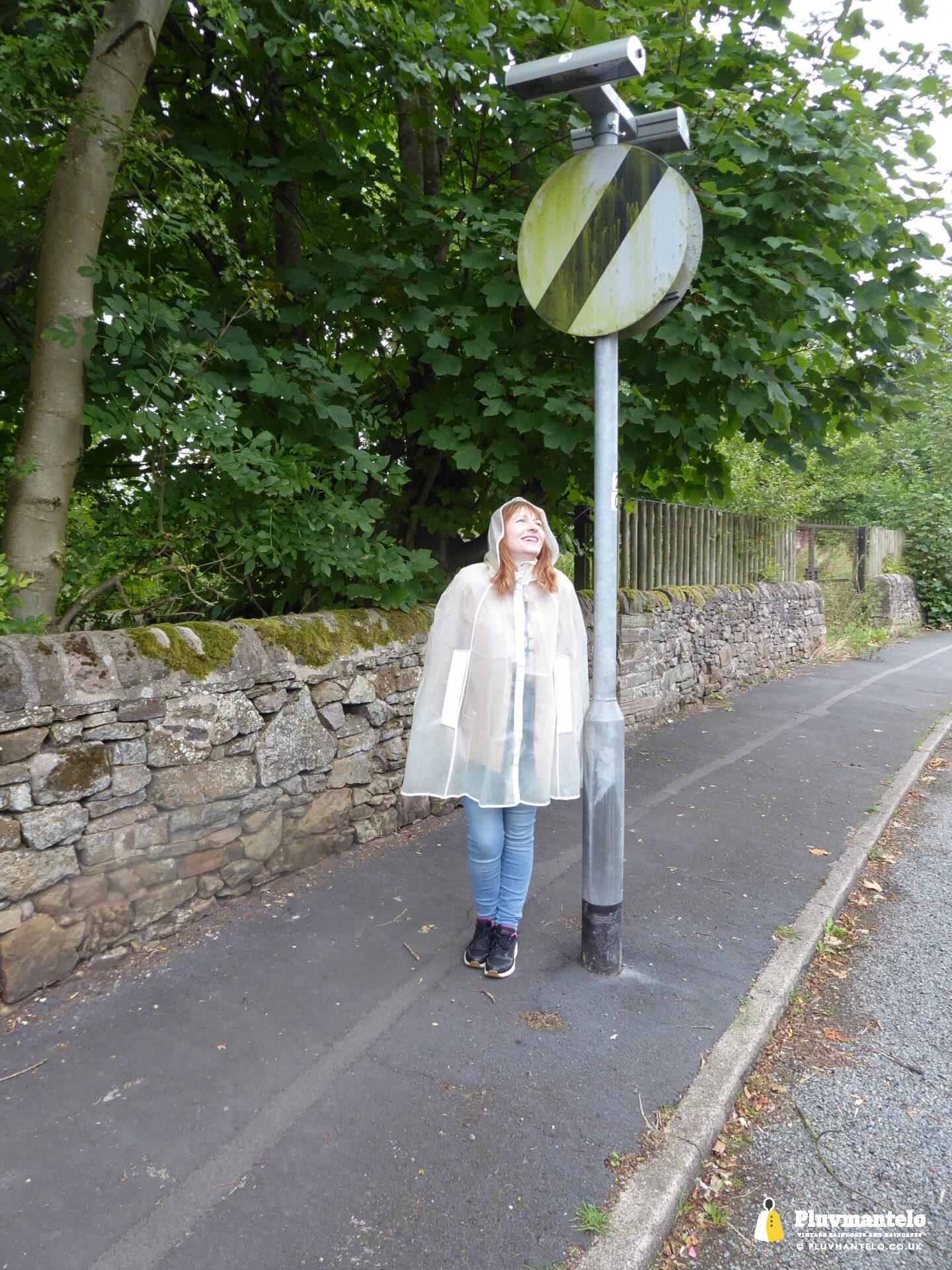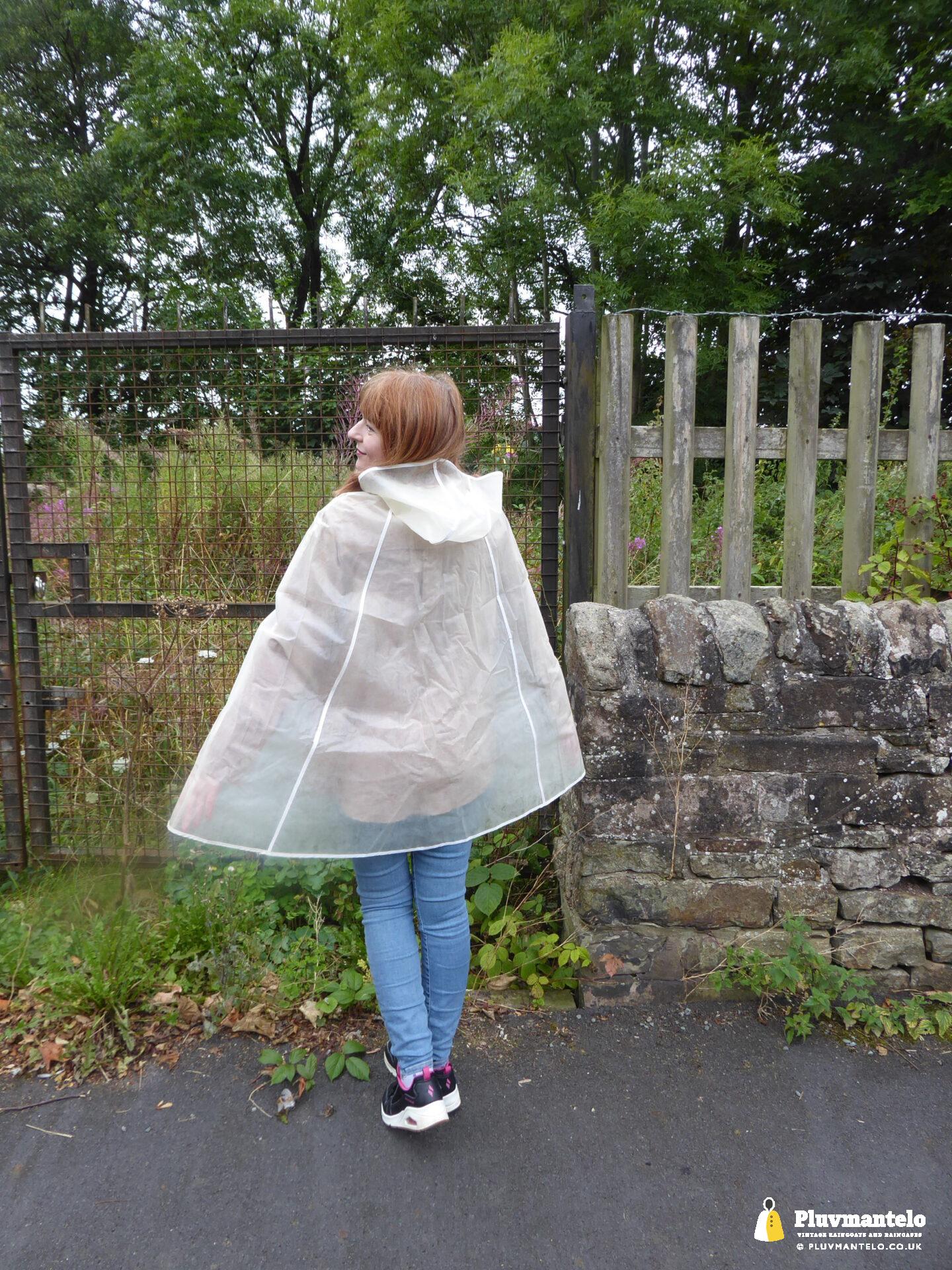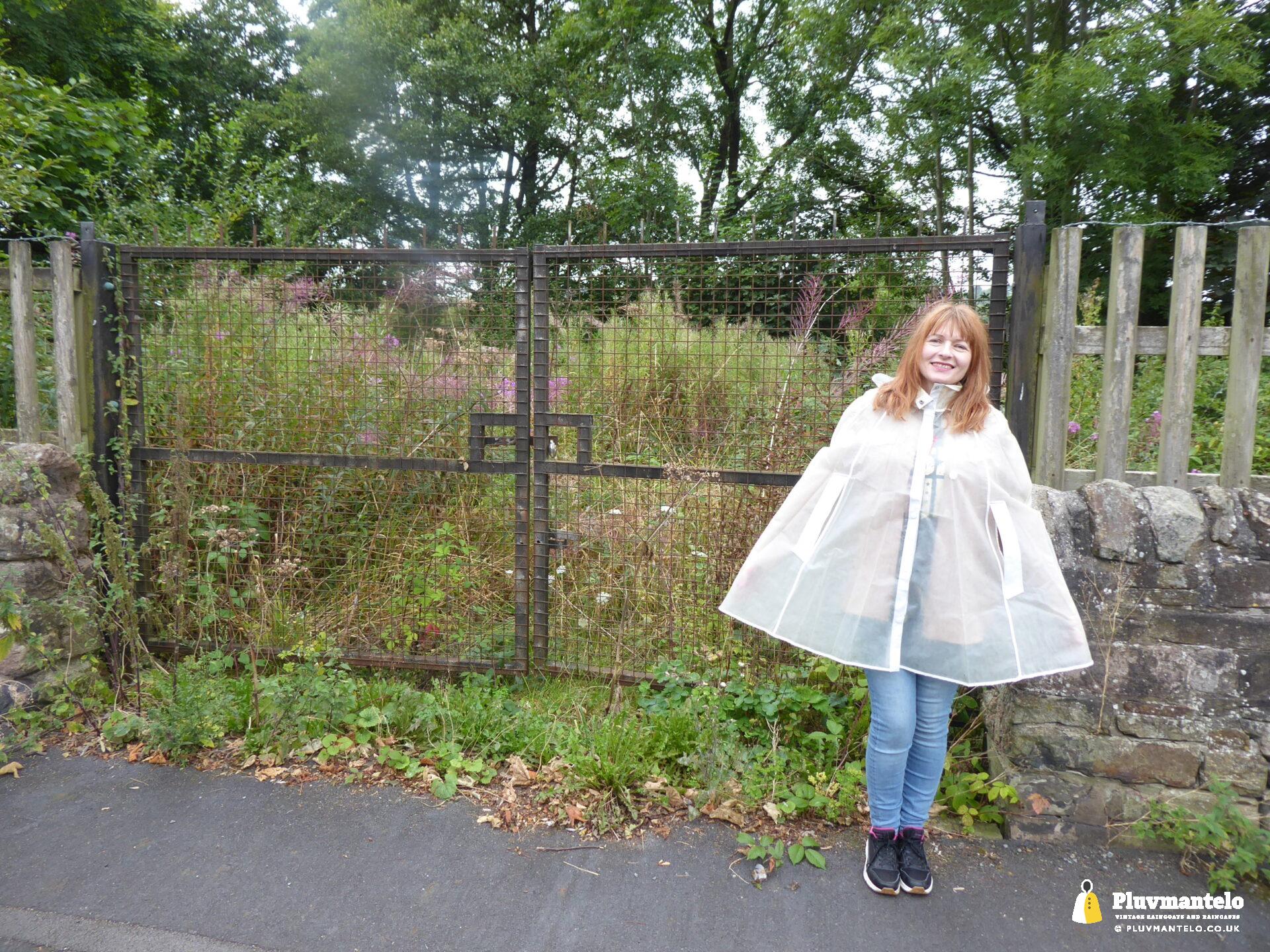 There’s something about a clear cape and Clair The Cape Queen’s been keeping dry during Mercia’s recent rather wet weather. This cape – one that’s ideal for going to the shops in – is quite heavy and it’s not entirely clear, its more ‘foggy’material giving it an almost silver look. And it has a hood: rain? Who cares? The Cape Queen doesn’t!