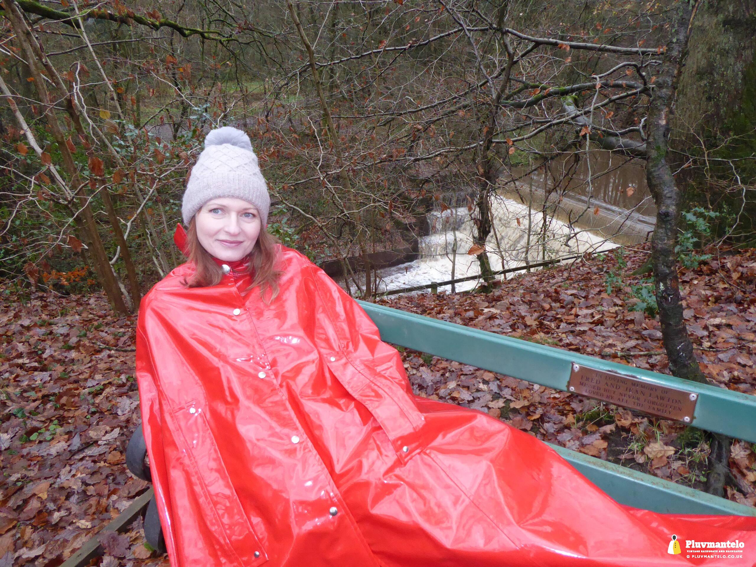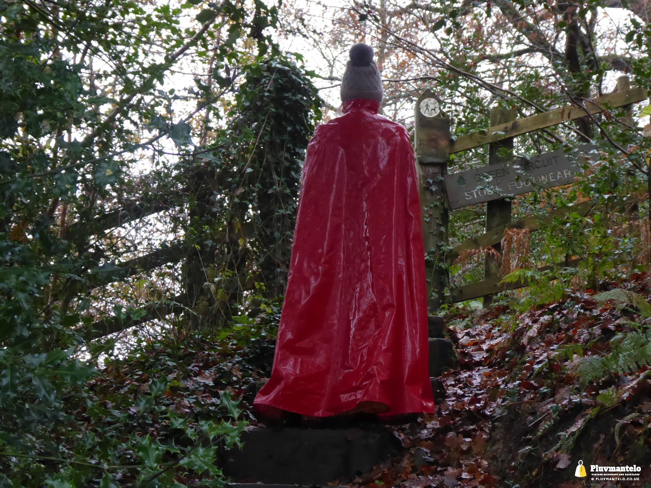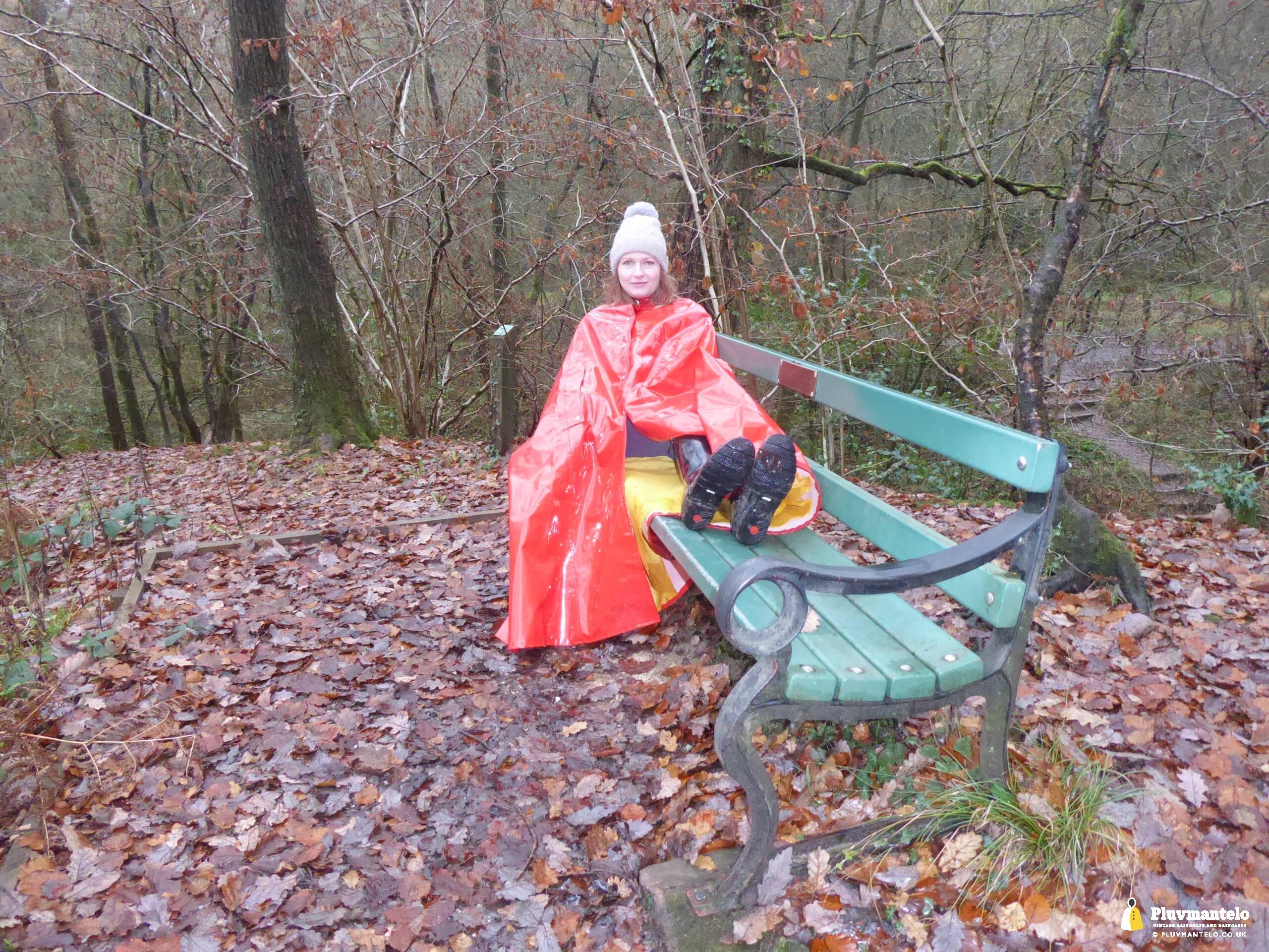 Red and green are truly the most festive of colours so what better than Clair The Cape Queen in a long red cape, sat on a green bench? The voluminous heavy PVC cape was a delight for Clair, who soon settled down on a bench to take in the view as the sun set.