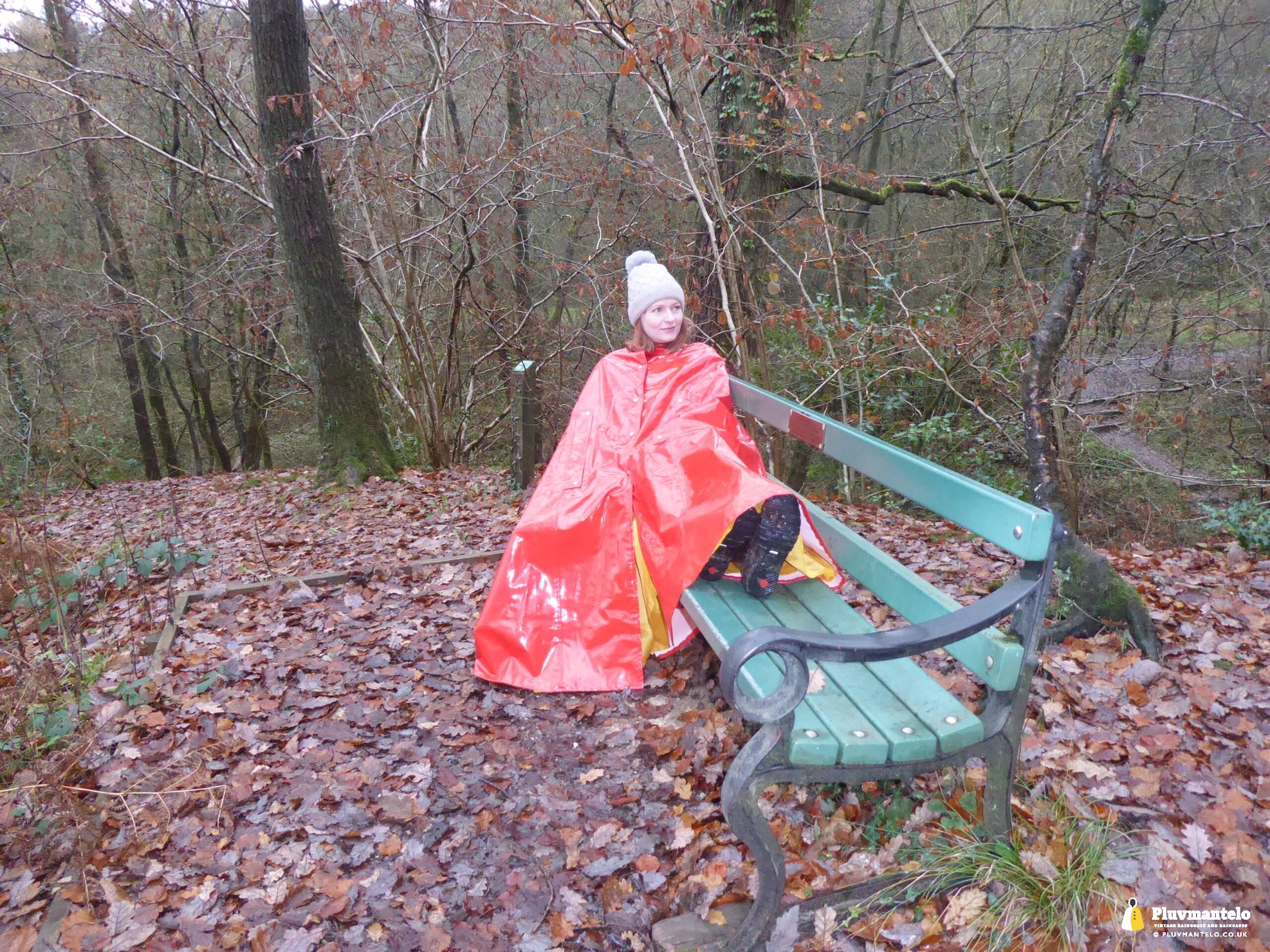 Red and green are truly the most festive of colours so what better than Clair The Cape Queen in a long red cape, sat on a green bench? The voluminous heavy PVC cape was a delight for Clair, who soon settled down on a bench to take in the view as the sun set.