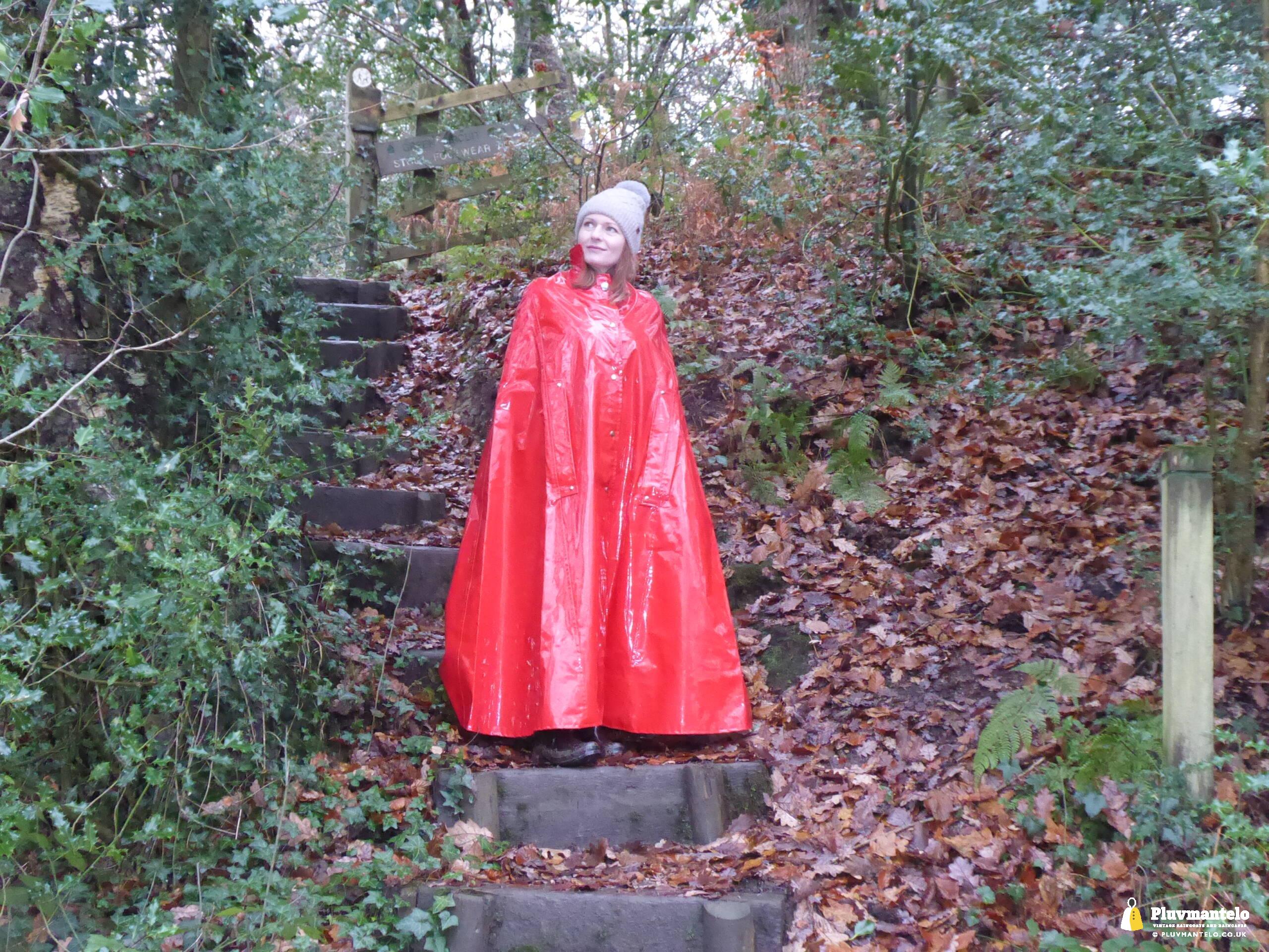 Dear Clair, the Cape Queen. You have a beautifull red and long cape. I love it. It’s splendid. You are merveillous when you wear it. Personnaly, I have about 7 or 8 capes or pelerine. Thèse which I prefere are a blue vinyl, different long transparent PVC (the same as you), a german NVA military (you have the same – color and intérior) and when it’s fresh as thèse season a splendid long cape of Scout (its also name « Chasseur alpin cape »). I like frequently wear these in town too.