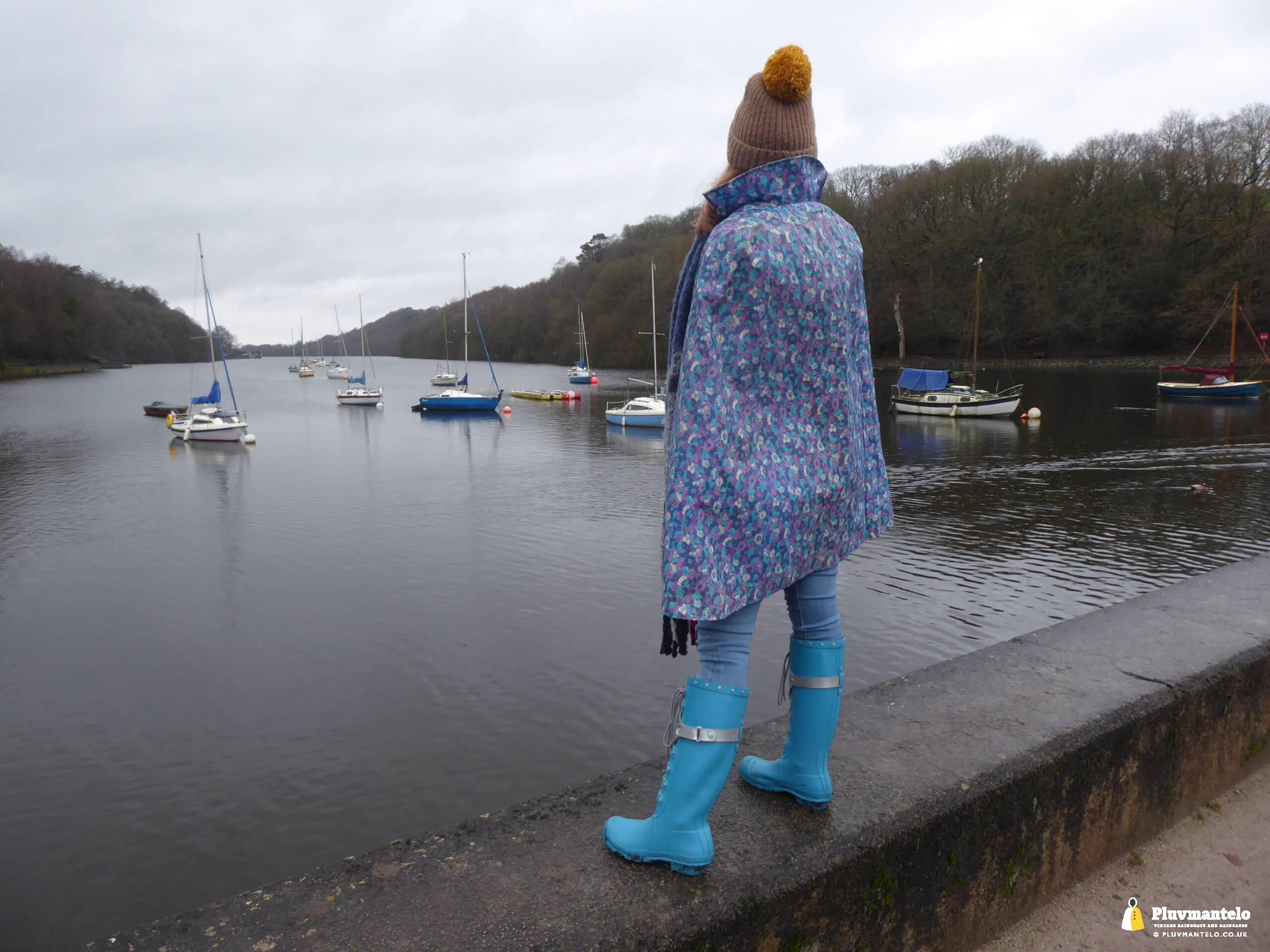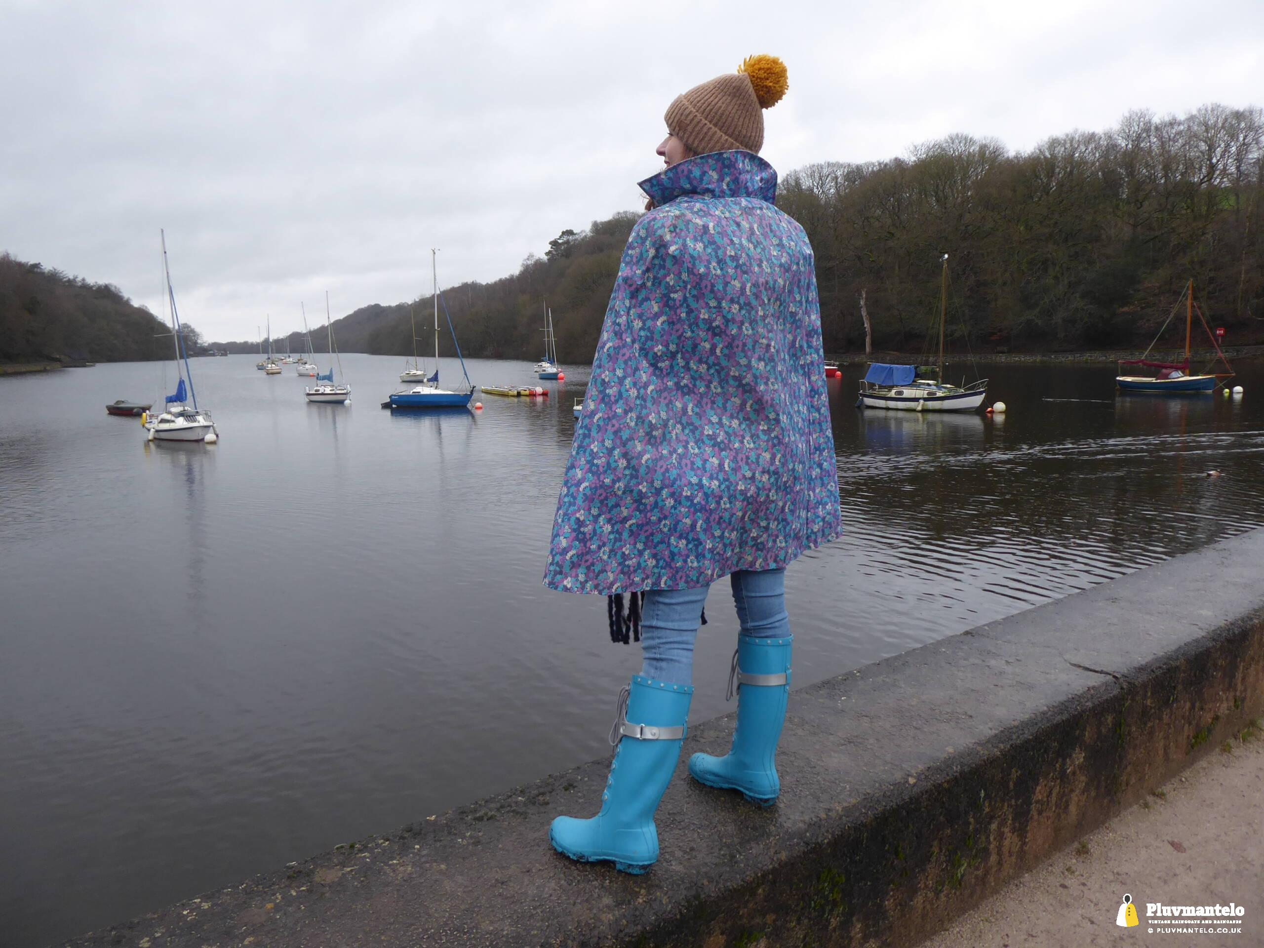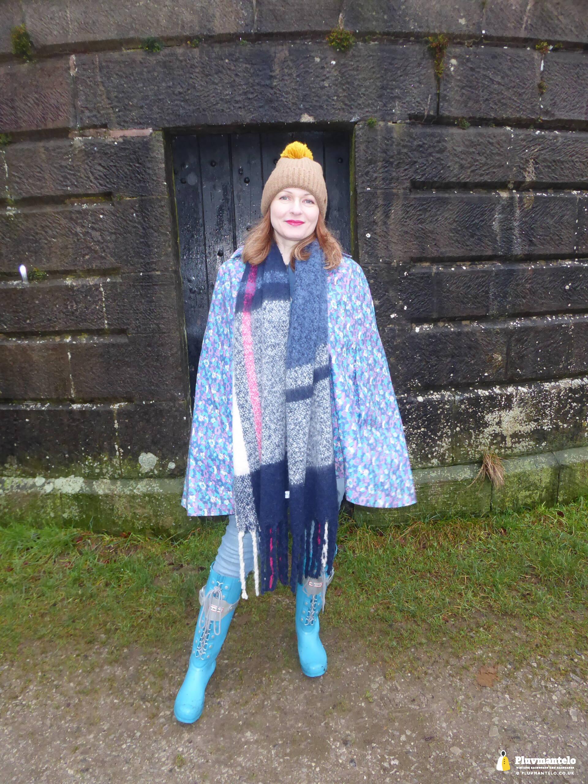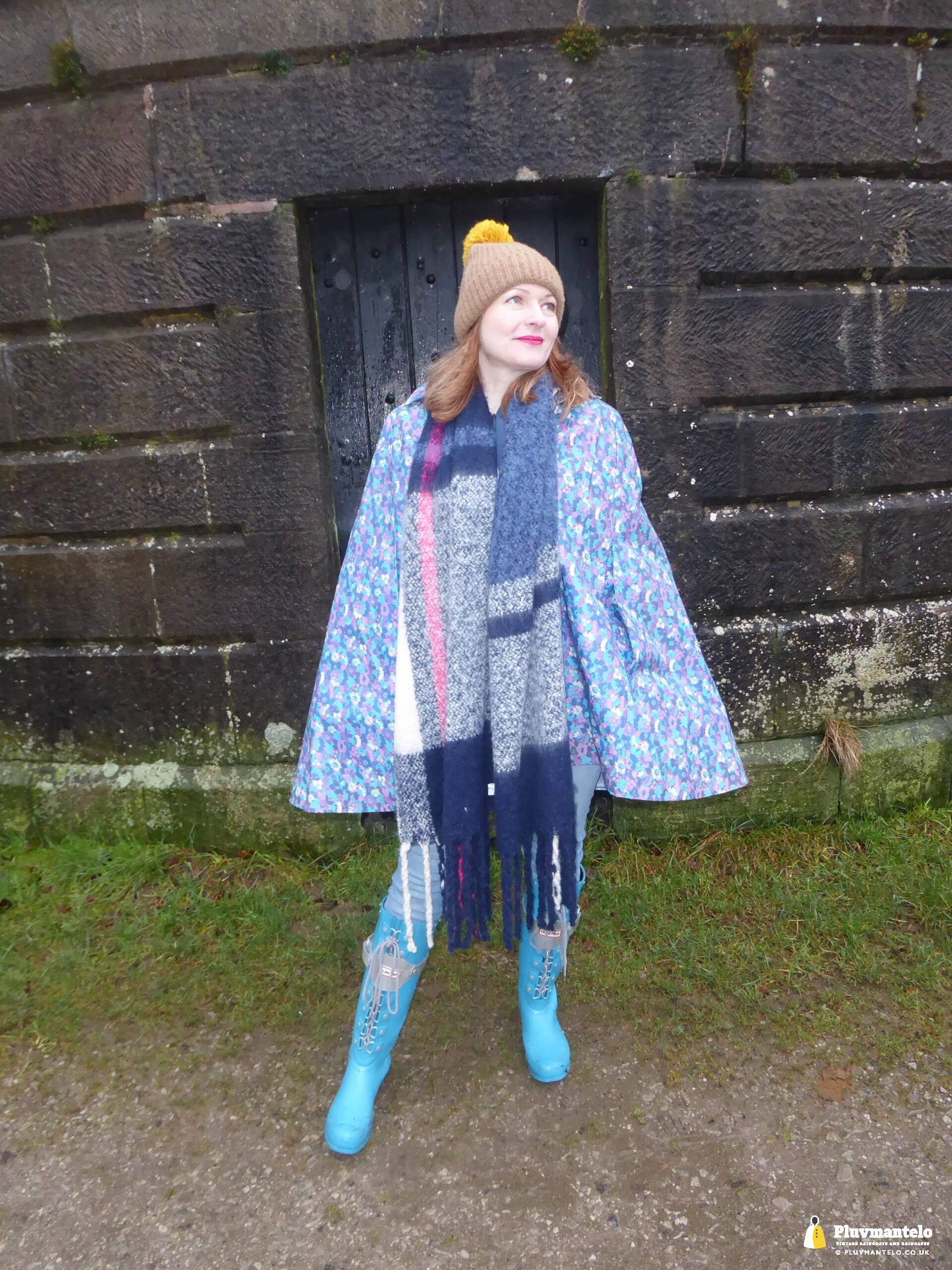 Clair The Cape Queen’s keeping the retro-raincape vibe alive and well, as this shorter floral-print number proves. Again out on a dull day that marked the end of 2023, suddenly we were back to 1973, give or take a couple of years. But unlike some of the single-hue capes The Cape Queen’s been wearing, this time she went the patterned route, with something clearly eye-catching. While the colours are slightly muted the cape received plenty of attention, and rightly so. Fortunately we didn’t encounter any Austin Allegros or beige bell-bottoms: The Cape Queen’s cape showed that there was plenty to like from five decades ago.