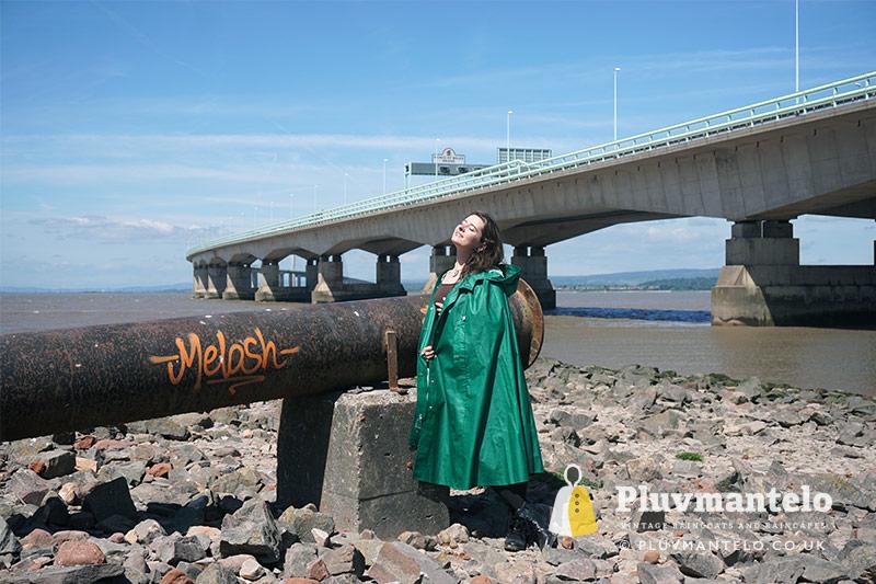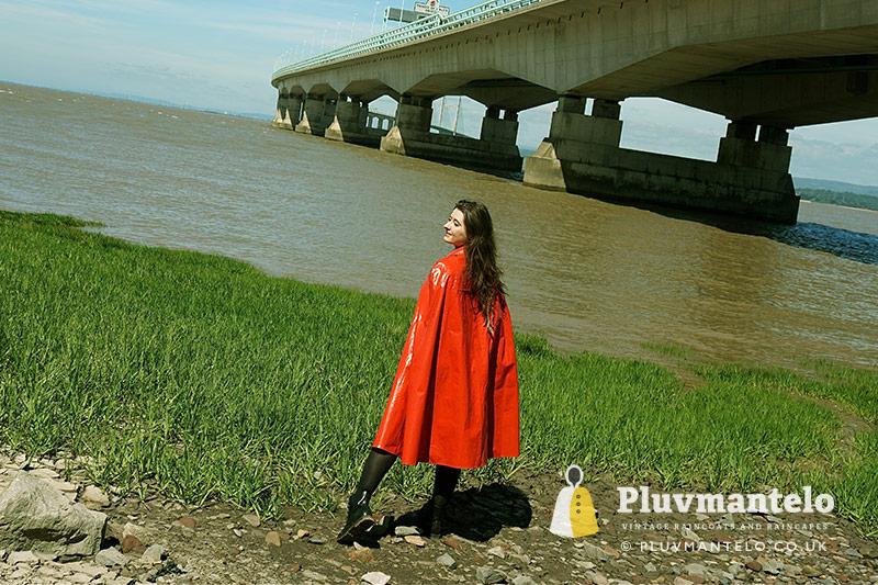 UW began the shoot in a red Bormax cape, moving onto a fine-condition yellow Stormcheetah and then a green Rukka number – always popular in the Finnish company’s mid-green. As the midday sun rose above the Severn Estuary she changed to a no-name long clear plastic cape and a black rubber one which again we don’t know anything about because it has no label. It’s clearly older and, to our eyes at least, probably from the 1960s.