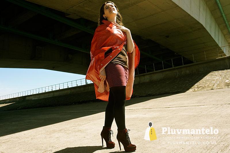 Decent sunshine might not seem compatible with a raincape but as model UW showed they can look good, irrespective of the sky’s colour and whatever is (or isn’t) falling from it.