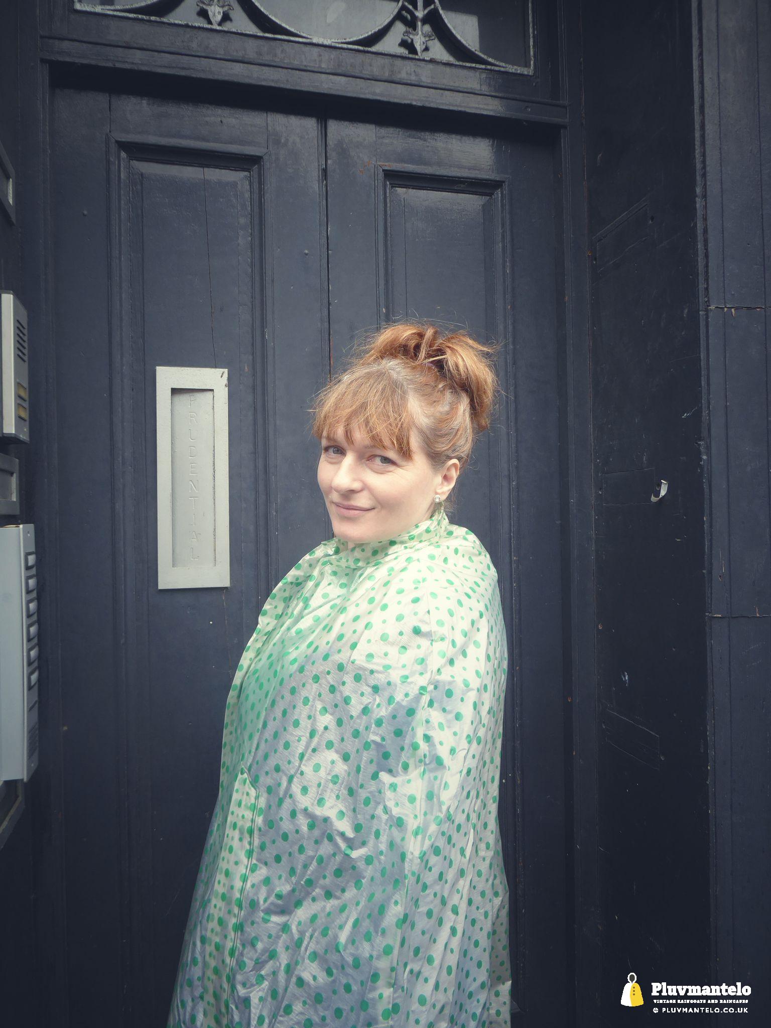 The weather’s been bad for quite some time in Clair The Cape Queen’s part of Mercia so different days mean different capes. Recently Clair’s been wearing her 1970s polka dot ones – red dots, green dots or a slightly different cape with smaller black dots. But whatever the colour of the dots these capes keep Clair dry and that’s the most important thing.