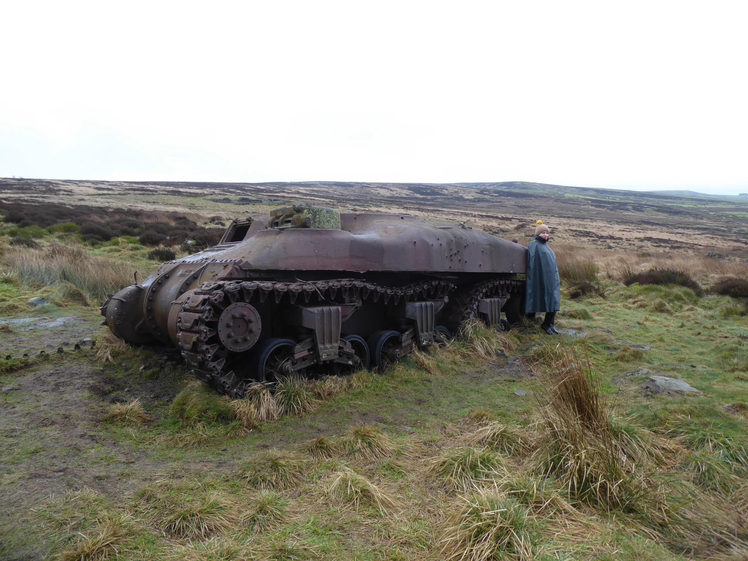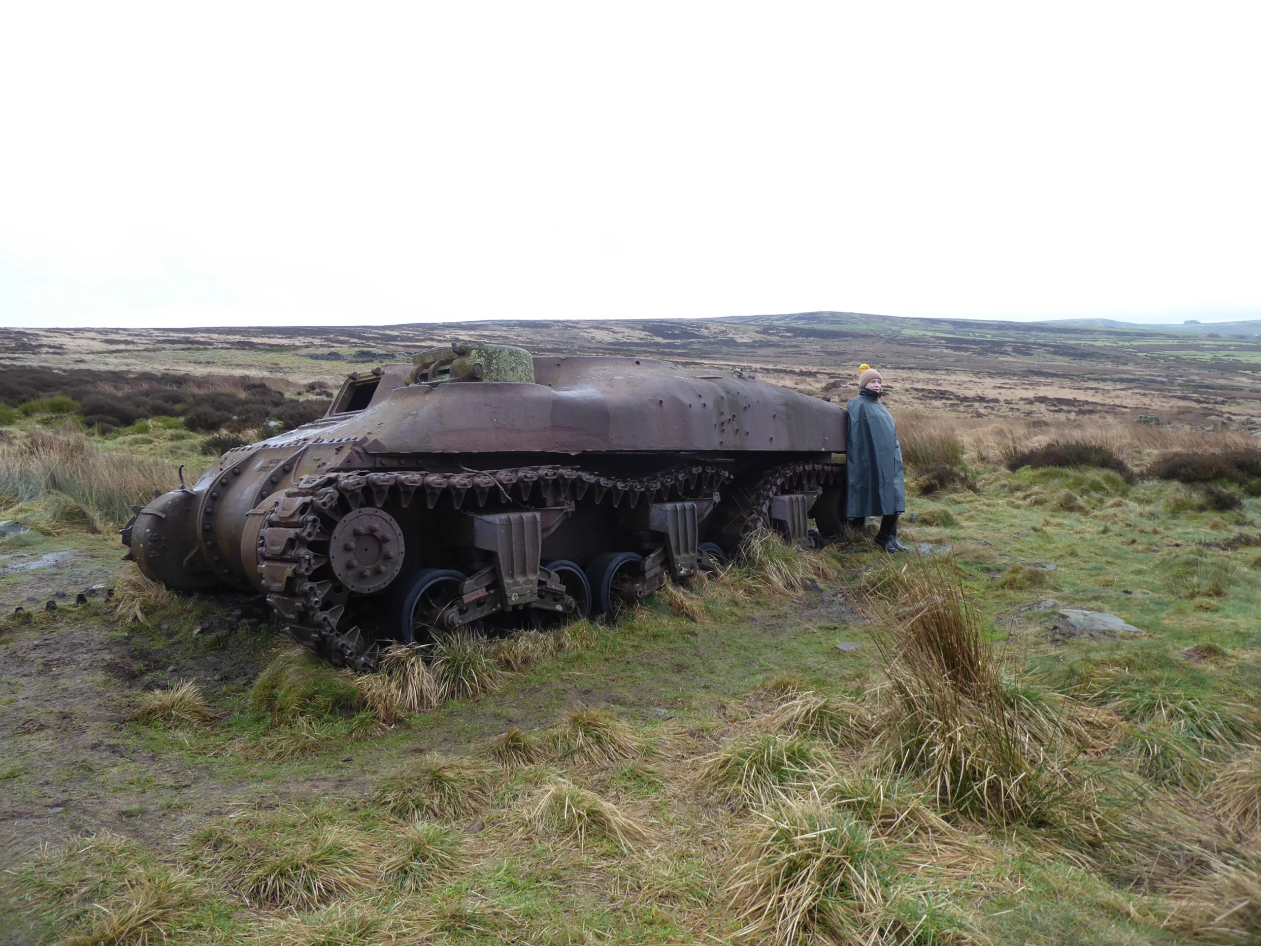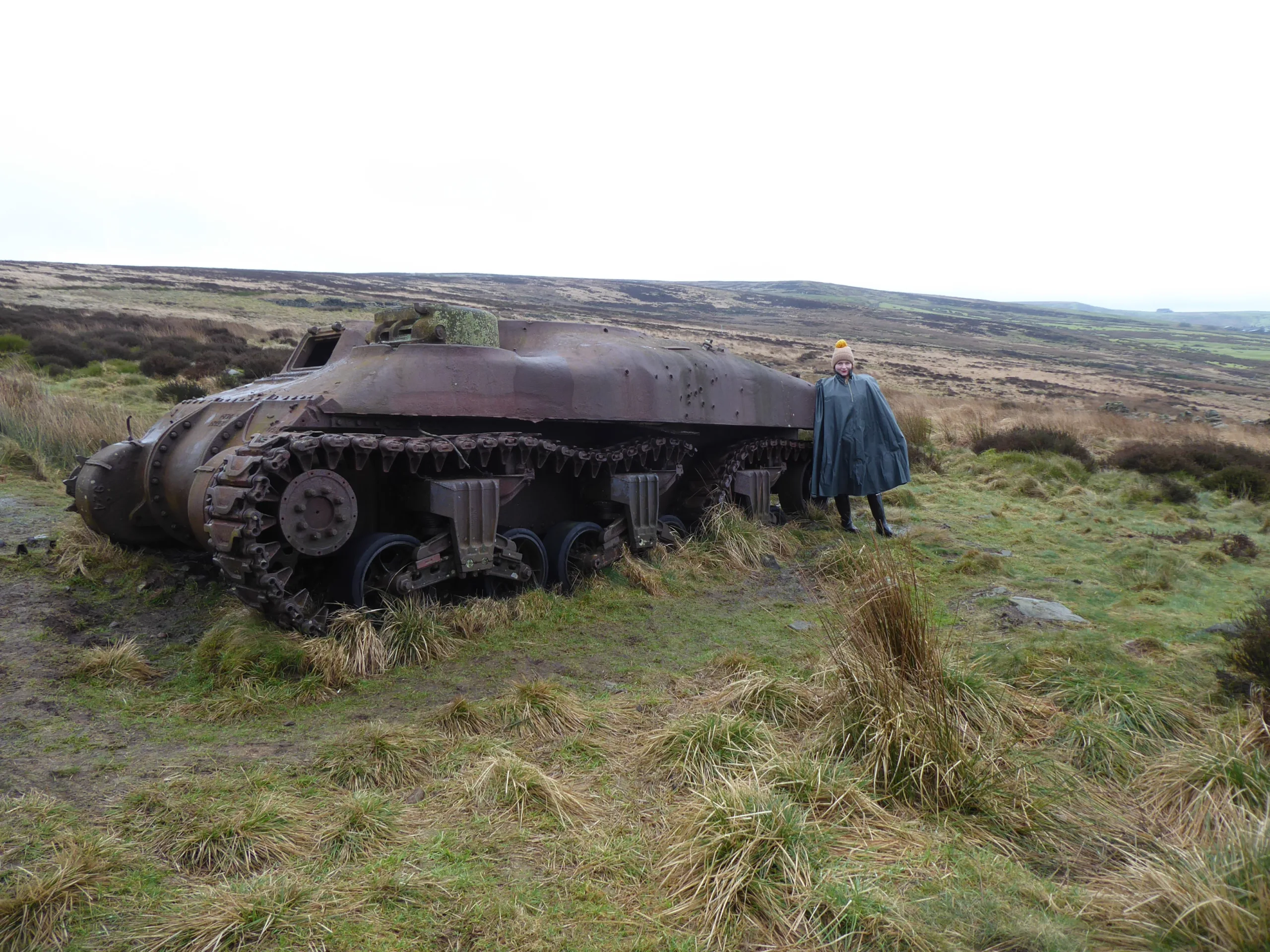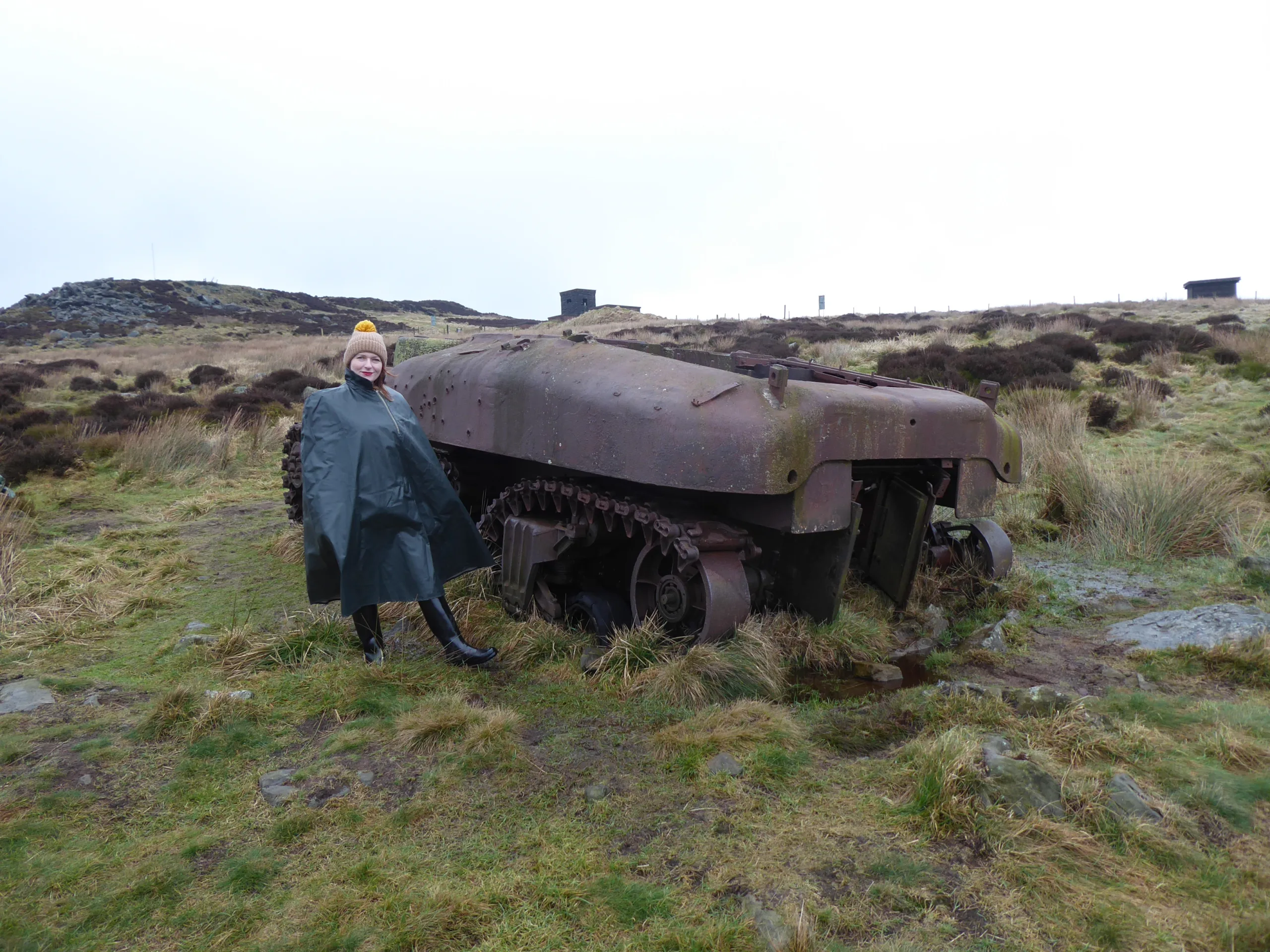 In 1978 The Stranglers released a three-track single, ‘Walk On By’/‘Tank’/‘Old Codger’, the new wave seven-inch peaking at number 21. Whether Clair The Cape Queen was thinking of Surrey’s finest we don’t know, but she showed us the abandoned Sherman tank she’d discovered in the wild moors of Mercia. The voluminous rubber military cape she wore was entirely appropriate, not only because of the tank but also the wild, unforgiving weather she had to put up with. But a large cape such as this one meant The Cape Queen was dry and warm. So… kool and practical and lookin’ good, mixed with some military history: The Cape Queen nailed it.