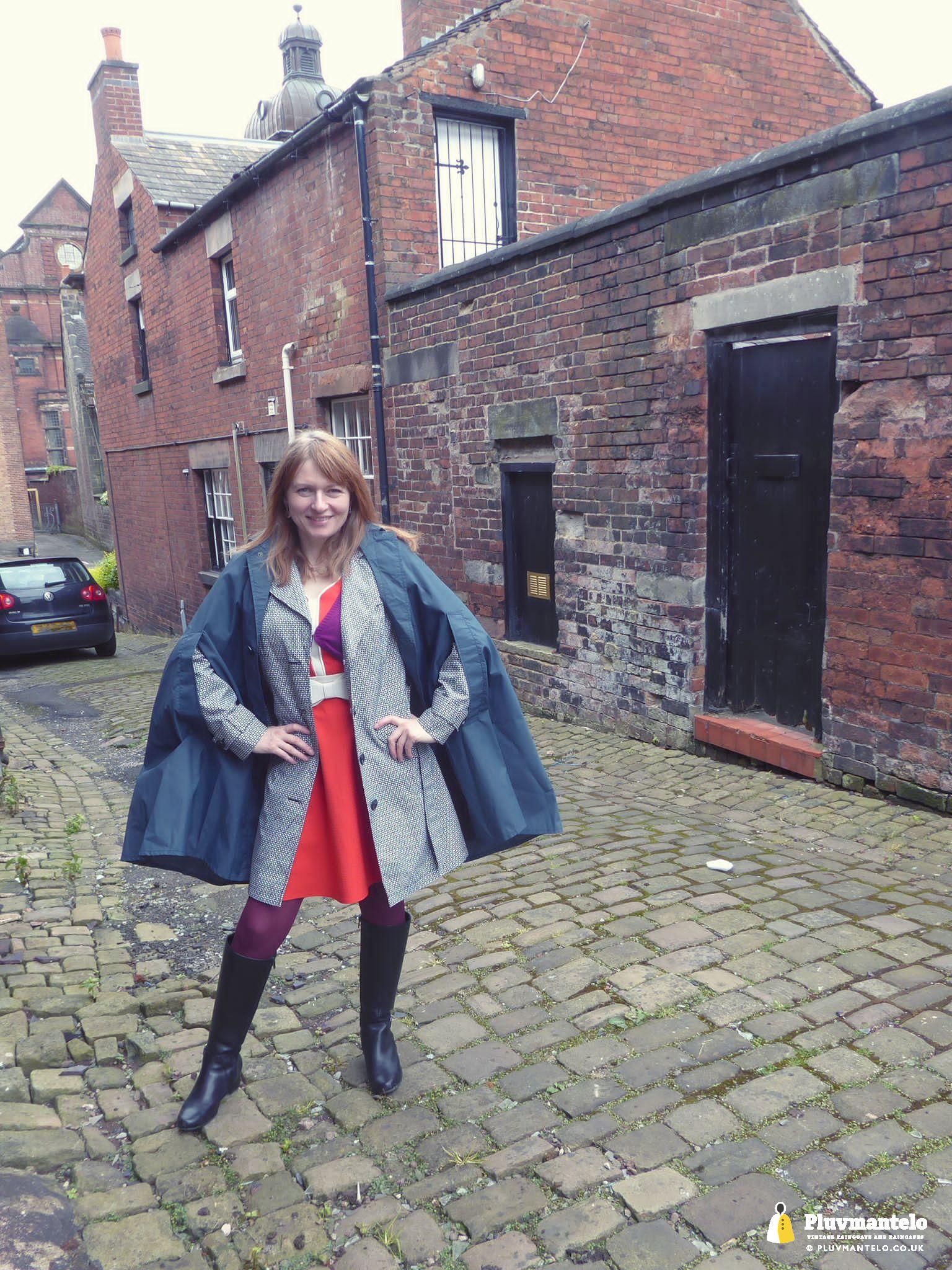 Here’s Clair in an American, 1960s nylon number which looks the part and it certainly kept her dry as the clouds above that part of Mercia decided rain was the order of the day.