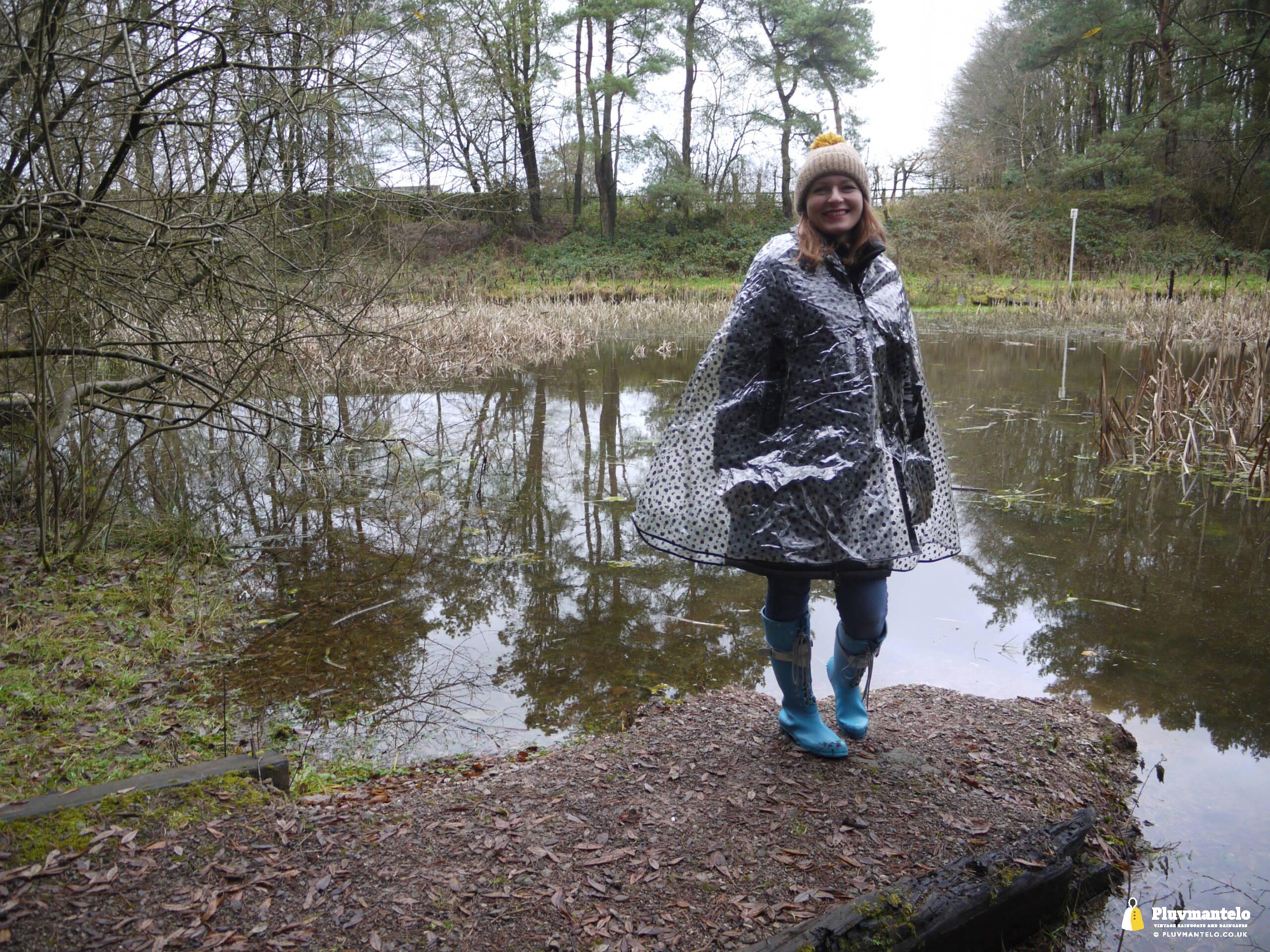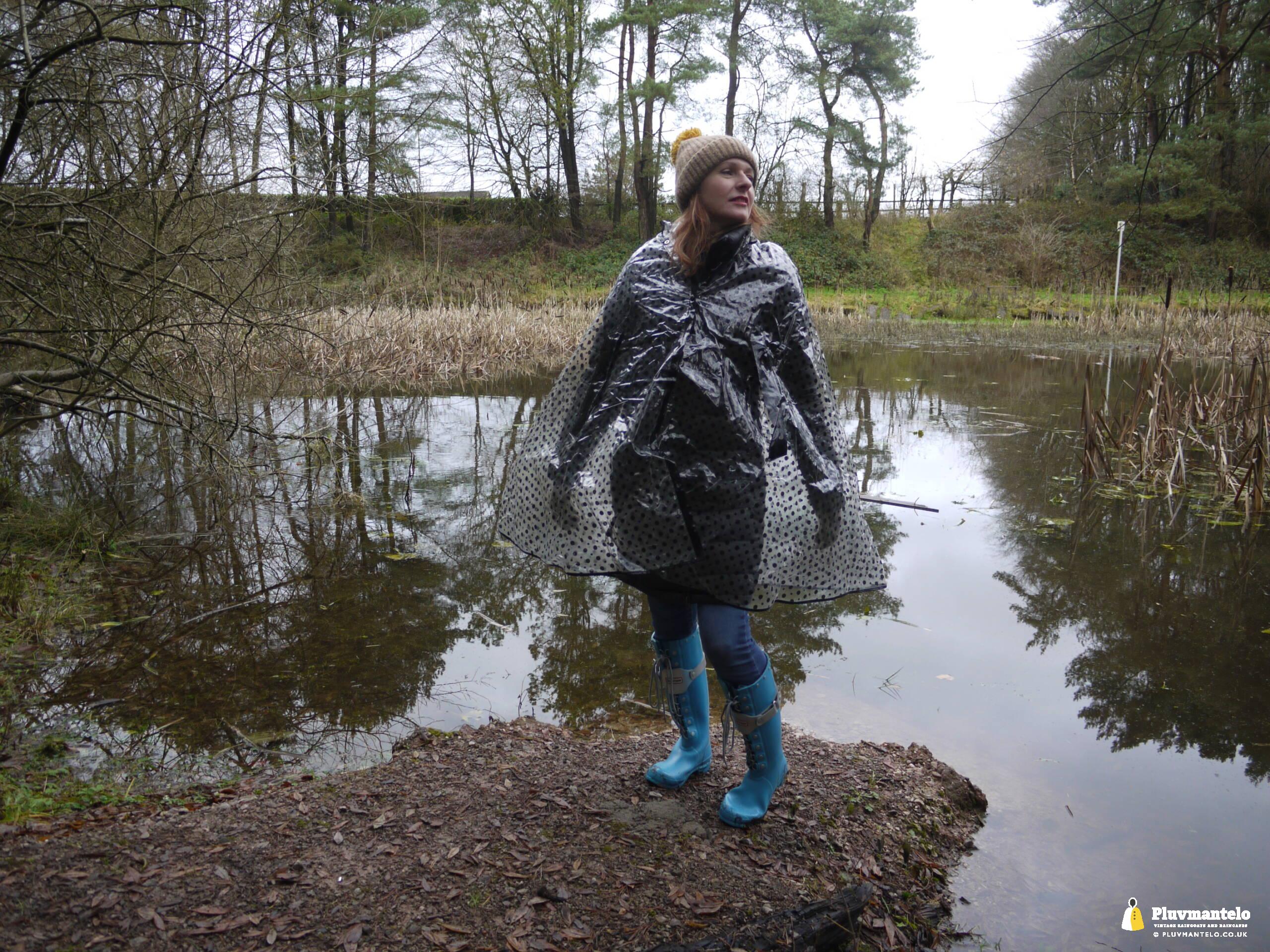 Clair The Cape Queen’s clear spotted cape surely evokes the swingin’ sixties more than any other she wears. The harder, less pliant PVC gives it a pronounced, less ‘falling’ shape but it’s the clear material with black spots that makes it so redolent of an earlier decade. And while we weren’t in Carnaby Street or Portmeirion, and there were no mods or suedeheads in sight, Clair’s cape gave us a slip back in time for an hour or so.