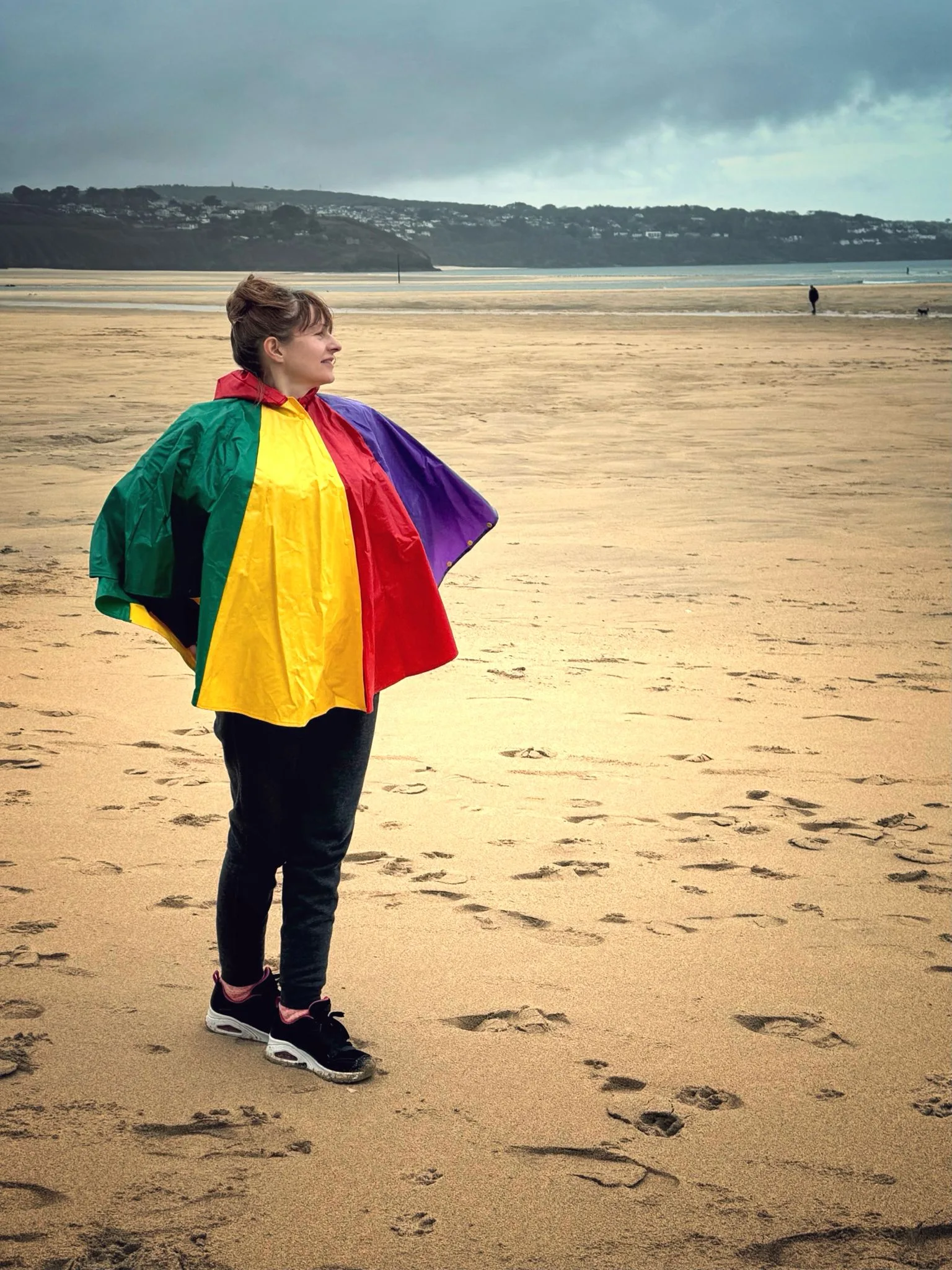 More holiday snaps courtesy of The Cape Queen, who was once again afflicted with weather of a kind best described as grim. Nevertheless, a determined Clair brought much colour to the sand-bound proceedings courtesy of the Carousel Cape, whose head-turning air pleased West Mercia beachgoers no end.