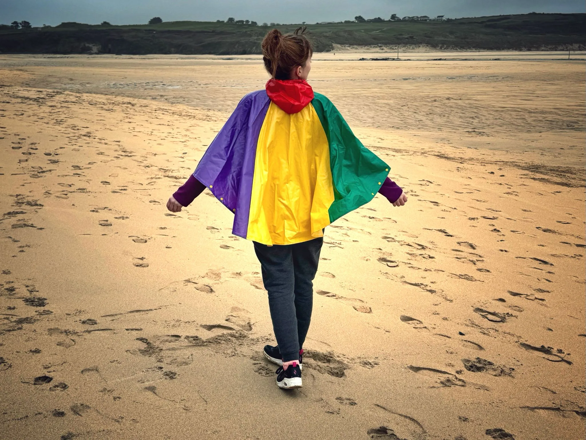 More holiday snaps courtesy of The Cape Queen, who was once again afflicted with weather of a kind best described as grim. Nevertheless, a determined Clair brought much colour to the sand-bound proceedings courtesy of the Carousel Cape, whose head-turning air pleased West Mercia beachgoers no end.