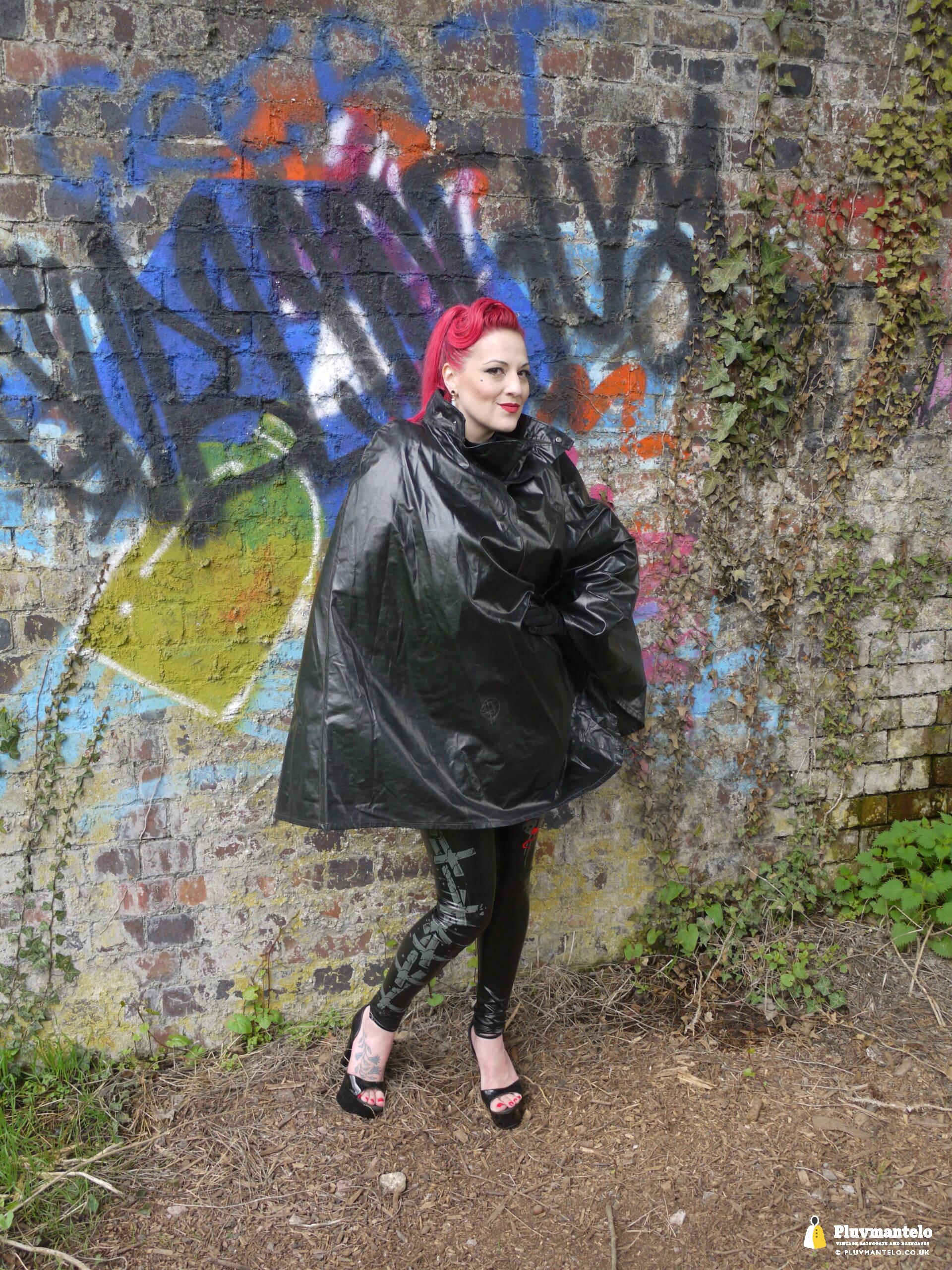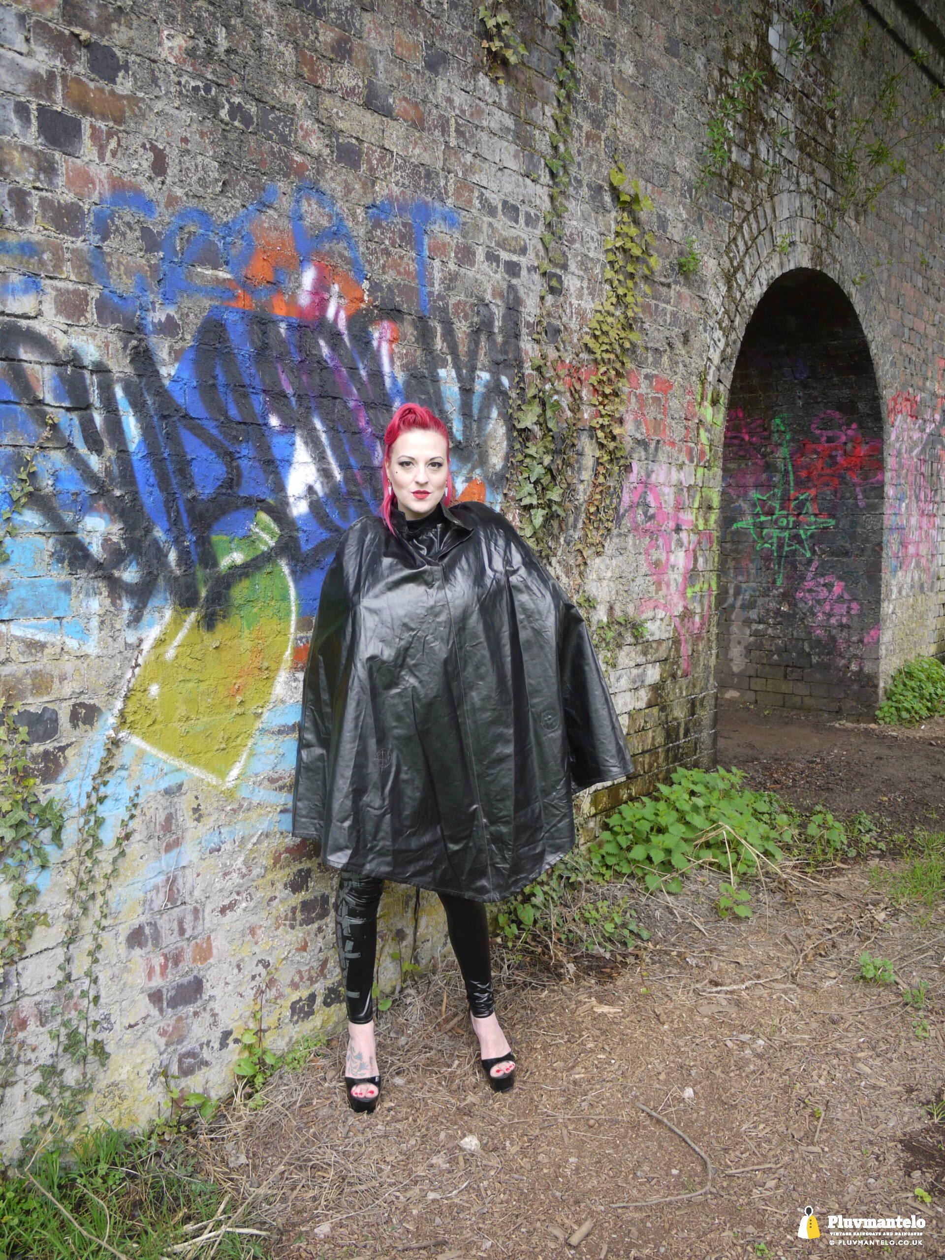 We’re more than pleased to welcome The Capeatrix back to the Pluvmantelo pages, and this time she’s caped-up in a 1950s Slickon. It’s one of her favourite capes and we don’t need telling why – it looks superb. There’s certainly something about these older cycling capes that just isn’t found in a modern one, whether it’s the material, the look or the way it hangs, and the Slickon cape is surely one of THE best.