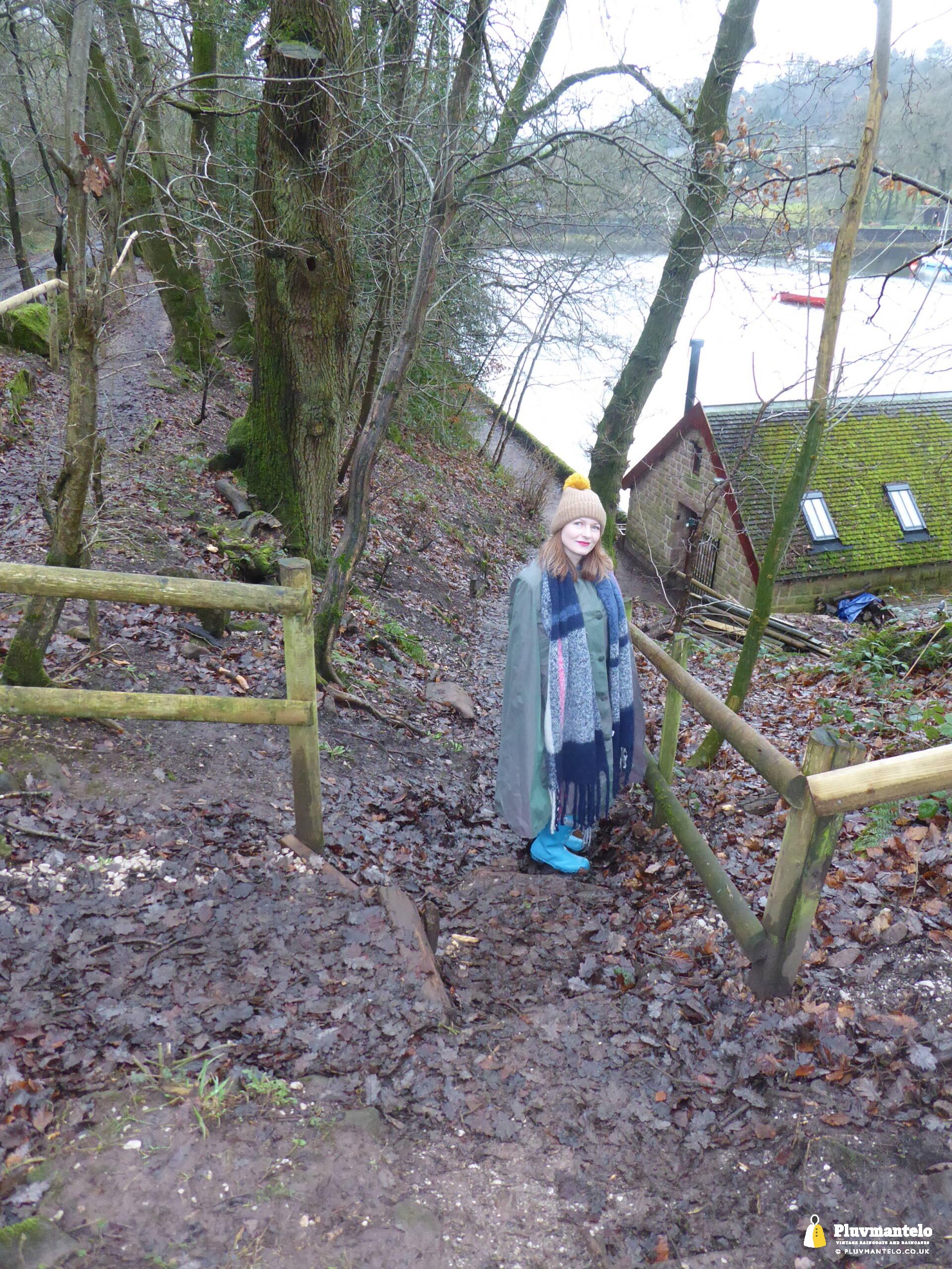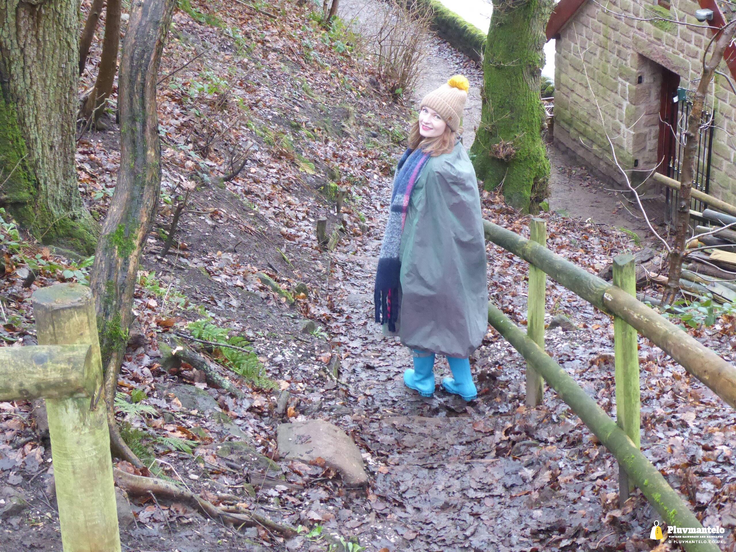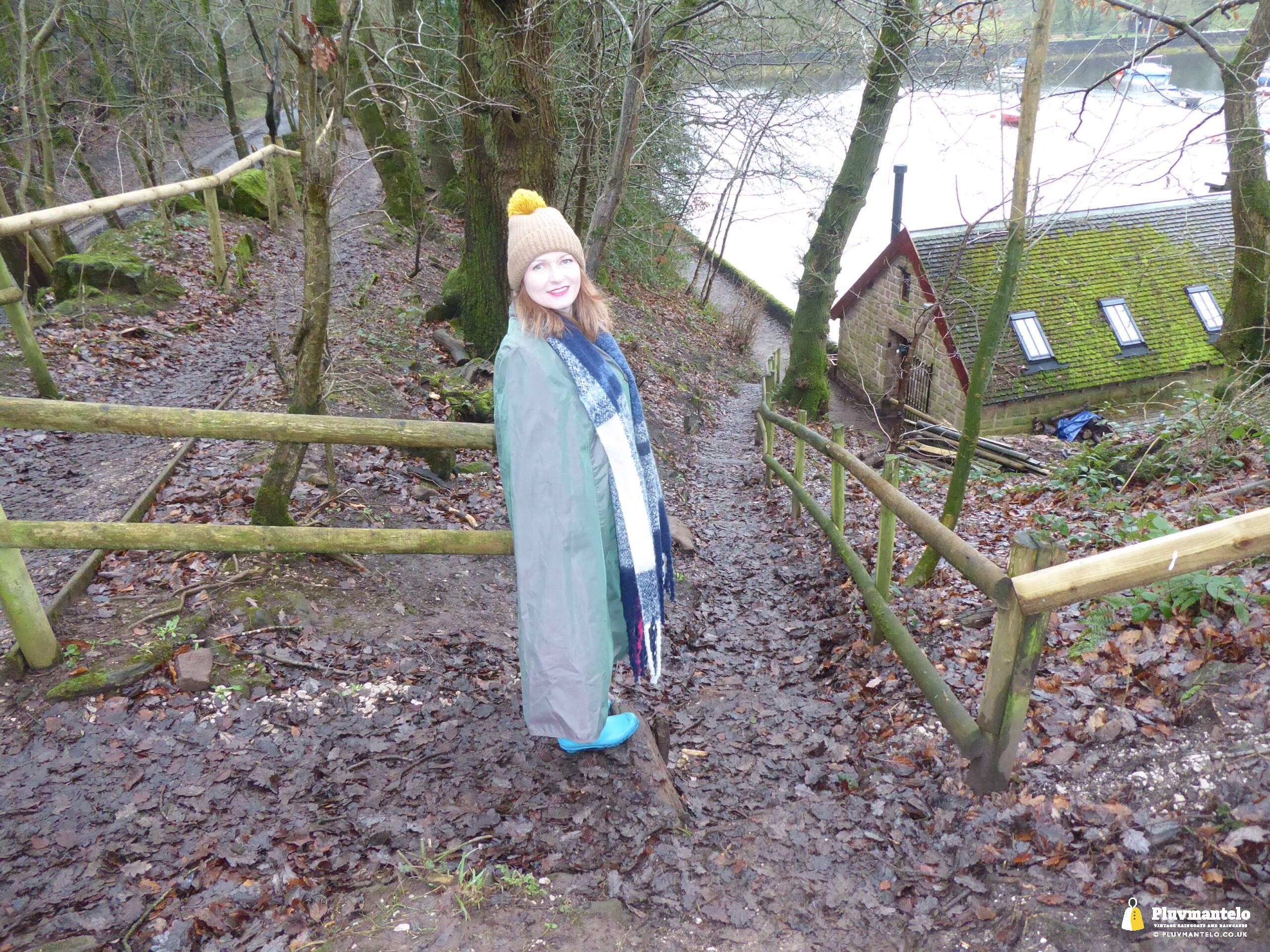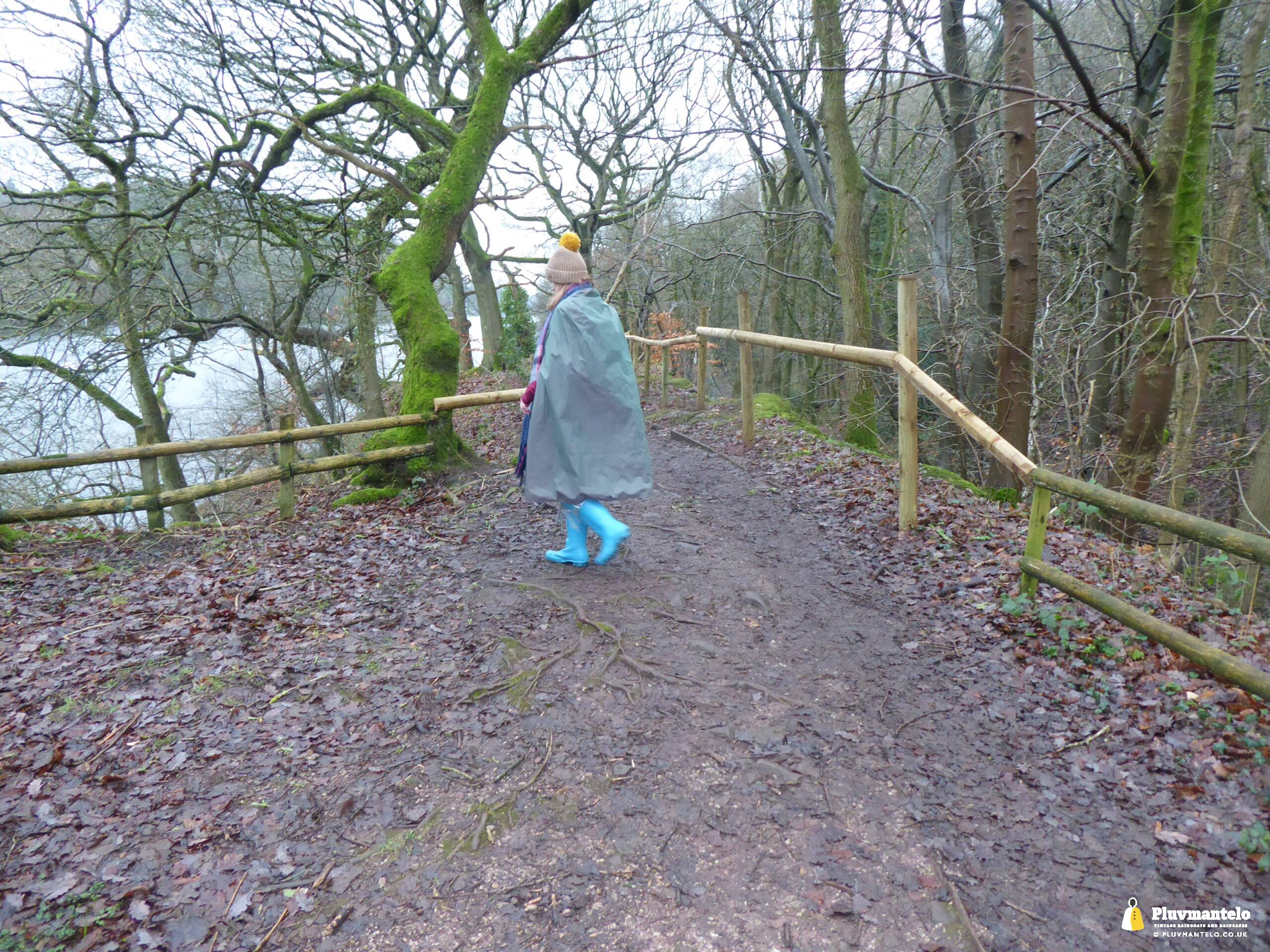 Happy New Year from Pluvmantelo and The Cape Queen gets the new year’s posts off with her 1960s ‘tonic’ cape. Like the suits worn by mods and suede ‘eads in the mid-1960s, Clair’s cape has a two-tone colourway, changing from green to mauve as it catches the light. And even on a seriously dull winter day near a lake deep in Mercia Clair’s cape added some much-needed cheerfulness.