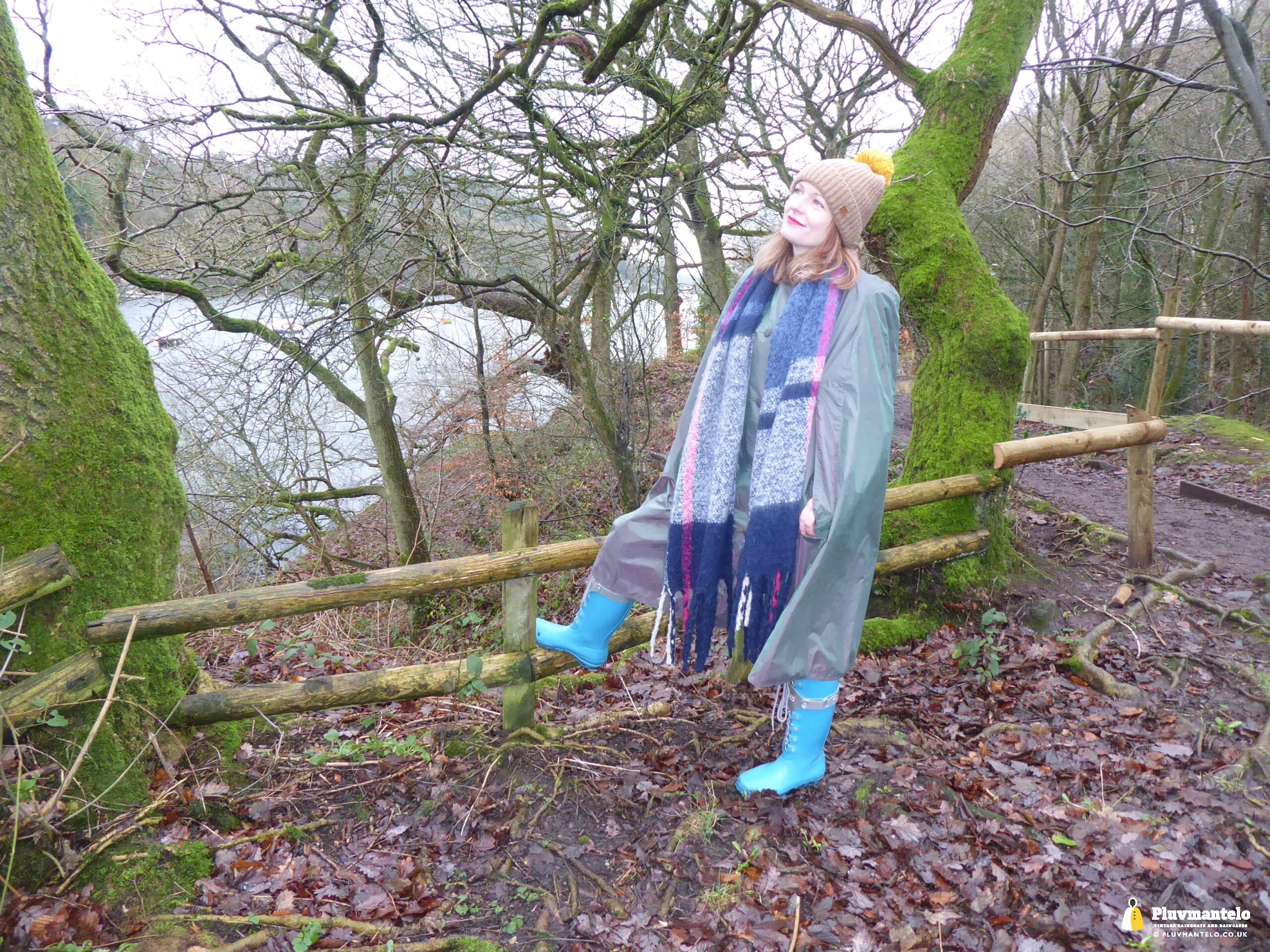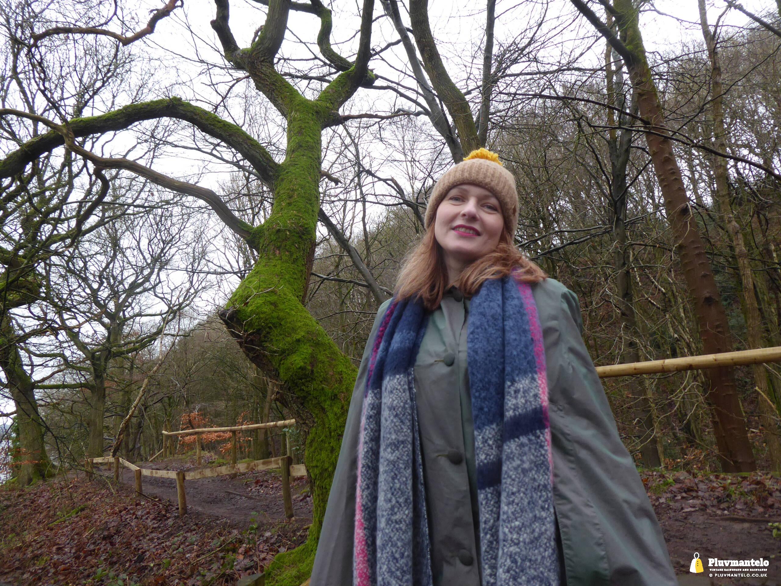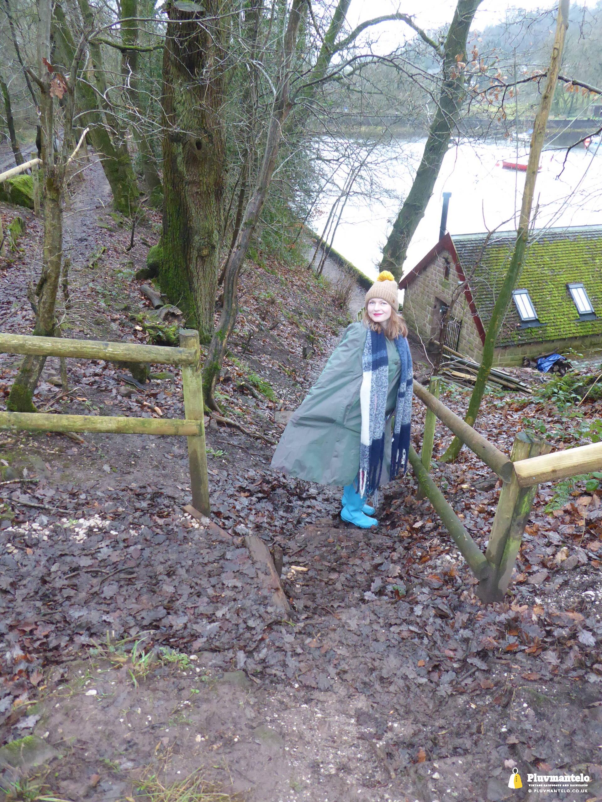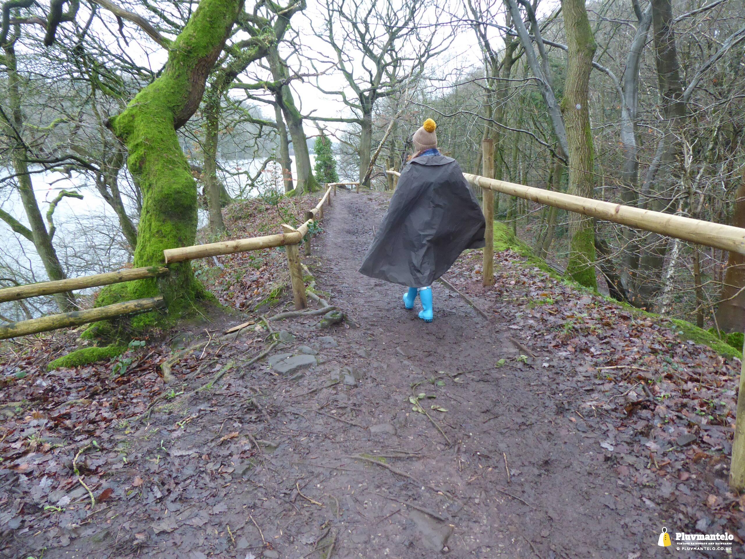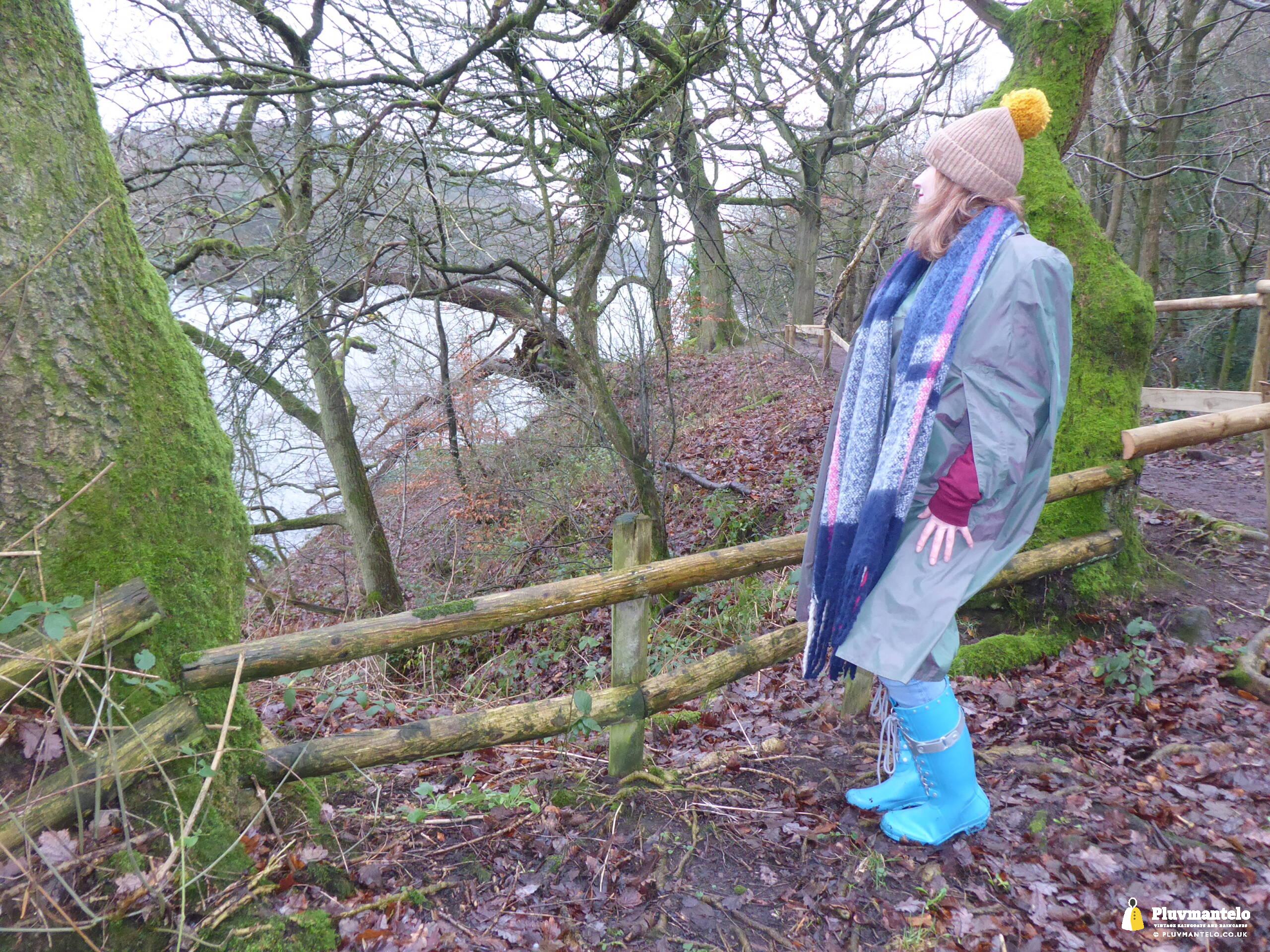 Happy New Year from Pluvmantelo and The Cape Queen gets the new year’s posts off with her 1960s ‘tonic’ cape. Like the suits worn by mods and suede ‘eads in the mid-1960s, Clair’s cape has a two-tone colourway, changing from green to mauve as it catches the light. And even on a seriously dull winter day near a lake deep in Mercia Clair’s cape added some much-needed cheerfulness.