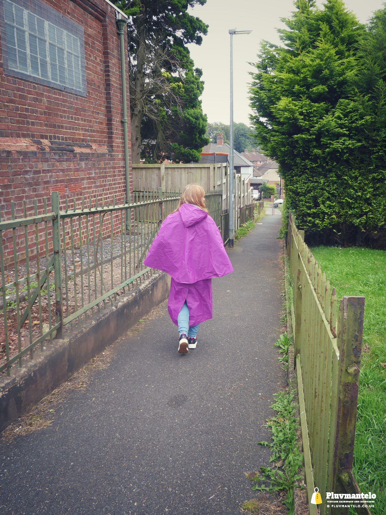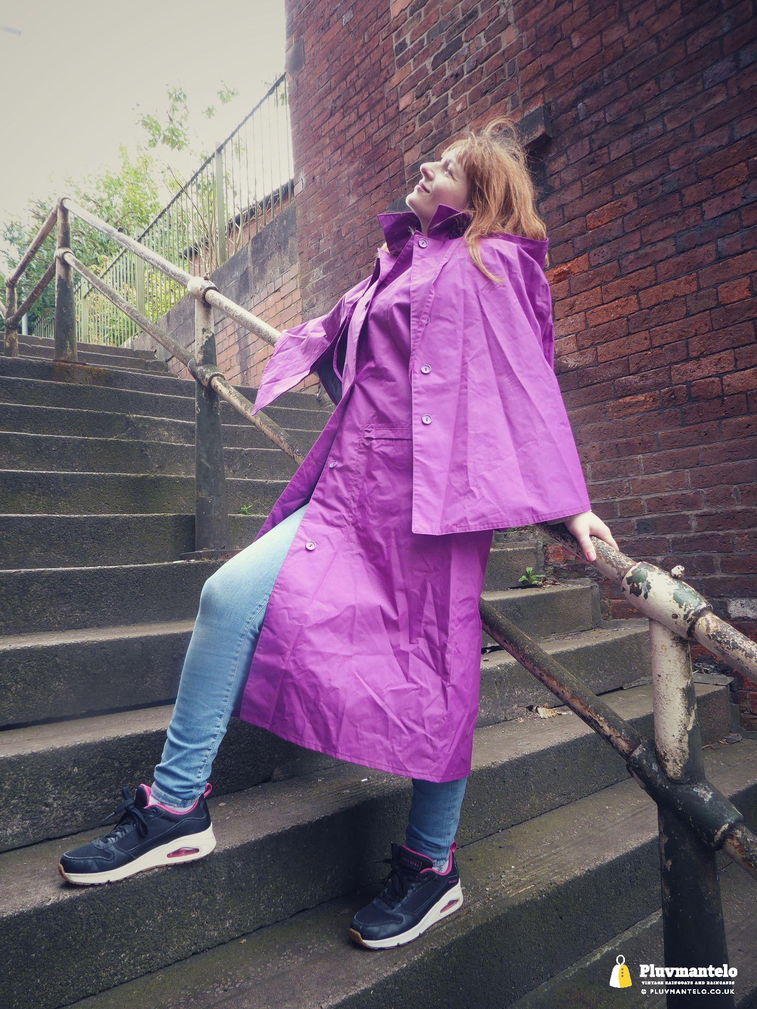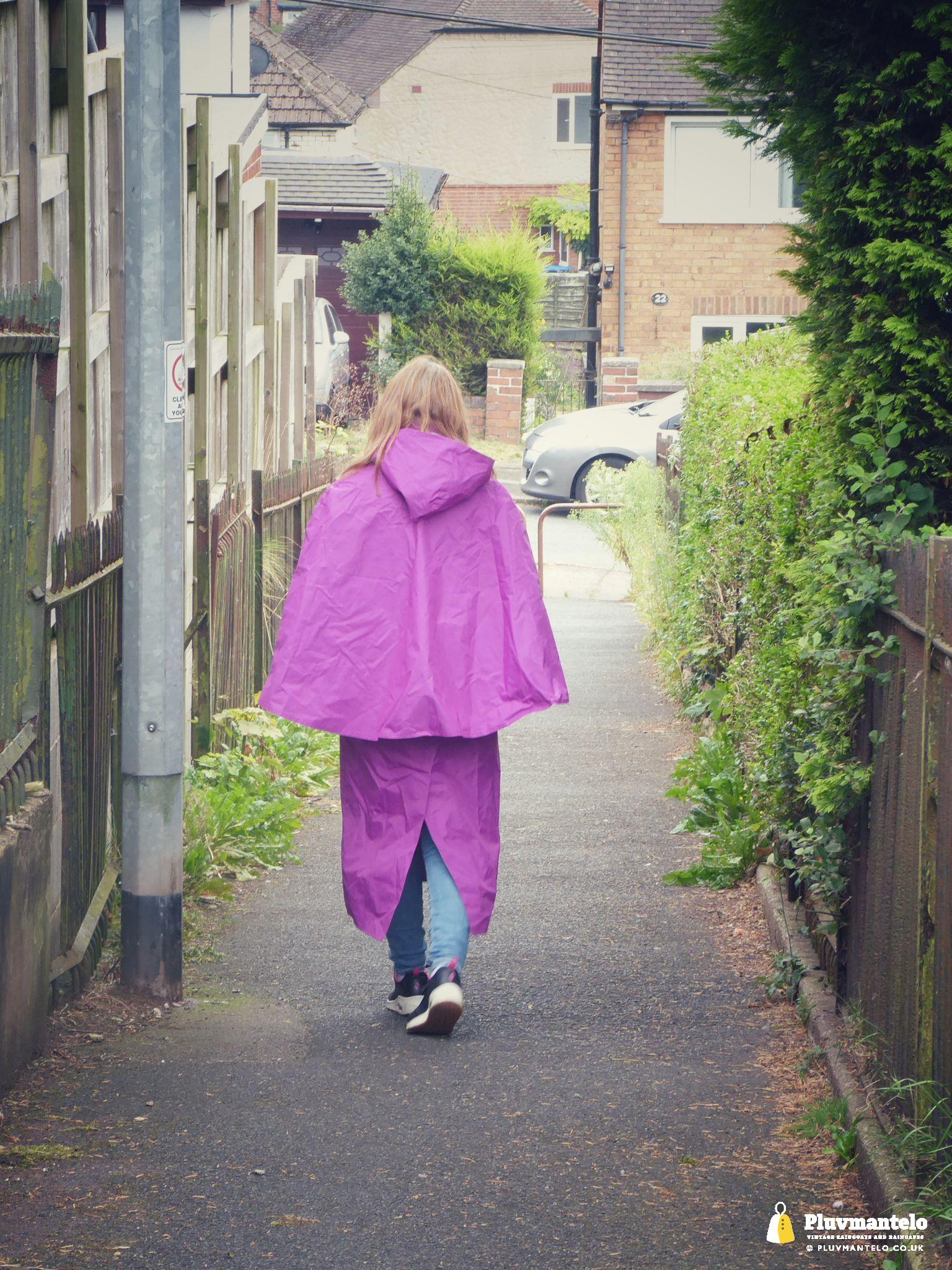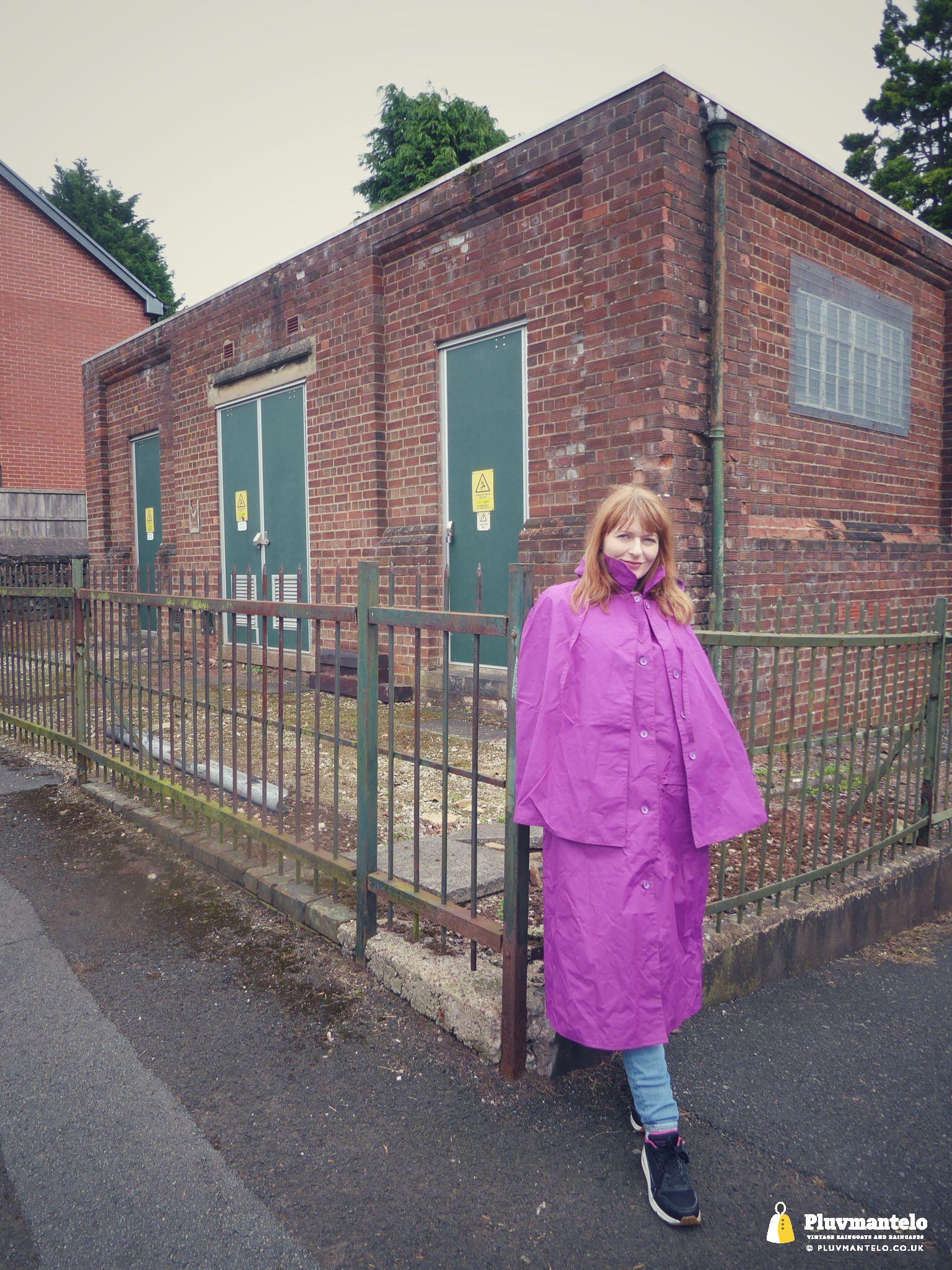 Clair The Cape Queen’s purple cape is something that little bit different, being, in reality, a case of cape-meets-coat. But’s unusual, it’s a bit left-of-centre looks-wise but it’s more than useful, The Cape Queen says. But, on this day, she was grateful for it as it kept her warm and dry as she set off for a walk around the town centre. On the walk she took in some fine municipal 1940s architecture too. Clair rates this ‘cape’ highly – what do you think?